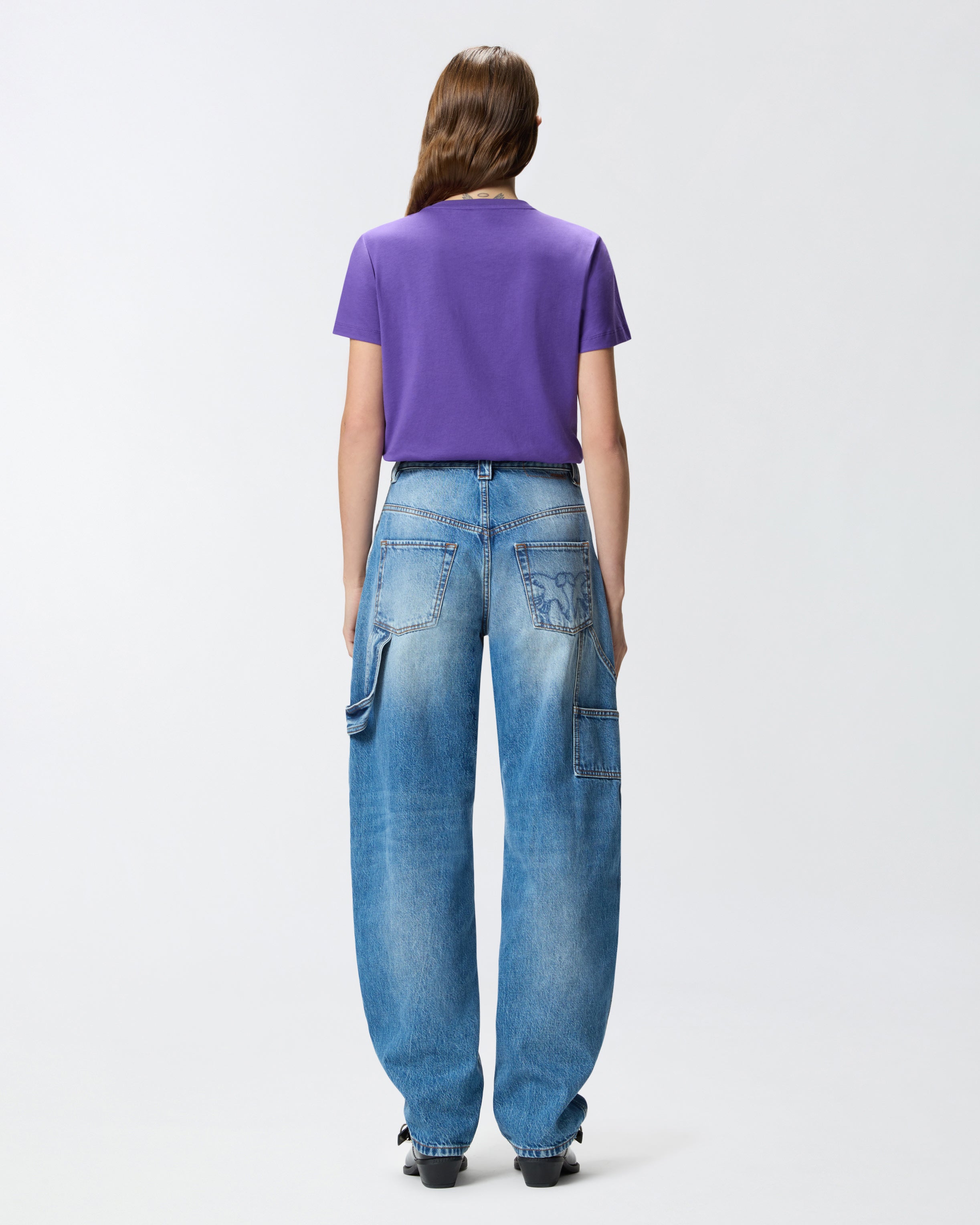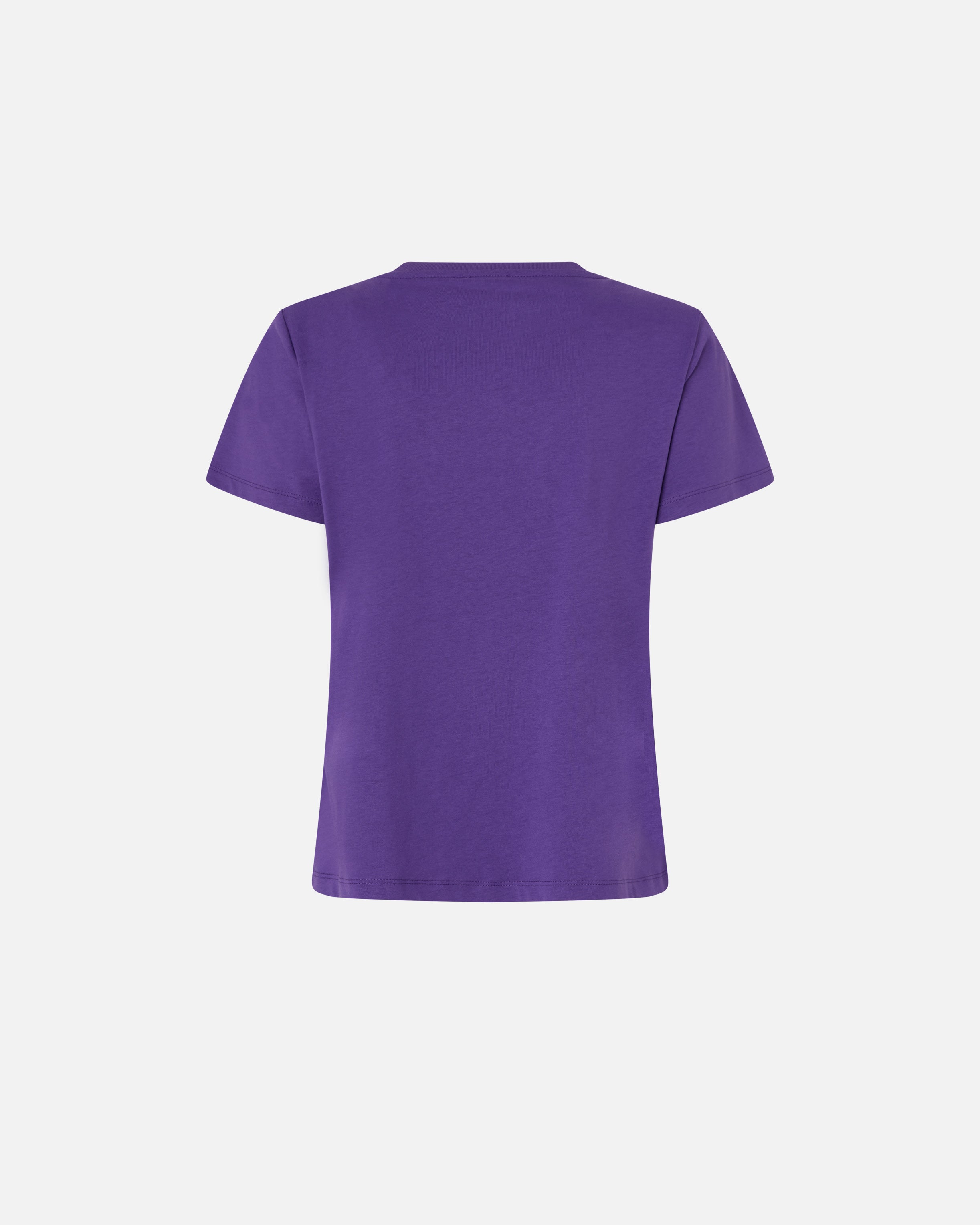 Camiseta de manga corta en punto de algodón. La prenda está adornada con el logotipo Love Birds decorado con un bordado realizado a mano compuesto por perlas, cadenita de cristales con corte baguette y strass de diferentes formas fijados con aletas laterales especiales para que queden más firmes. Esta camiseta es perfecta para llevar en cualquier ocasión, desde las más formales hasta las más deportivas, para aportar un toque femenino e icónico.