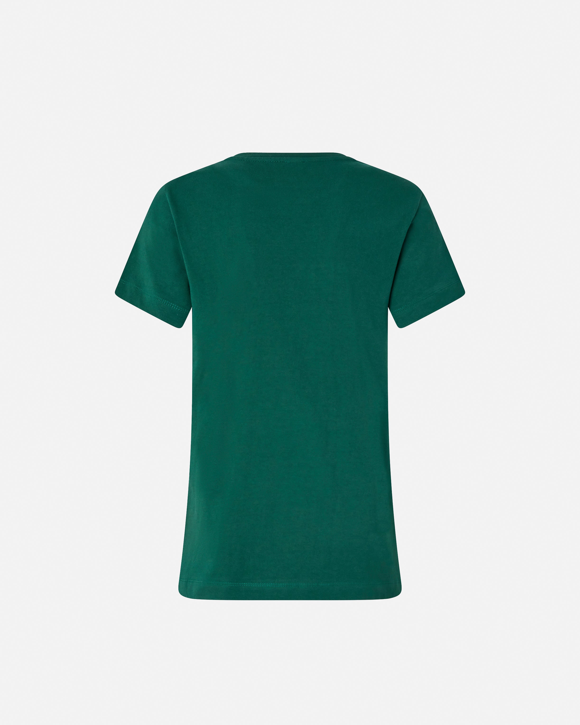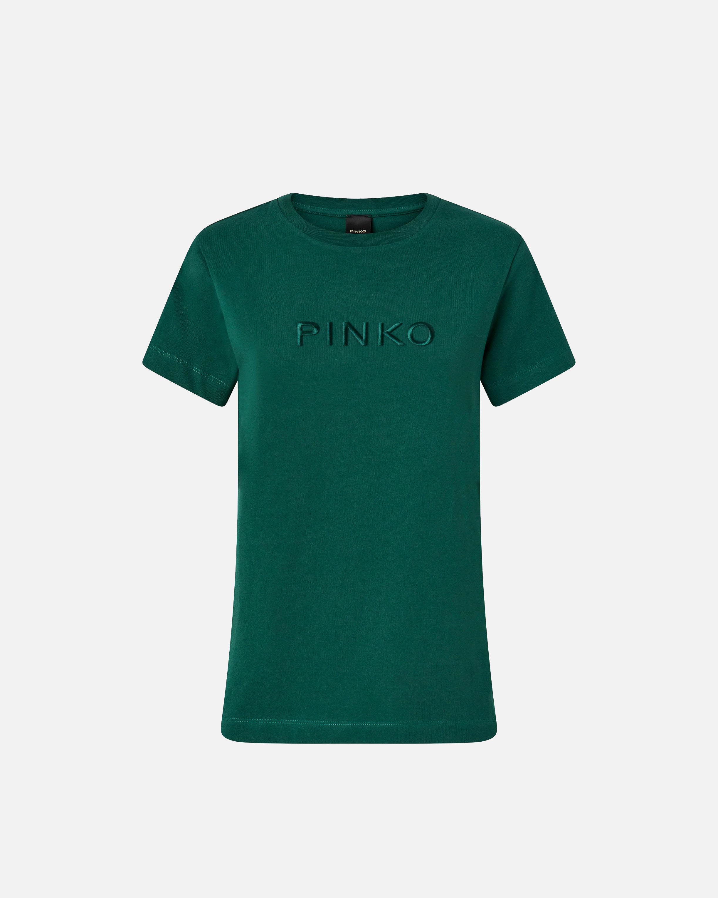 Camiseta de manga corta y ligeramente ceñida de punto de algodón con logotipo PINKO bordado por delante. Realza la elegancia y la feminidad de cualquier conjunto gracias a este top, que es la prenda perfecta para llevar debajo de la chaqueta con pantalones sastre, pero también con un par de vaqueros especiales.
