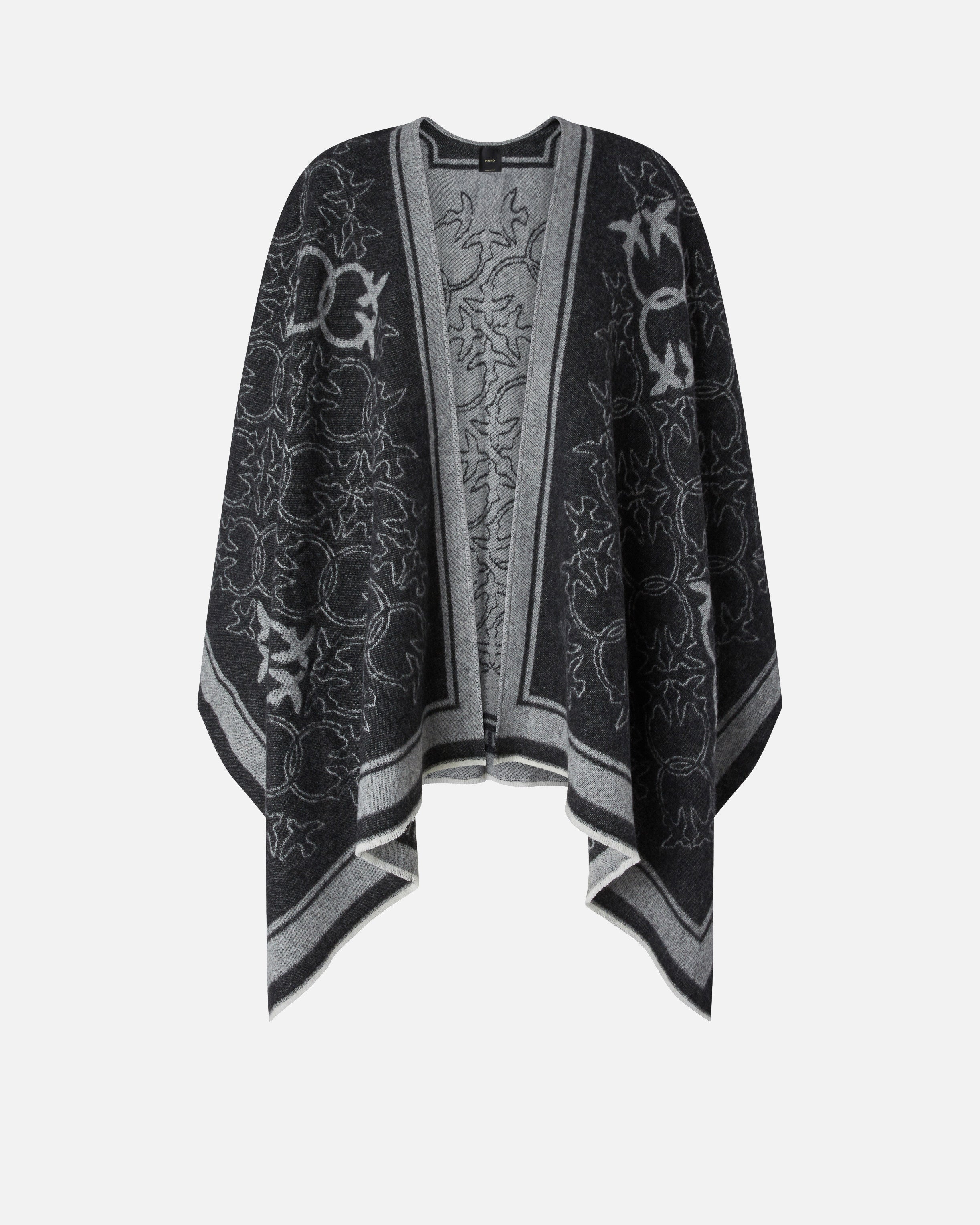 Capa de mezcla de lana confeccionada con técnica jacquard y caracterizada por un tacto suave y vaporoso. El inimitable estilo de la marca se expresa al máximo en esta prenda, adornada con el logotipo Love Birds en toda la superficie y el logotipo de letras PINKO en la parte posterior, ambos en contraste. Además, todo el borde de la capa está perfilado por una banda de color en contraste que define su elegante figura relajada. Enfréntate a los días más fríos al más puro estilo PINKO con este básico refinado del armario de invierno.