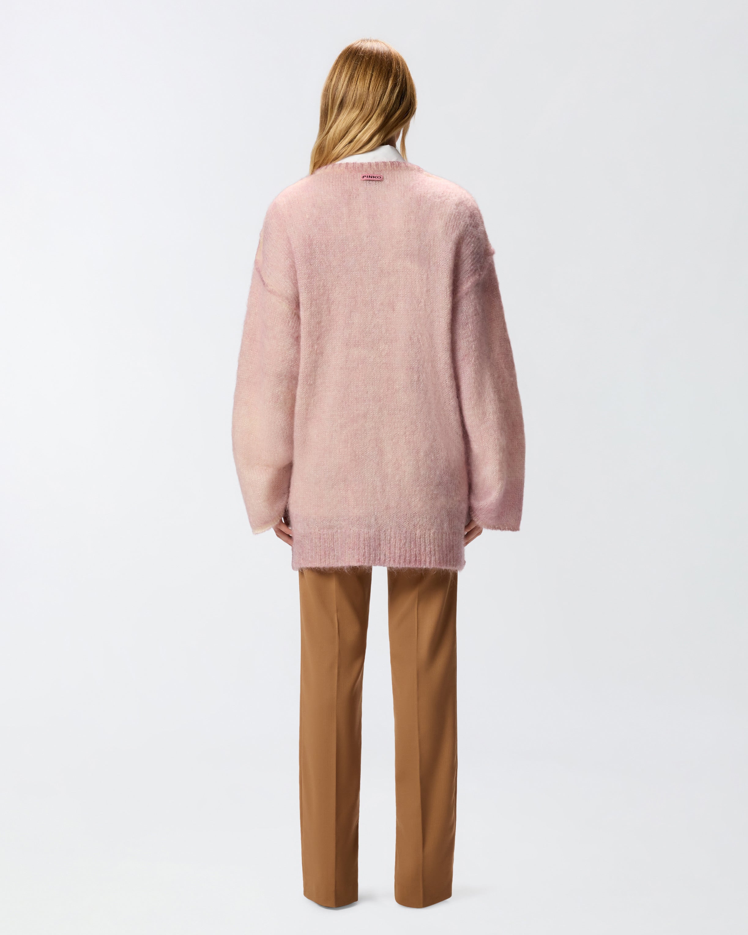 Cárdigan largo y recto con amplia manga larga confeccionado en mezcla de lana mohair extremadamente suave y agradable al tacto, con confección acanalada en el pronunciado escote de pico, la botonadura y el dobladillo. El modelo se caracteriza por una silueta relajada que lo hace perfecto para un estilismo a capas: acabas de encontrar tu nuevo imprescindible para el invierno. La prenda se ha sometido a pruebas de acabado para minimizar la posible formación de bolitas, garantizando una mayor suavidad y durabilidad del tejido.