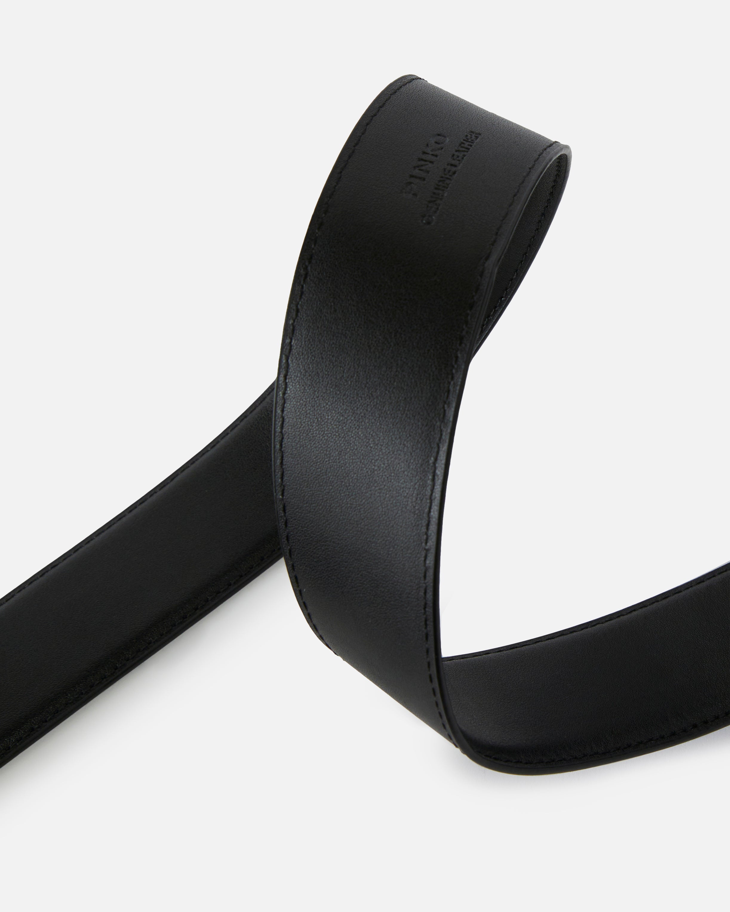 Cinturón para llevar alto en la cintura de piel lisa con acabado sedoso y hebilla Love Birds Diamond Cut de metal.