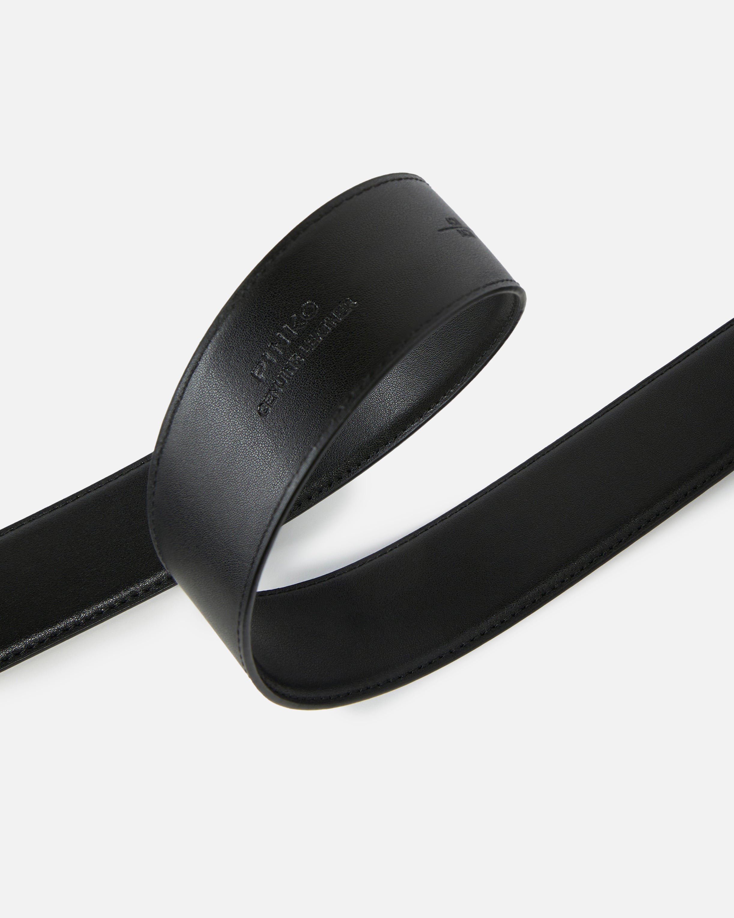 Cinturón para llevar alto en la cintura de piel lisa con acabado sedoso y hebilla Love Birds Diamond Cut de metal.