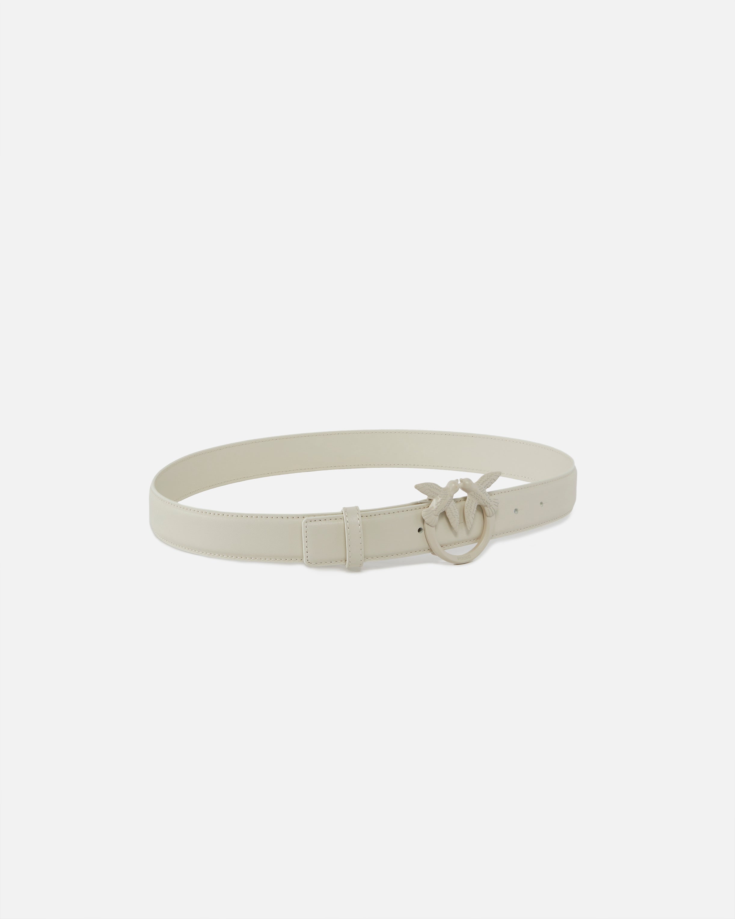 Cinturón de 3 cm de alto en piel suave como la seda con hebilla con logotipo Love Birds Diamond Cut de metal esmaltado en color a juego.