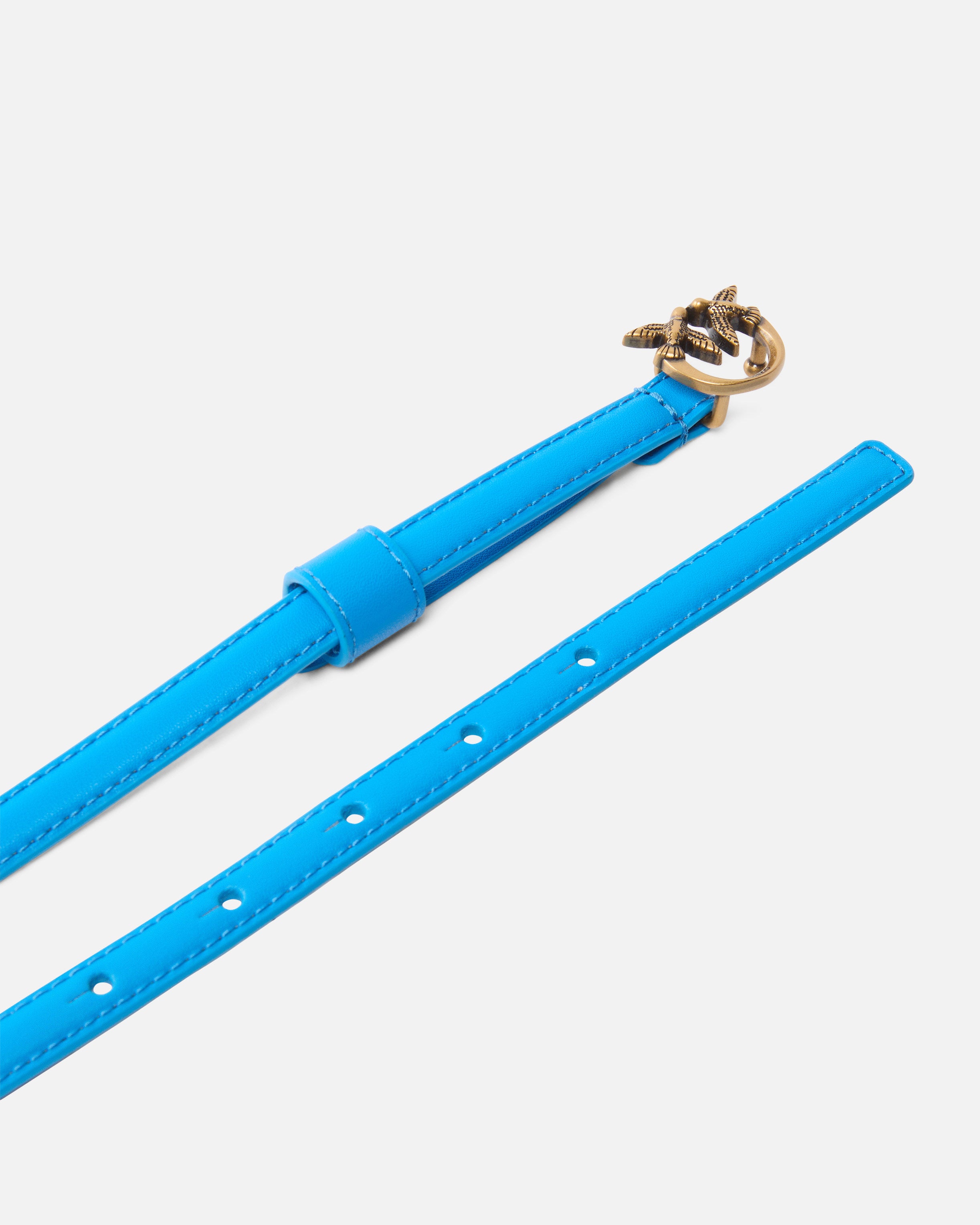 Cinturón fino de piel con minihebilla Love Birds Diamond Cut de metal galvanizado en dorado antiguo o plata envejecida.