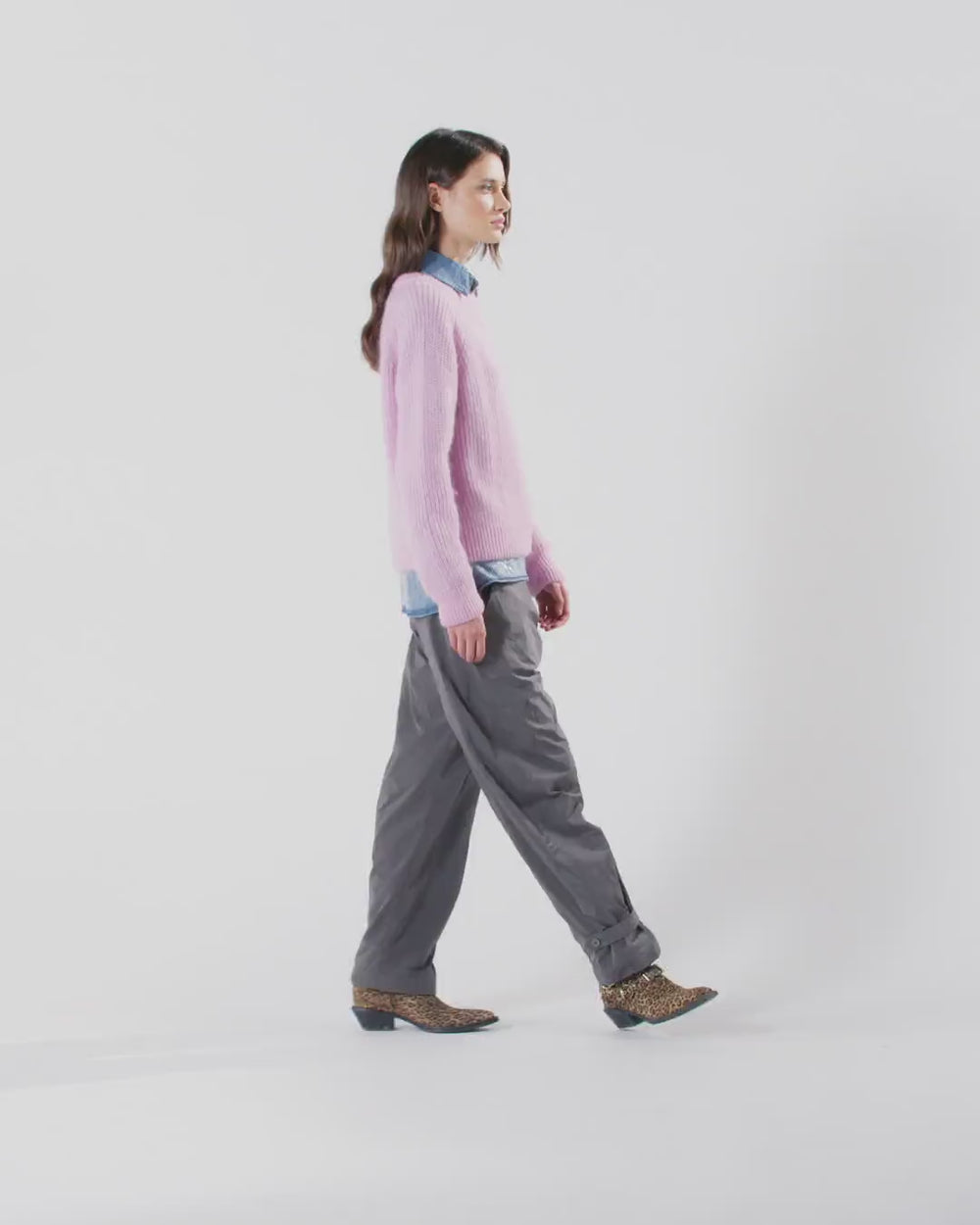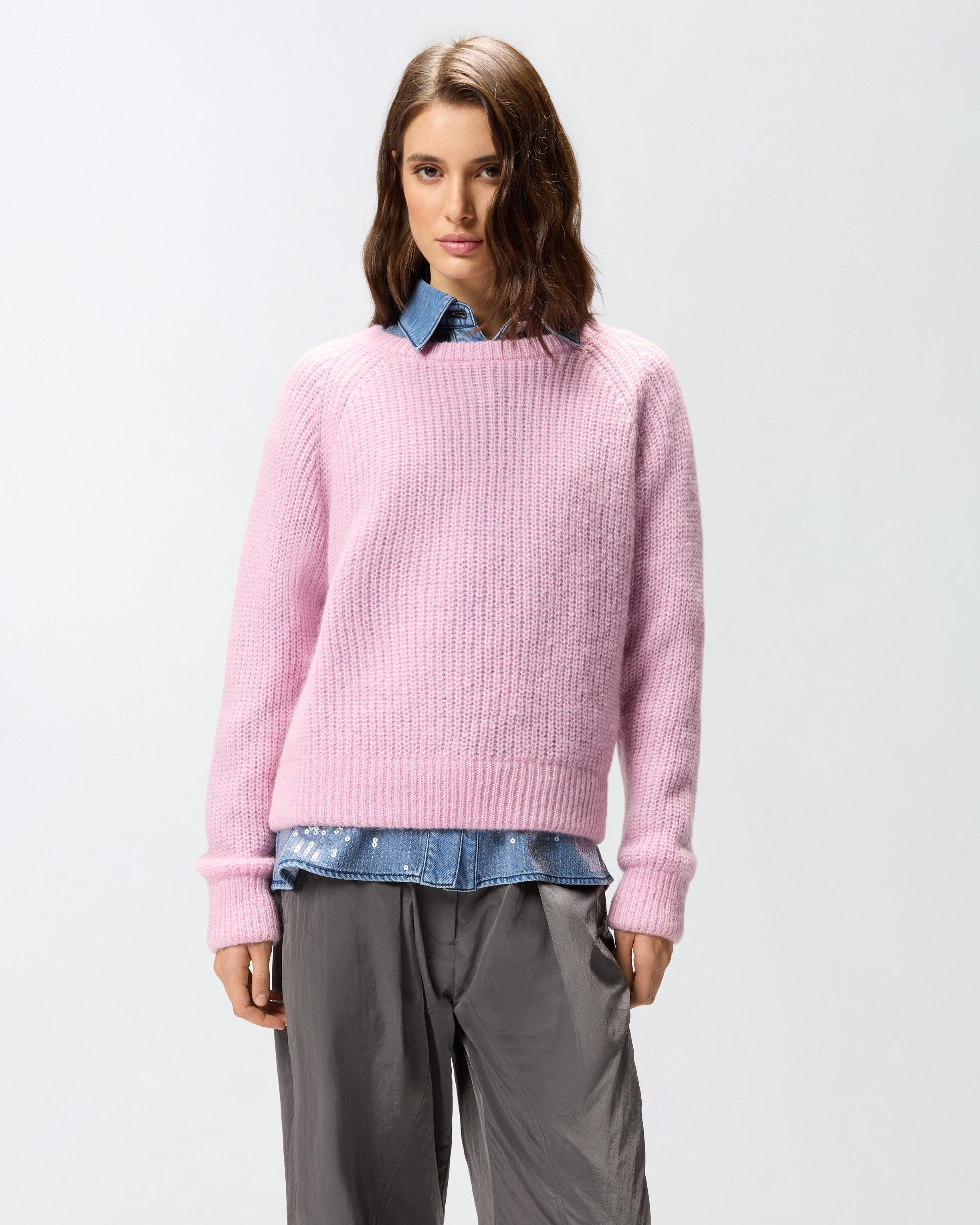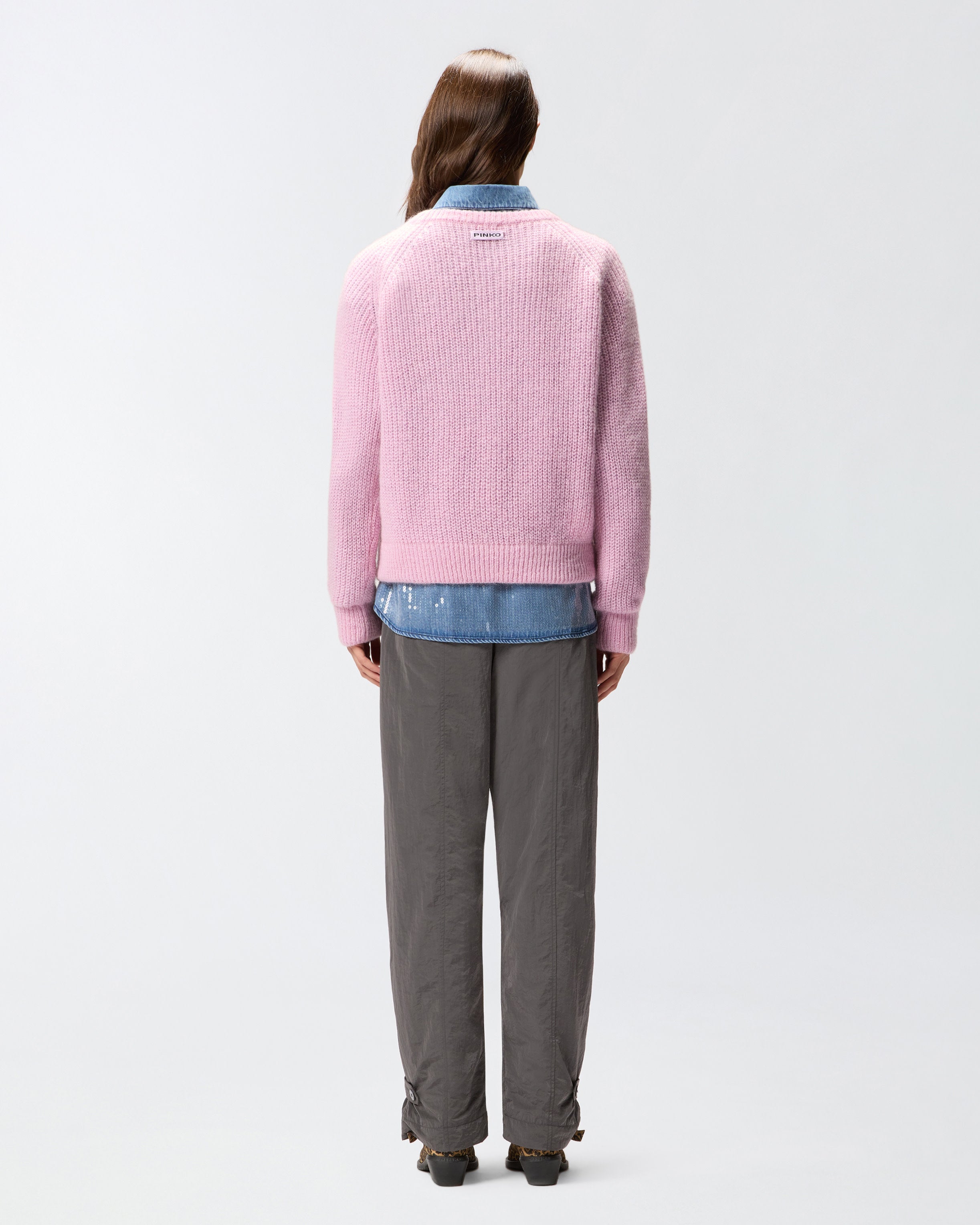 Jersey de manga larga con escote barco confeccionado en mezcla de lana mohair. El cuello redondo, el bajo y los puños son de canalé, mientras que el toque final lo aporta la etiqueta tono sobre tono con el logotipo de letras PINKO en la parte posterior del diseño. La prenda se ha sometido a pruebas de acabado para minimizar la posible formación de bolitas, garantizando una mayor suavidad y durabilidad del tejido. Este diseño básico se convertirá en un fiel aliado de tus looks de diario.