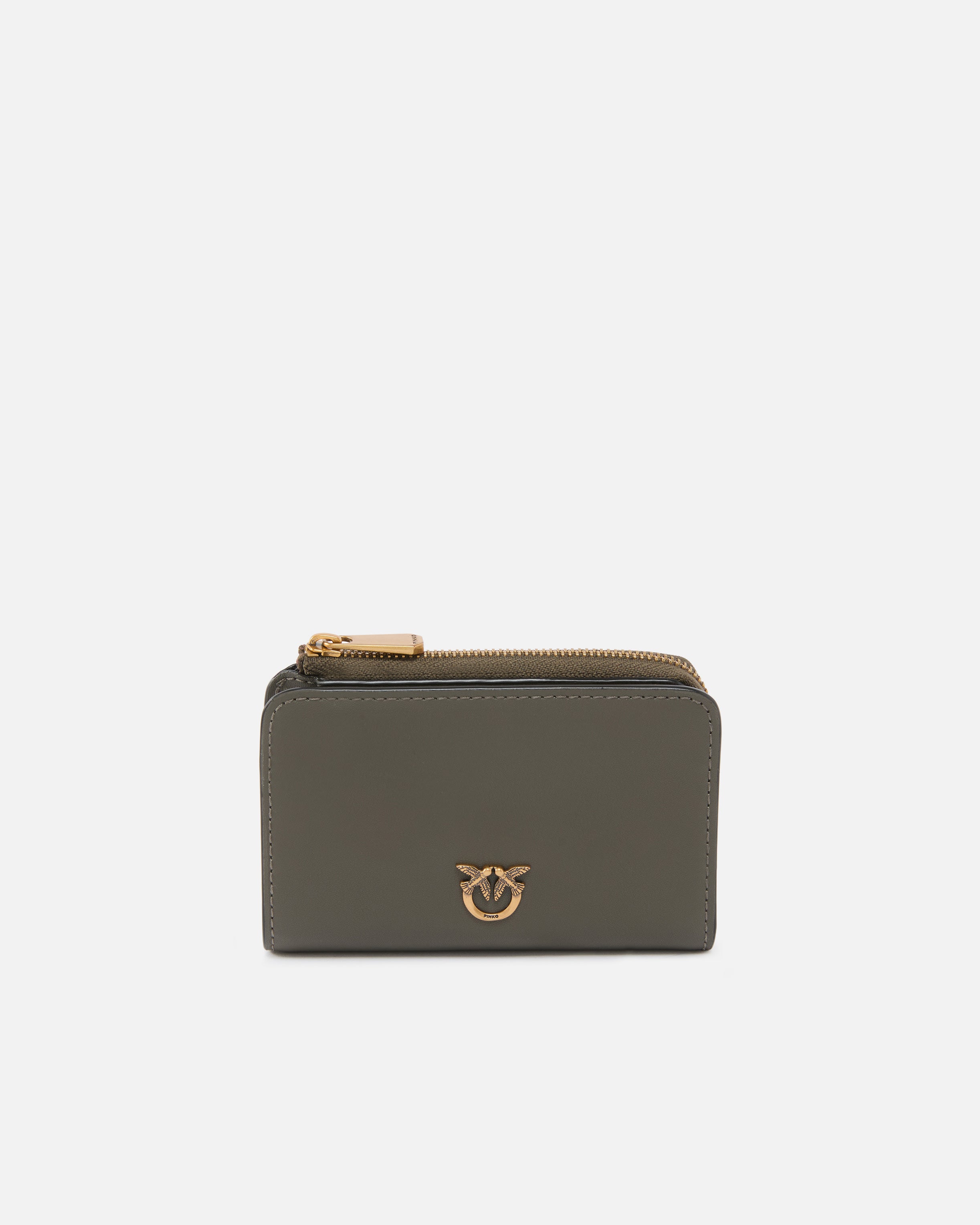 Cartera compacta y multifuncional de tamaño pequeño con forma rectangular realizada en piel suave al tacto con acabado liso. El interior está bien organizado con varios compartimentos para tarjetas y documentos, mientras que el exterior se completa con un compartimento monedero con cierre de cremallera, personalizado con una plaquita de metal que representa el icónico logotipo Love Birds Diamond Cut. La cartera se cierra con un botón interior para mantener su diseño compacto, perfecto incluso para los bolsos más pequeños. ¡Activa tu accesorio PINKO: verifica la autenticidad de tu producto y accede a la experiencia personalizada acercando tu smartphone al bordado Love Birds que encontrarás en la parte posterior! - MINI WALLET