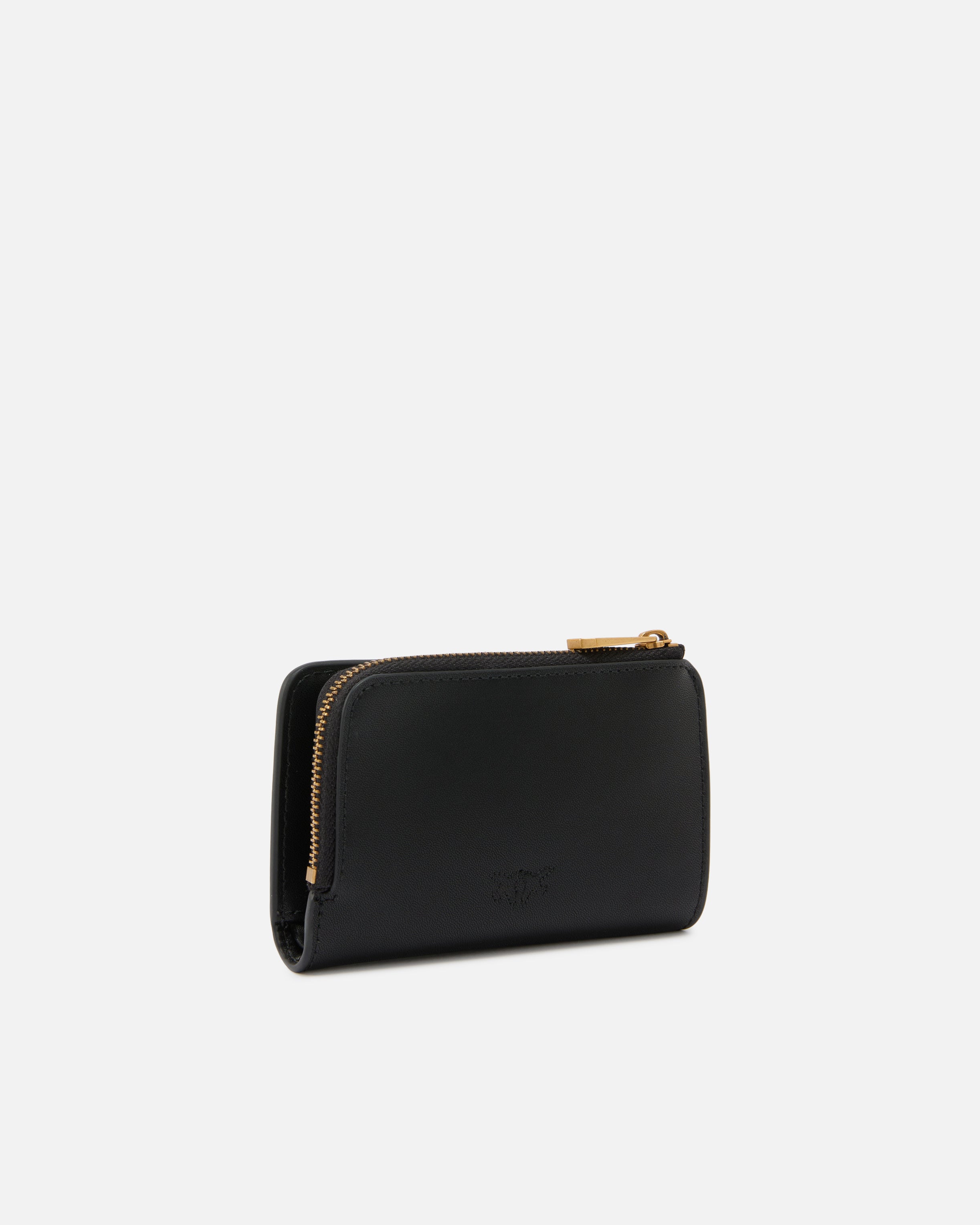 Cartera compacta y multifuncional de tamaño pequeño con forma rectangular realizada en piel suave al tacto con acabado liso. El interior está bien organizado con varios compartimentos para tarjetas y documentos, mientras que el exterior se completa con un compartimento monedero con cierre de cremallera, personalizado con una plaquita de metal que representa el icónico logotipo Love Birds Diamond Cut. La cartera se cierra con un botón interior para mantener su diseño compacto, perfecto incluso para los bolsos más pequeños. ¡Activa tu accesorio PINKO: verifica la autenticidad de tu producto y accede a la experiencia personalizada acercando tu smartphone al bordado Love Birds que encontrarás en la parte posterior! - MINI WALLET