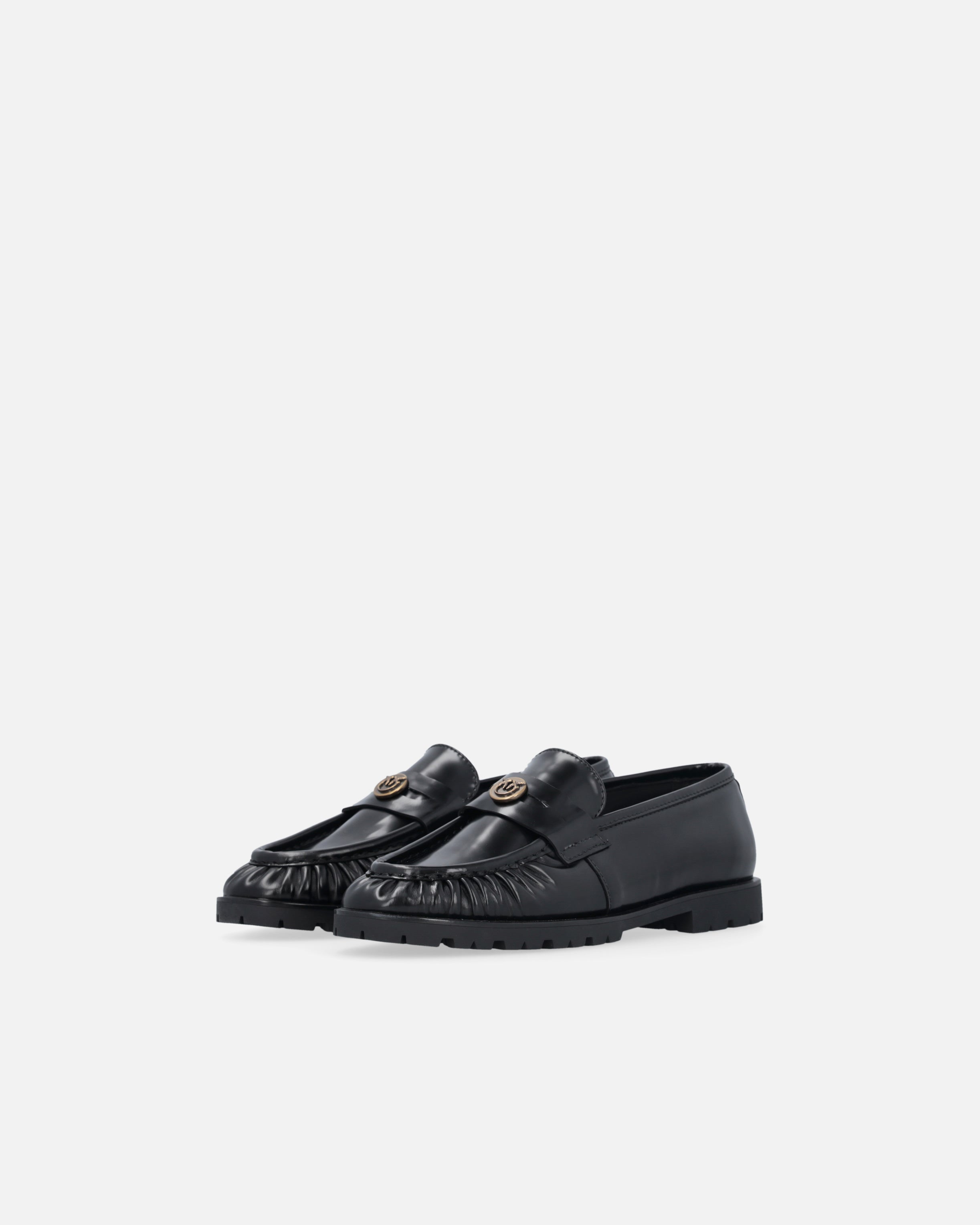 Mocasines realizados en piel suave, caracterizados por la punta redonda y el diseño fruncido en la tira. La suela en relieve de 2 cm de altura confiere robustez y carácter al modelo, pero el toque final viene dado por la pequeña placa con el logotipo Love Birds, portavoz del inimitable estilo de la marca. Sabemos bien que son los detalles los que marcan la diferencia: elige este modelo para añadir un toque de singularidad a tus looks informales.