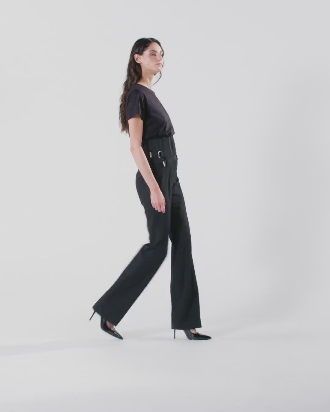 Pantalones con pernera recta caracterizados por un diseño de cintura muy alta con ballenas que recuerdan a los corsés femeninos. El crepé de poliviscosa, un tejido doble particularmente versátil y práctico gracias a la confección bielástica, ha sido sometido a tratamientos de alta calidad que permiten obtener un sofisticado aspecto de lana. Completan el modelo las trabillas para el cinturón, las correas en la cintura para regular el ajuste según tus necesidades y el cierre frontal oculto. Combinación equilibrada entre lo masculino y lo femenino, estos pantalones harán que tus looks más formales de la nueva temporada resulten especiales.