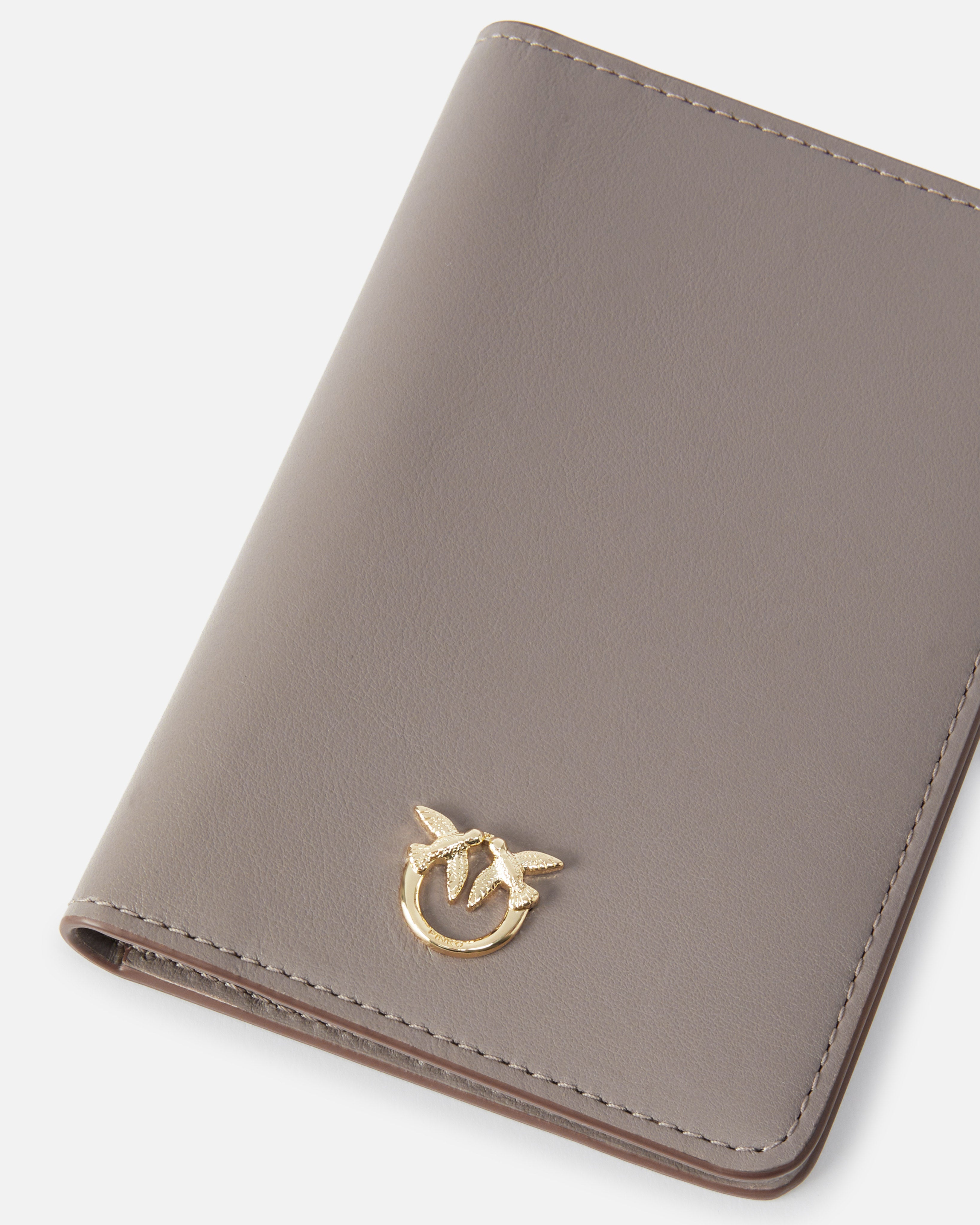 Funda para pasaporte de piel suave con acabado sedoso y una textura lisa, adornada con una placa de metal con el logotipo Love Birds Diamond Cut en la parte delantera. La funda, que se abre en forma de libro, también incluye ranuras para tarjetas de crédito y otros documentos además del espacio dedicado al pasaporte. Se trata de un accesorio perfecto para llevar contigo en tus viajes, mantener a salvo tus documentos indispensables y añadir un toque de estilo atemporal. El accesorio forma parte de la colección cápsula especial de edición limitada creada en exclusiva para PINKO Galleria.