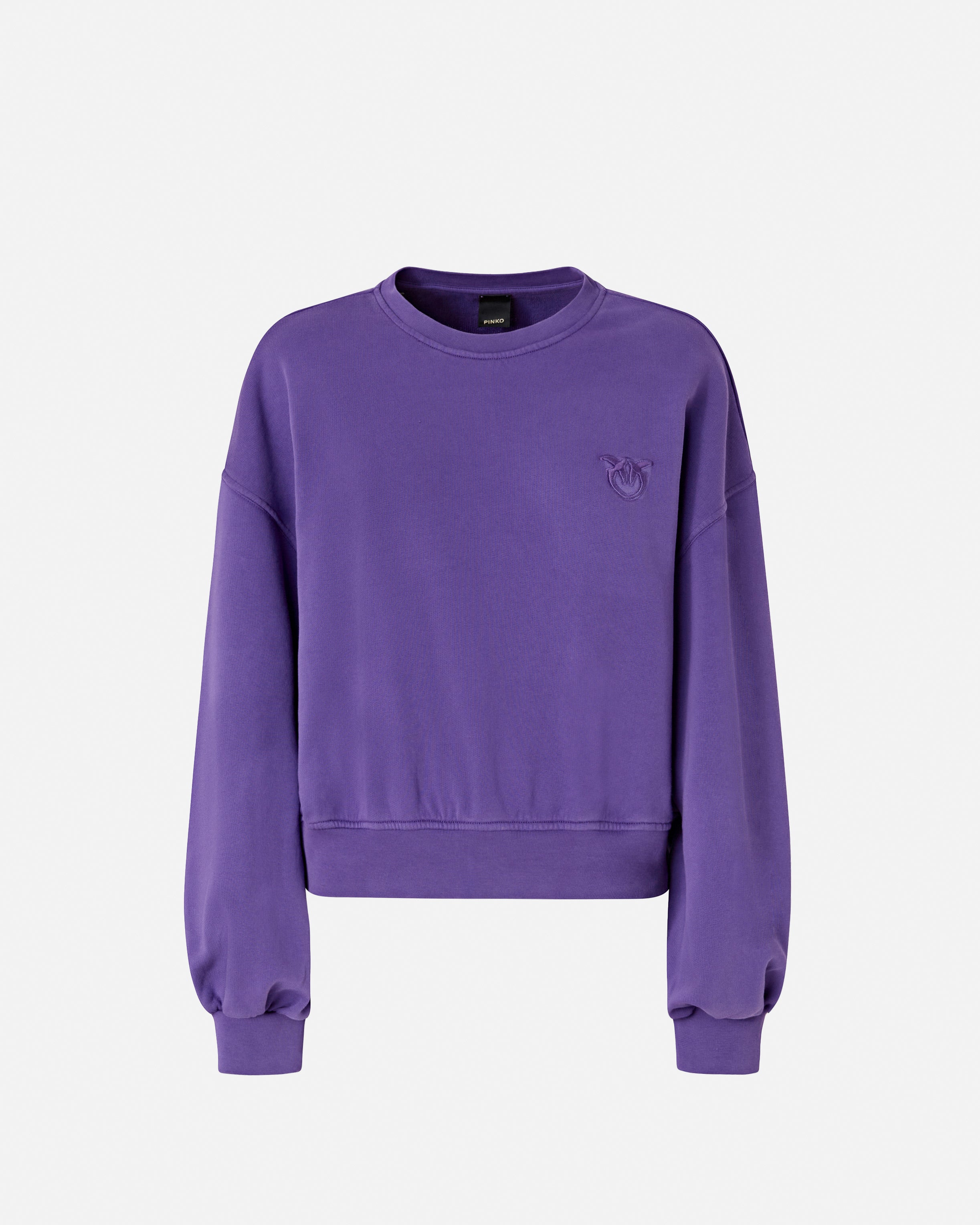 Sudadera de corte holgado en algodón teñido con efecto envejecido. El logotipo Love Birds bordado en la parte delantera izquierda, personaliza la prenda al más puro estilo PINKO. Combina el pantalón en el mismo tejido para conseguir un total look cómodo y original con el que disfrutar de tus momentos de ocio.