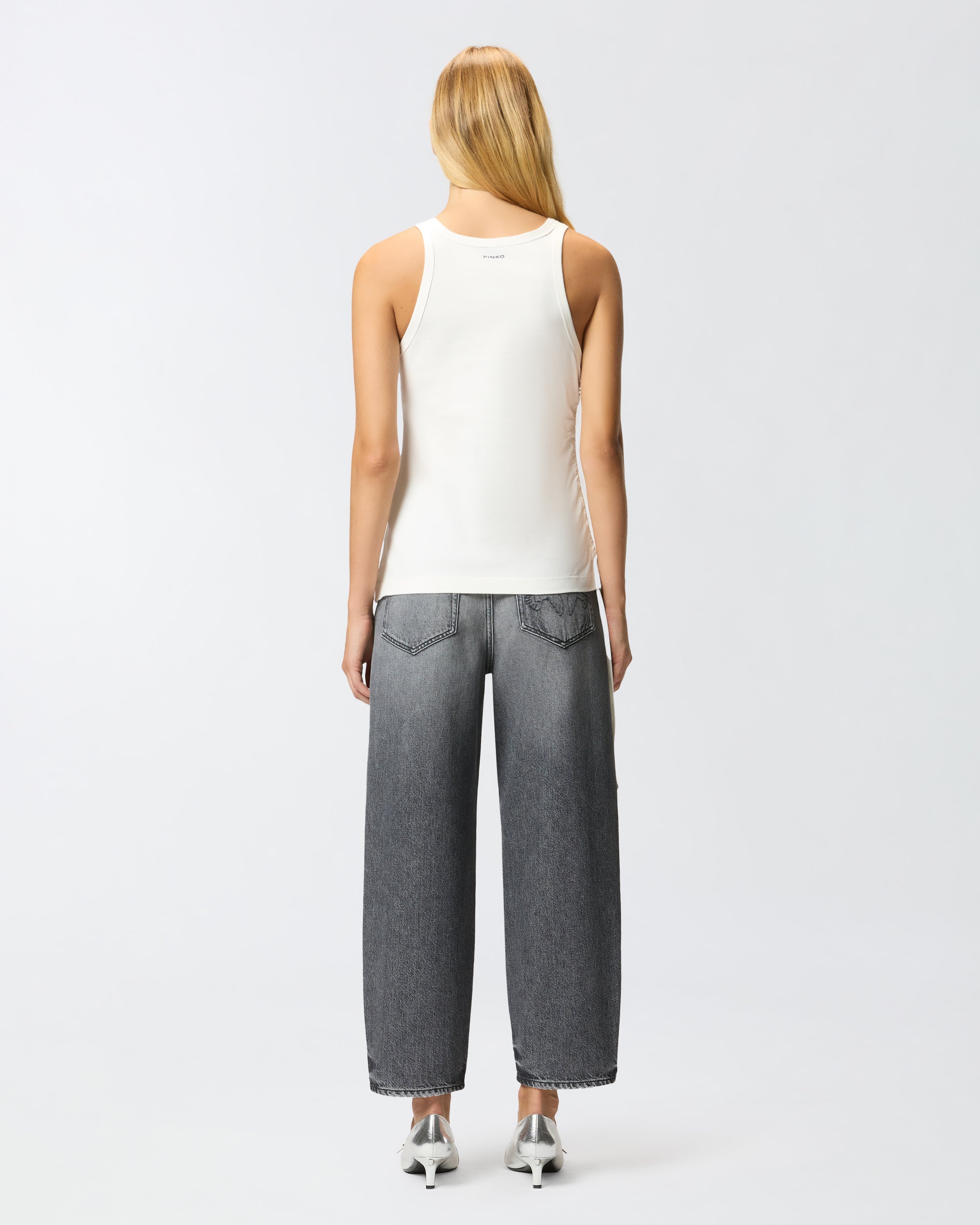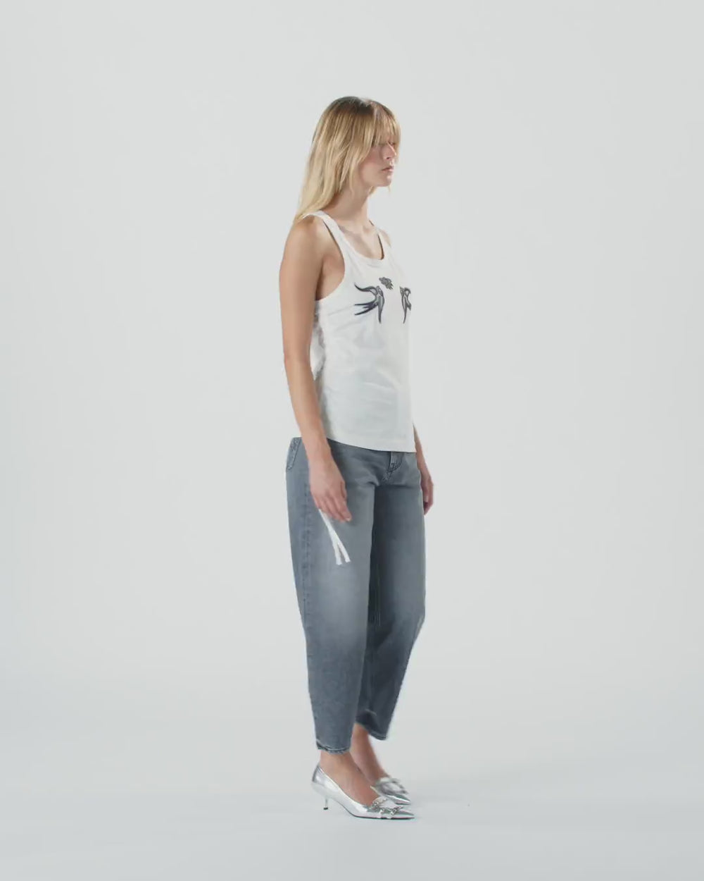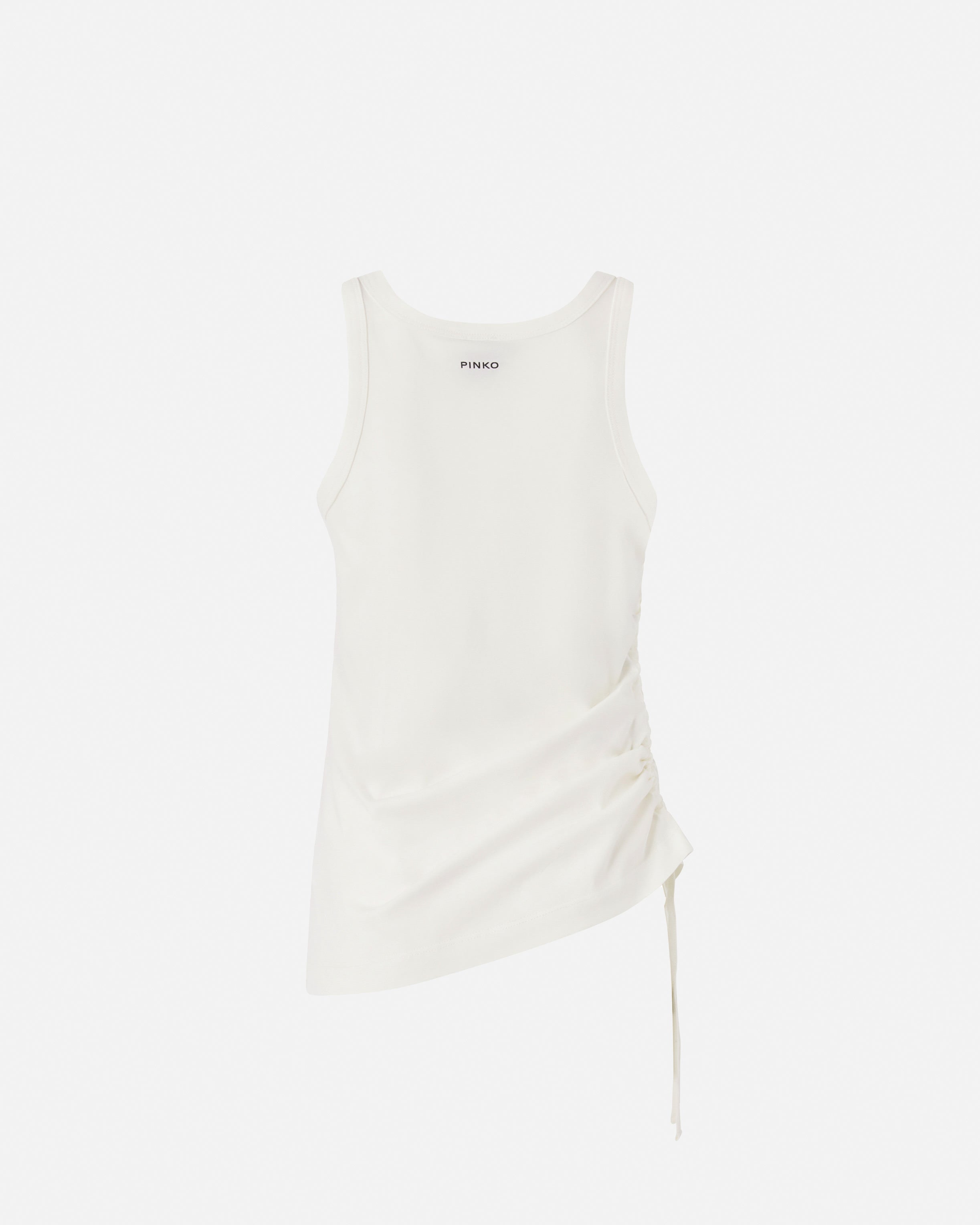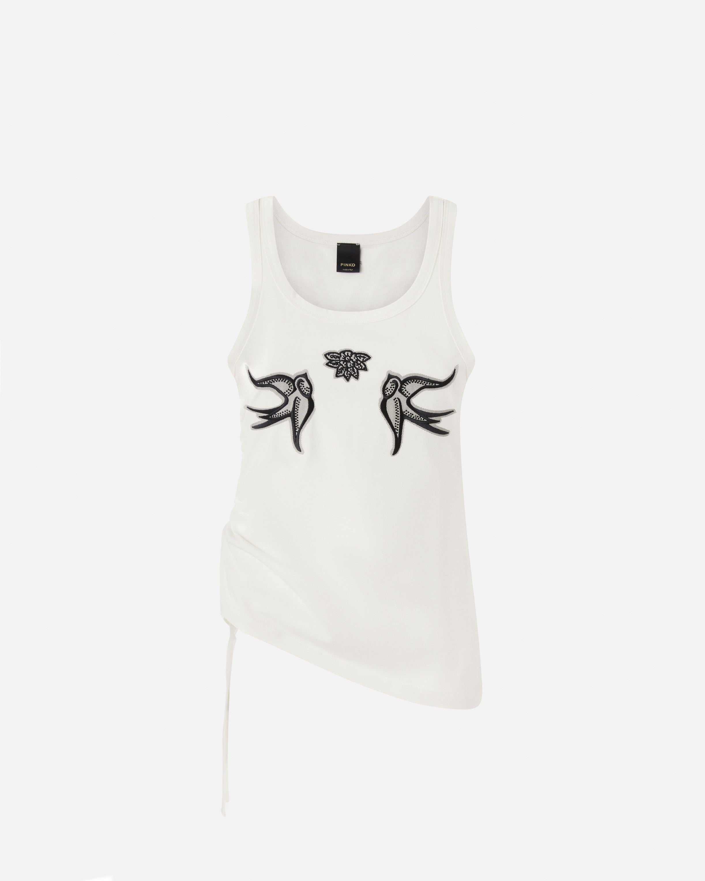 Top sin mangas confeccionado en punto de algodón y definido por un pronunciado escote redondo. La parte delantera se caracteriza por el bordado con aplicación de micromalla que representa el logotipo Love Birds. El bajo asimétrico ajustado con cordón aporta un toque extra de originalidad a la prenda. Ponte este modelo con tus vaqueros favoritos para conseguir un look informal y actual.