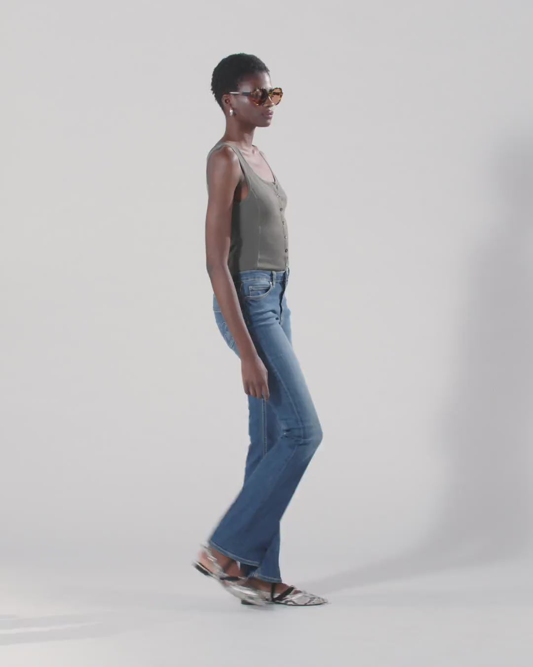 Vaqueros de cinco bolsillos y corte acampanado, con pernera ceñida hasta la rodilla y evasé en el bajo, confeccionados en cómodo denim elástico de mezcla de algodón con lavado medio y detalles descoloridos que crean un aspecto vintage. Este modelo de talle medio con trabillas para el cinturón y cierre con cremallera y botón de remache con logotipo está personalizado con el logo de letras PINKO bordado en la parte posterior de la cintura y con el icónico logotipo Love Birds con pajaritos bordado en el bolsillo trasero derecho. Gracias a su diseño versátil, estos pantalones son ideales tanto para looks informales como para conjuntos para ocasiones un poco más formales. - FLORA NO BELT