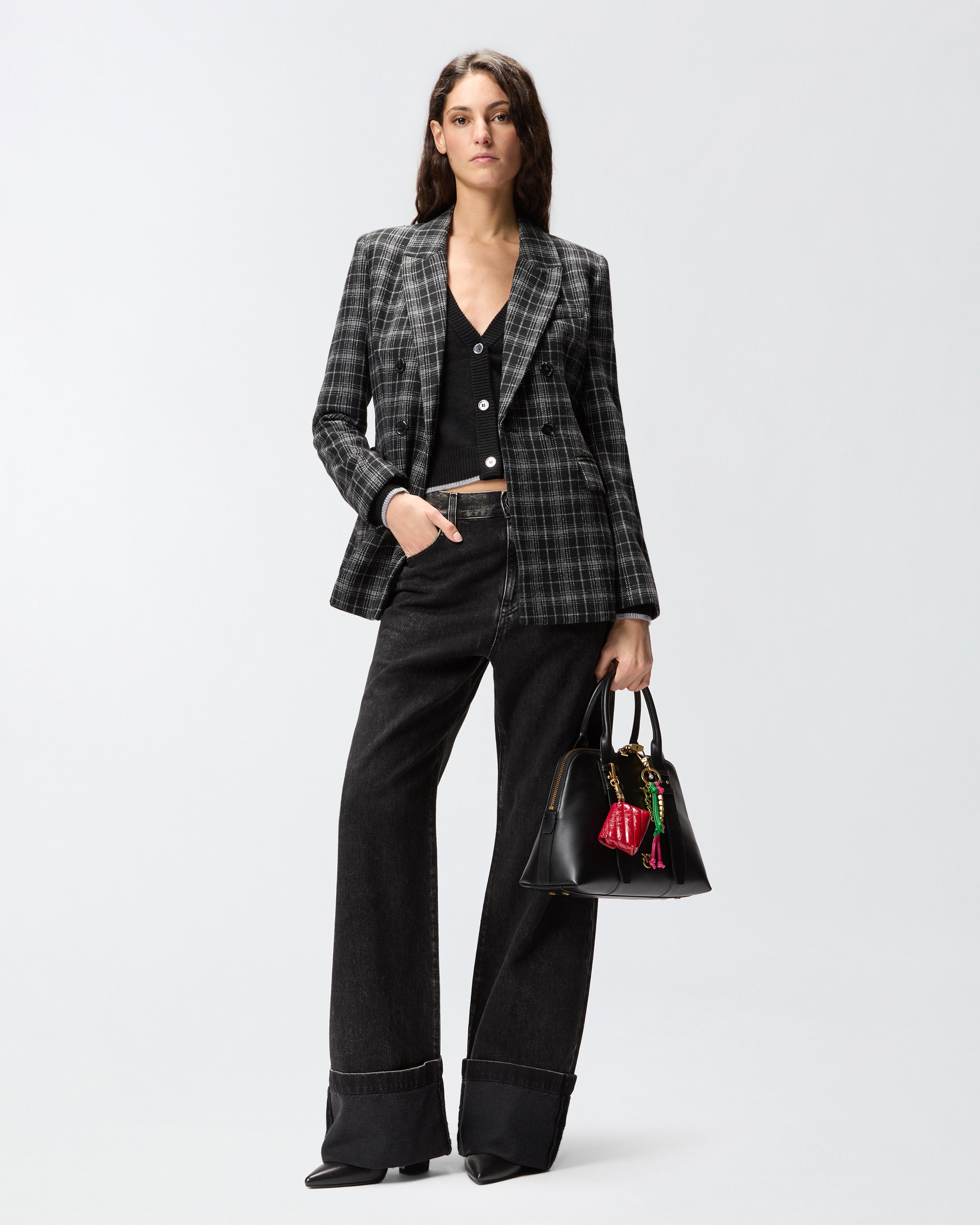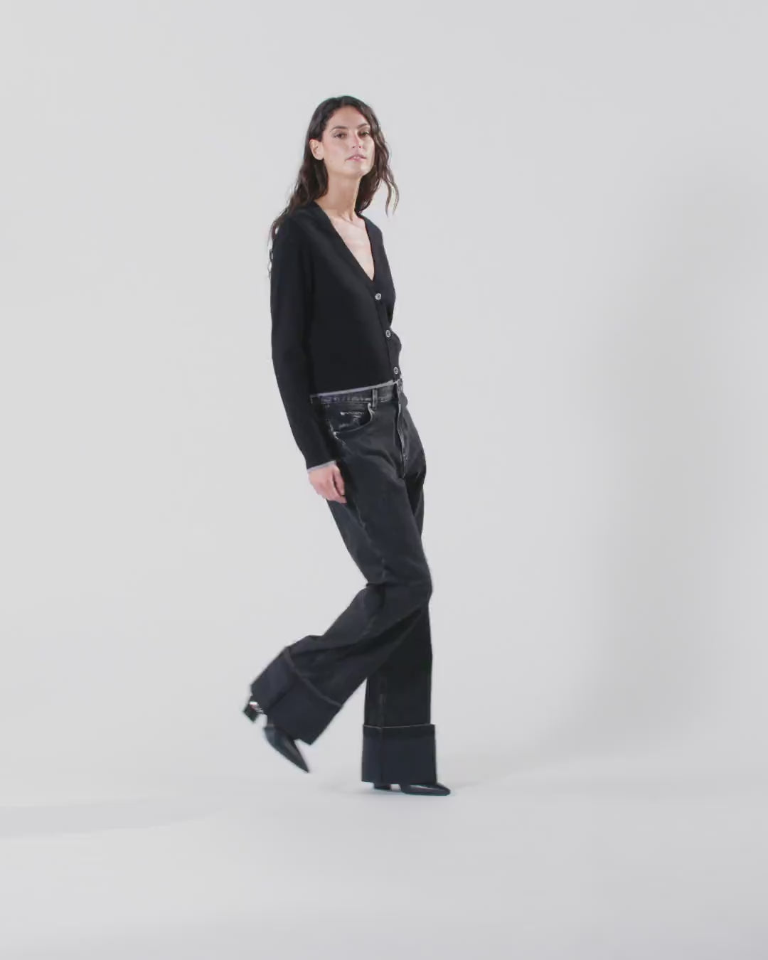 Vaqueros de cinco bolsillos para mujer de corte «wide leg» con pernera recta y amplia con dobladillo fijo. La prenda está confeccionada en denim negro de algodón y lyocell para brindar un tacto más fluido y está tratada con diferentes técnicas de lavado para alcanzar el tono final. Para personalizar el diseño al más puro estilo PINKO encontramos la trabilla extraíble con logotipo Love Birds. Juega con las combinaciones y ponte estos vaqueros con la cintura caída y el tiro bajo para lograr un look más masculino o combínalos con prendas más femeninas para lucir un estilo que apuesta por los contrastes. Trabillas para el cinturón y cierre frontal con botón y cremallera oculta. El modelo queda un poco más holgado respecto a la talla habitual.