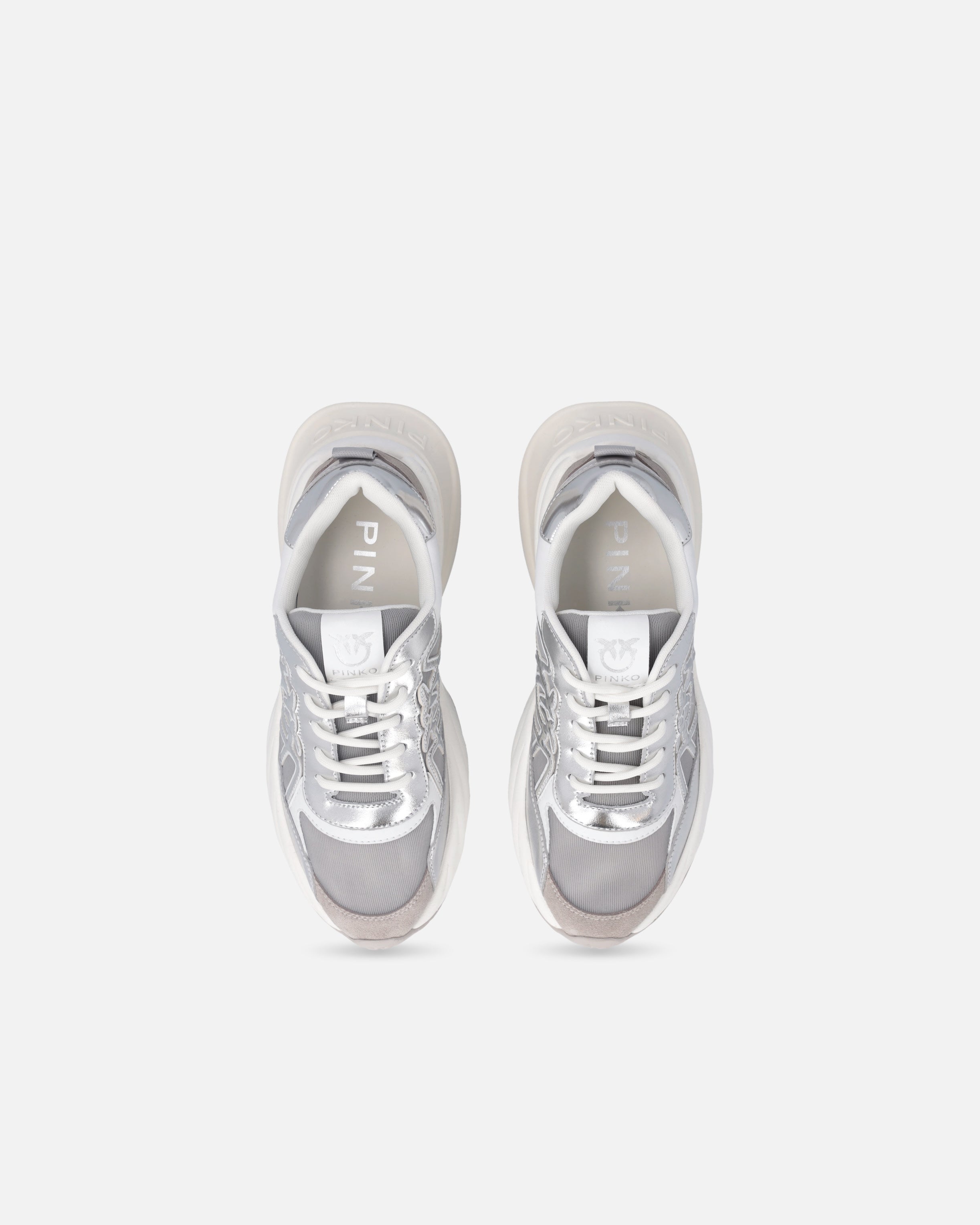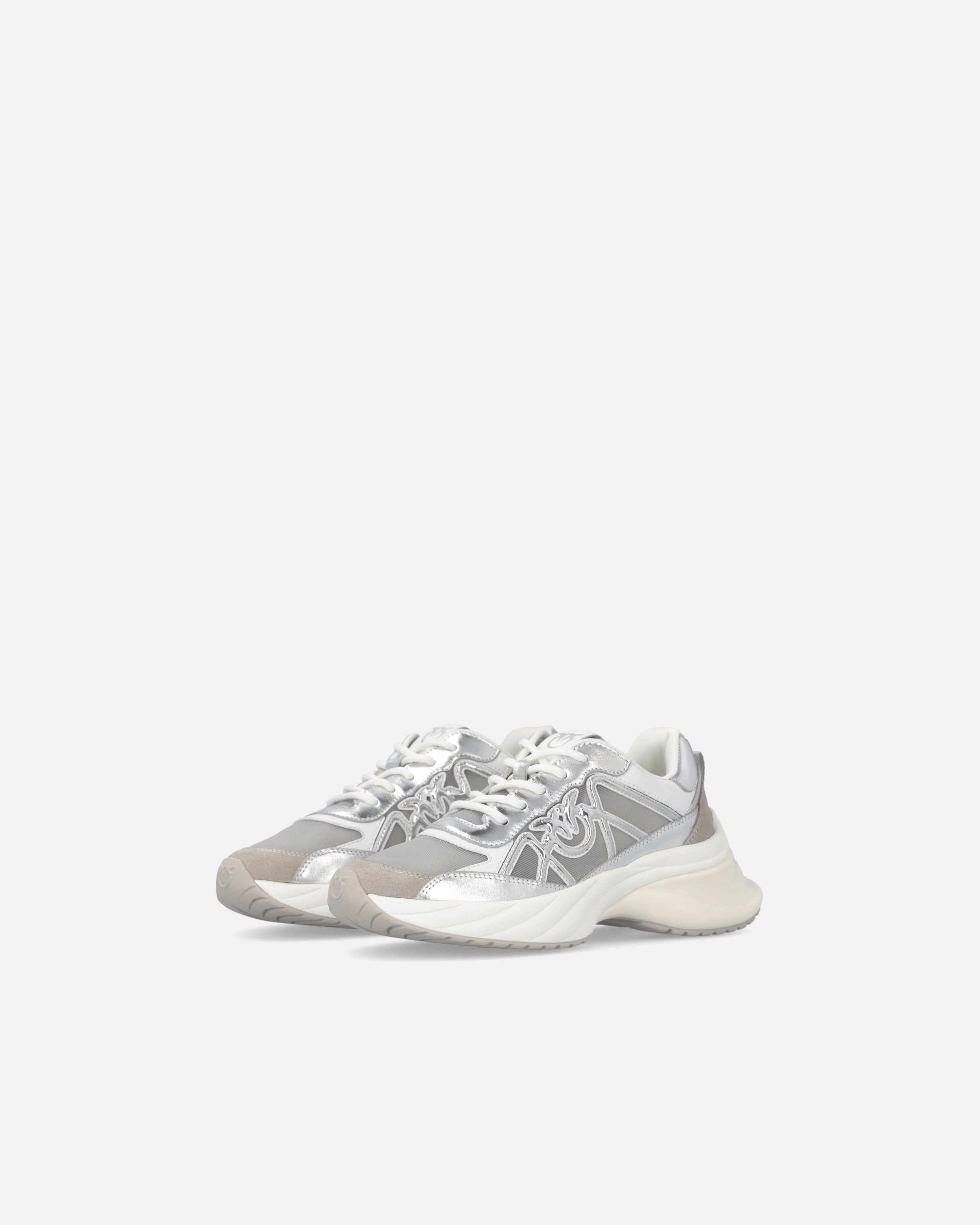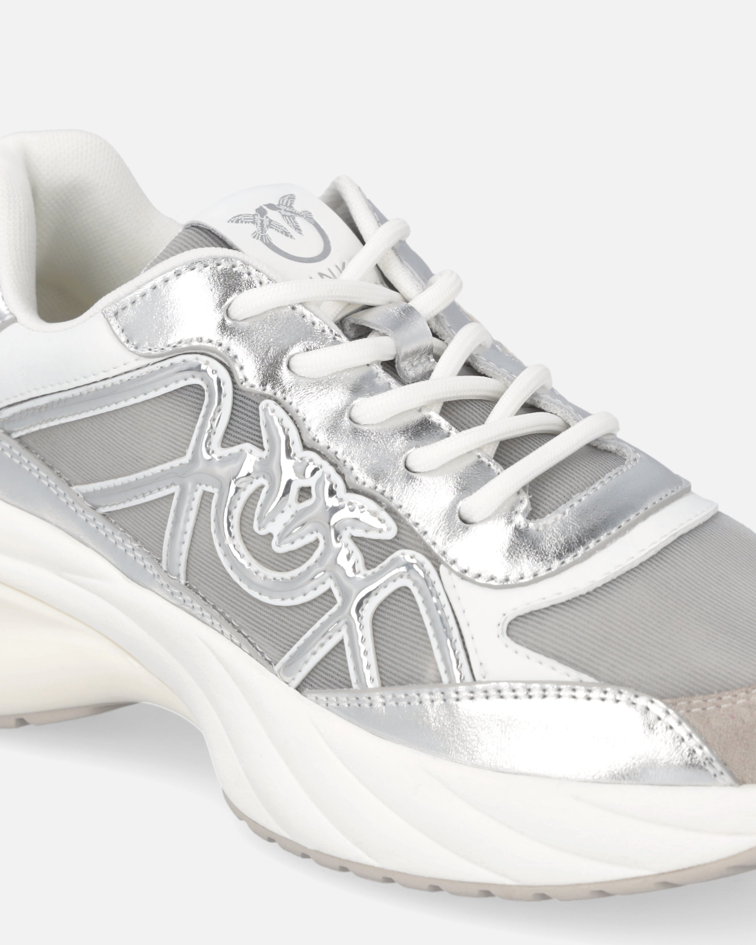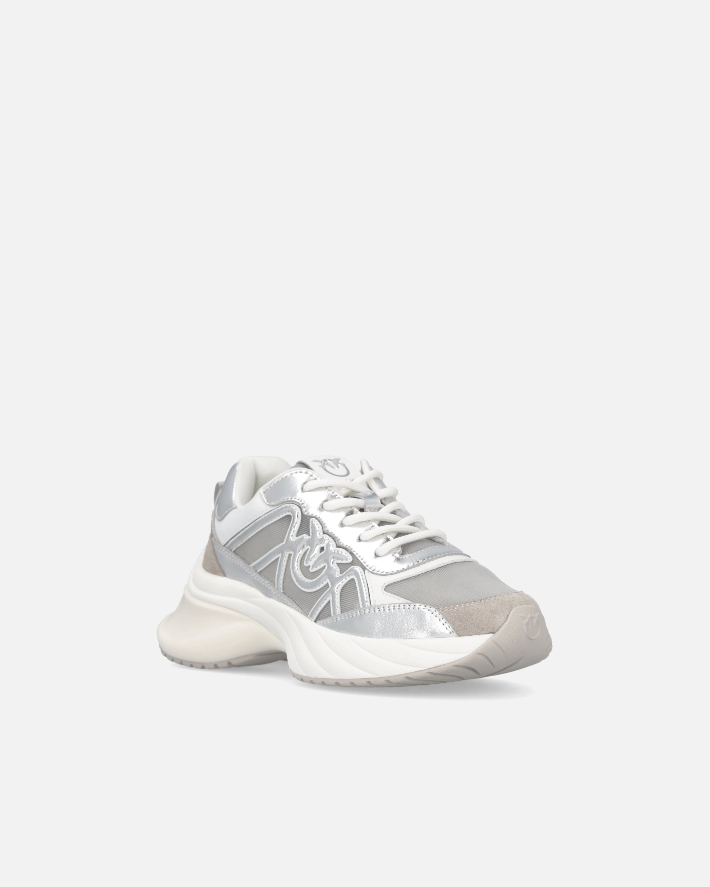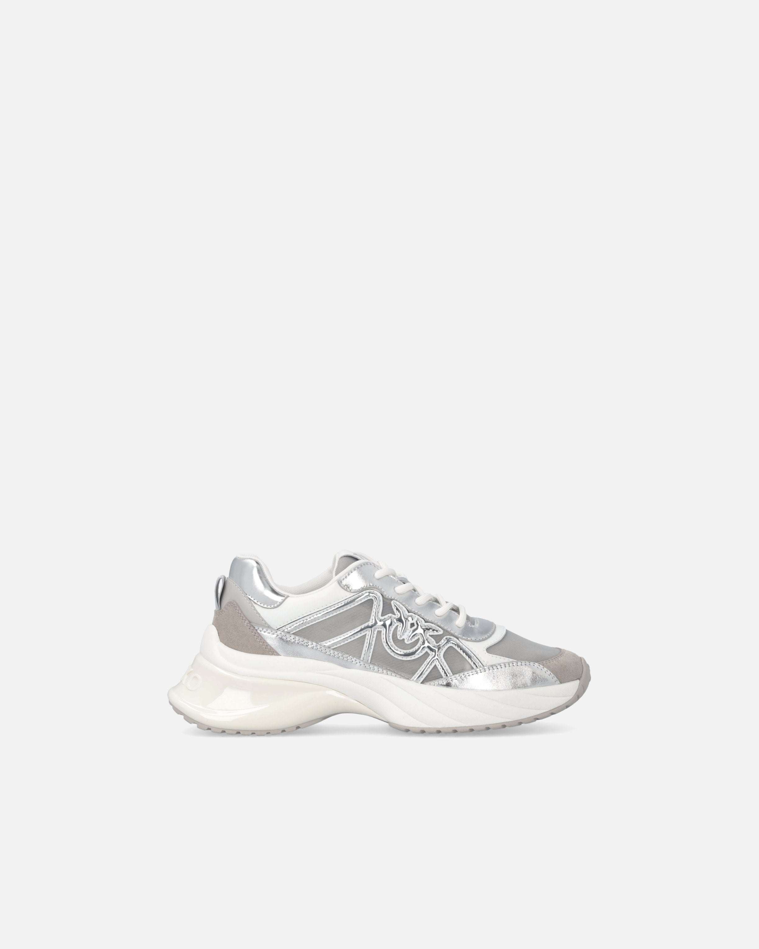 Zapatilla de deporte con cordones caracterizada por un refinado juego de contrastes táctiles y visuales gracias a la combinación de malla, detalles de ante e inserciones de piel laminada. El imprescindible logotipo Love Birds está incorporado en el lateral de la pala y también se reproduce en la lengüeta. El tirador trasero facilita el calzado, mientras que la suela gruesa, con la parte posterior brillante y con el logotipo, garantiza una comodidad inmediata. Reinterpretación contemporánea de un clásico del armario deportivo, estas zapatillas aportan un toque de glamour al más puro estilo PINKO a cualquier conjunto informal.