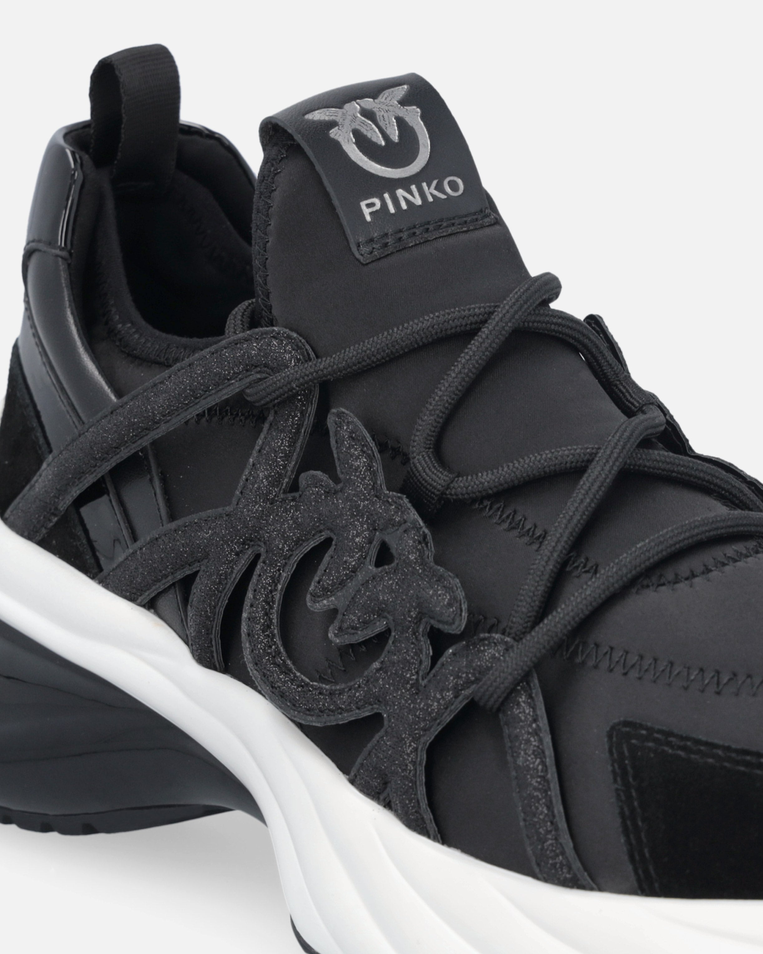 Zapatilla deportiva con cordones, tirante y suela de 7 cm de altura, caracterizada por una pala efecto piel con detalles de raso y ante e inserción brillante en el talón. La pala también presenta una inserción lateral de jaula con acabado purpurina, enriquecida con subperfiles que realzan el diseño, dando un aspecto moderno y refinado al modelo. El logotipo Love Birds se incorpora al diseño en purpurina y también se reproduce en la lengüeta. Estas zapatillas están destinadas a convertirse en una pieza clave de tus looks informales de día y mucho más. ¿Estás de acuerdo?