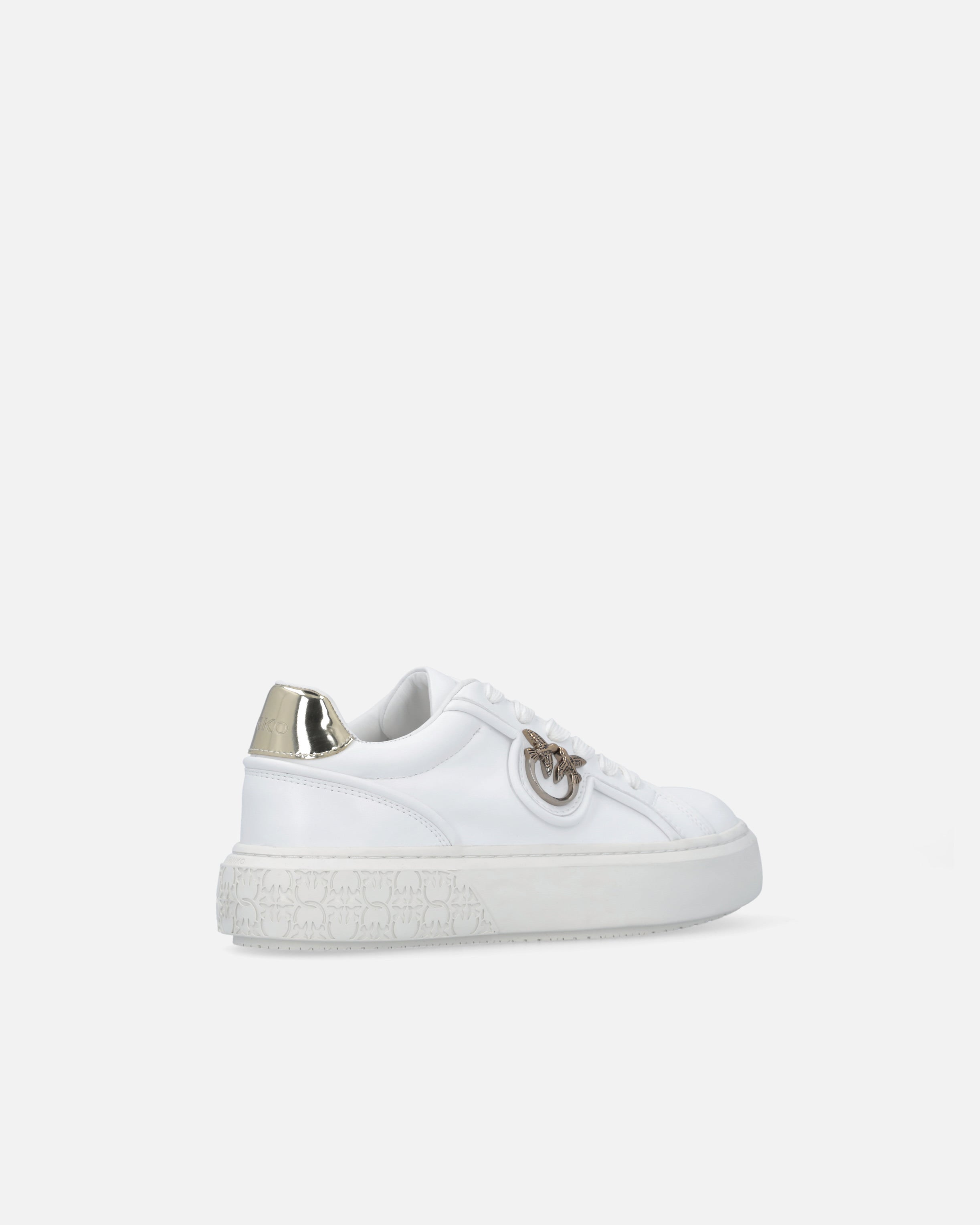 Zapatillas deportivas con cordones realizadas en piel lisa y tejido técnico. El modelo está adornado con los toques luminosos del talón brillante en contraste y del logotipo Love Birds Diamond Cut en el lateral, mientras que el icónico logotipo de letras PINKO destaca impreso en la lengüeta y el talón. La suela gruesa cuenta con una inserción a tono en la parte posterior con el logotipo Love Birds impreso en la goma, para personalizar aún más el modelo. Resulta un modelo esencial del armario femenino, perfecto para crear looks de verano funcionales y, a la vez, contemporáneos. - YOKO 06
