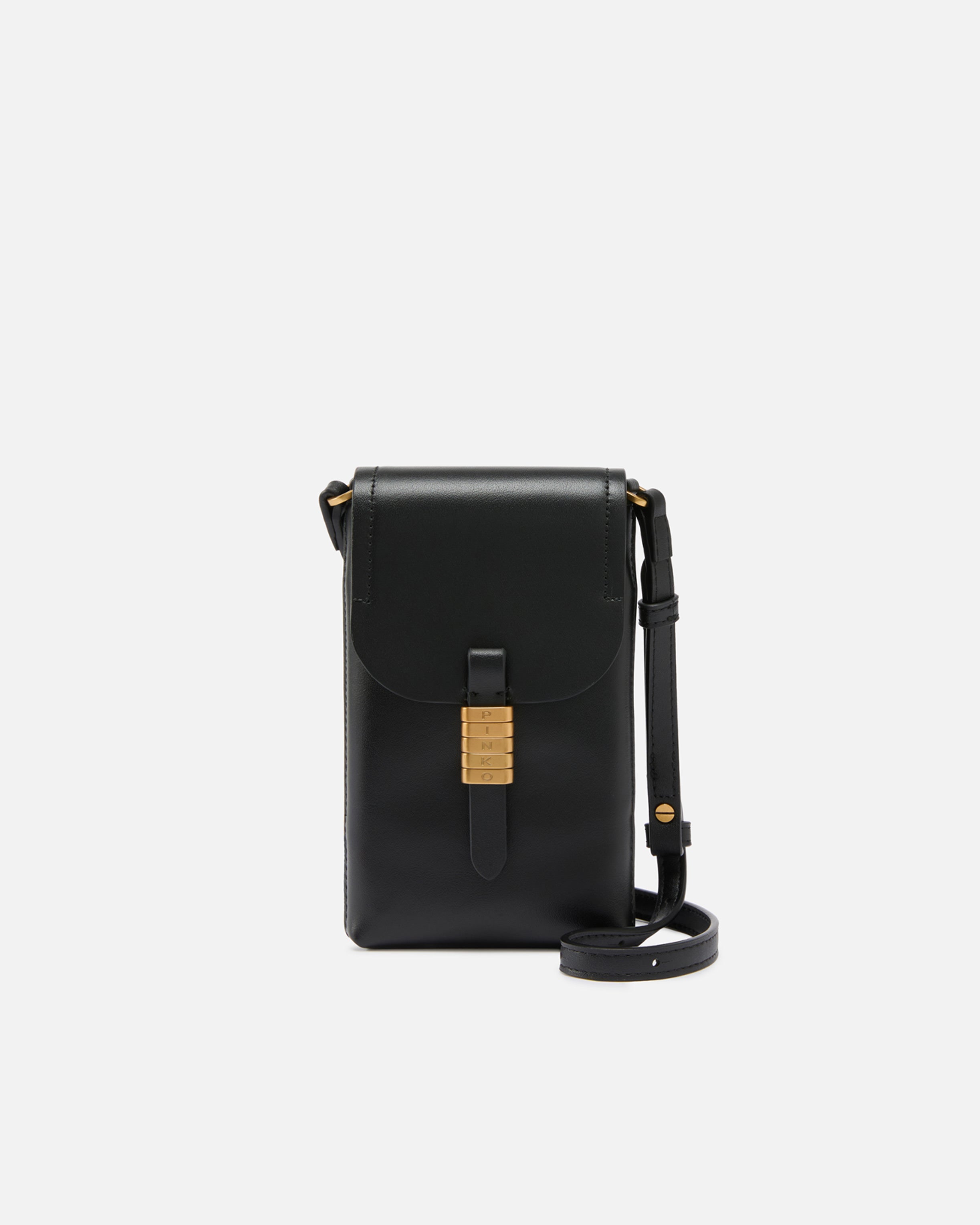 Pochette en cuir souple pour smartphone dotée d'une poche arrière pratique et d'une bandoulière réglable assortie, elle aussi en cuir, pour un porté croisé. La fermeture à petit rabat et patte est ornée d’anneaux décoratifs en métal formant l'emblématique logo PINKO pour une touche précieuse. Activez votre accessoire PINKO : vérifiez l’authenticité de votre article et accédez à une expérience personnalisée en approchant votre smartphone de la broderie Love Birds à l’arrière ! - SADDLE PHONE CASE BELT