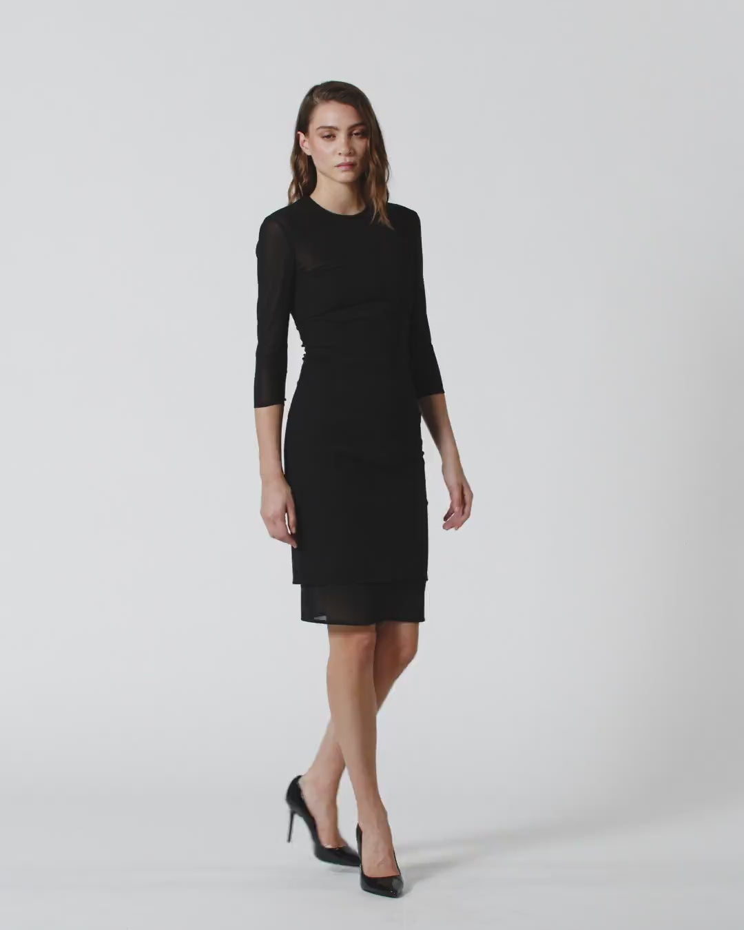 Robe ajustée longueur genou à manches longues avec fermeture zippée au dos. Doté d’une grande élasticité, ce tissu confère au vêtement un effet galbant, mettant en valeur les formes de manière naturelle et harmonieuse. Ce modèle garantit un confort optimal en enveloppant le corps sans compromettre la liberté de mouvement et en offrant une coupe qui souligne la silhouette avec discrétion et élégance. Ce vêtement est rehaussé de détails transparents sur les bras et la poitrine pour un look sensuel et raffiné.