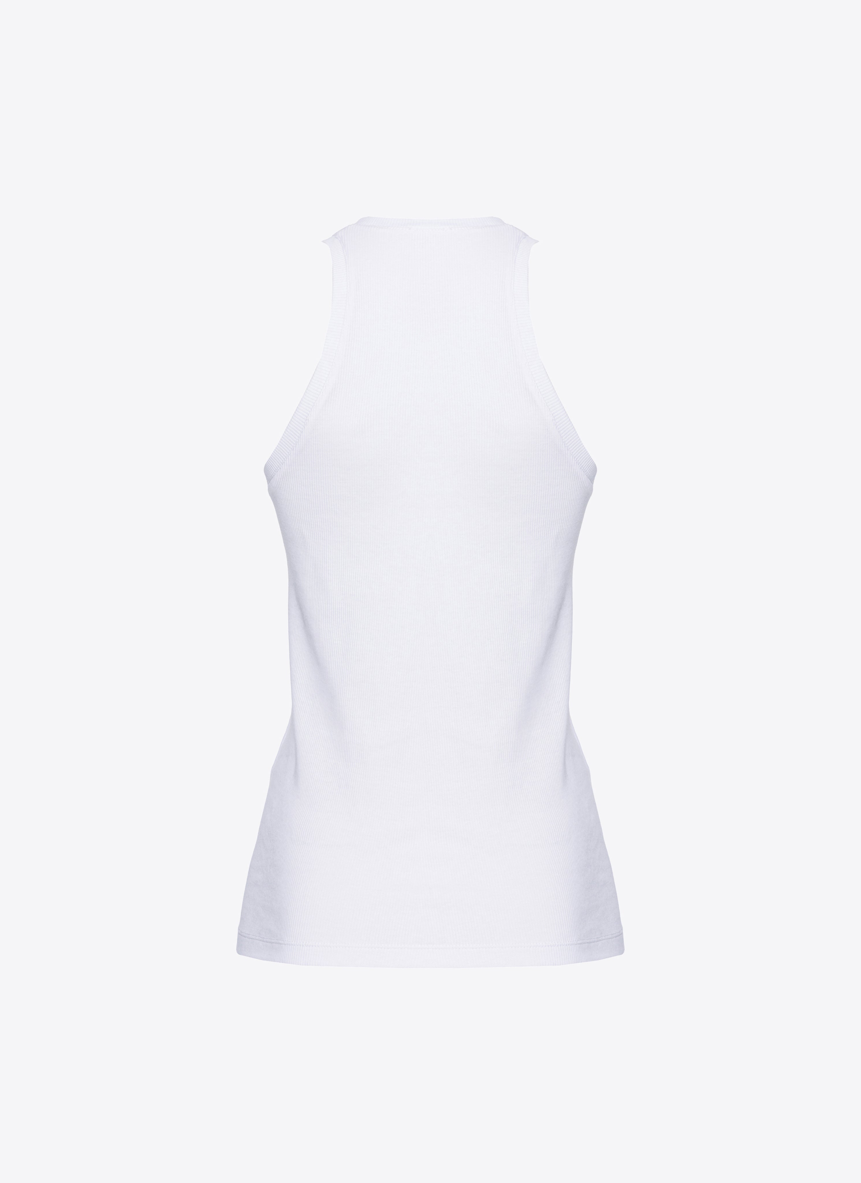 Débardeur en maille côtelée de coton. Coupe ajustée avec dos nageur et logo PINKO au milieu devant. - DISTINTO TOP
