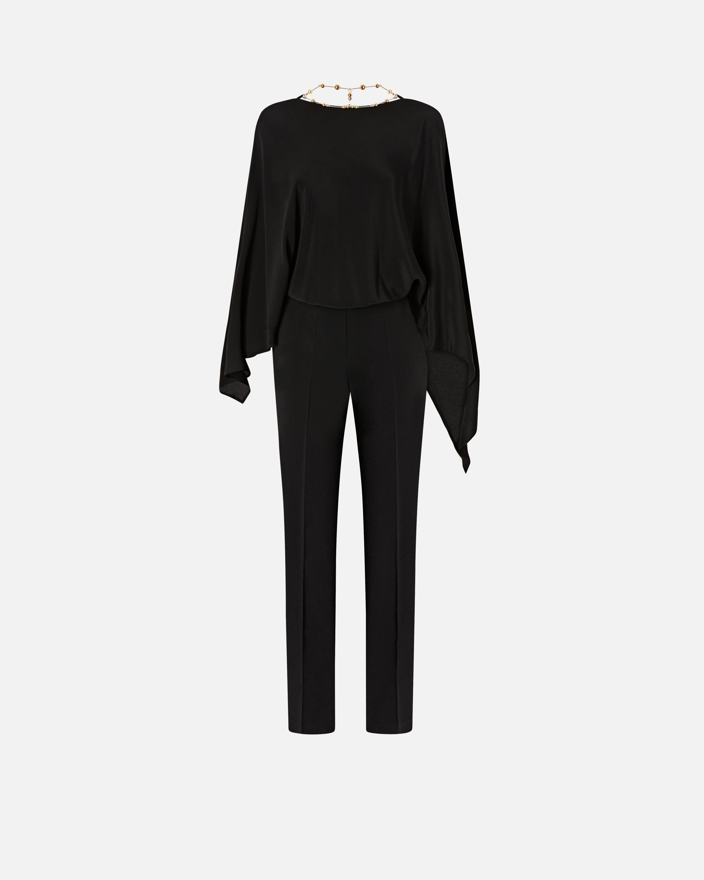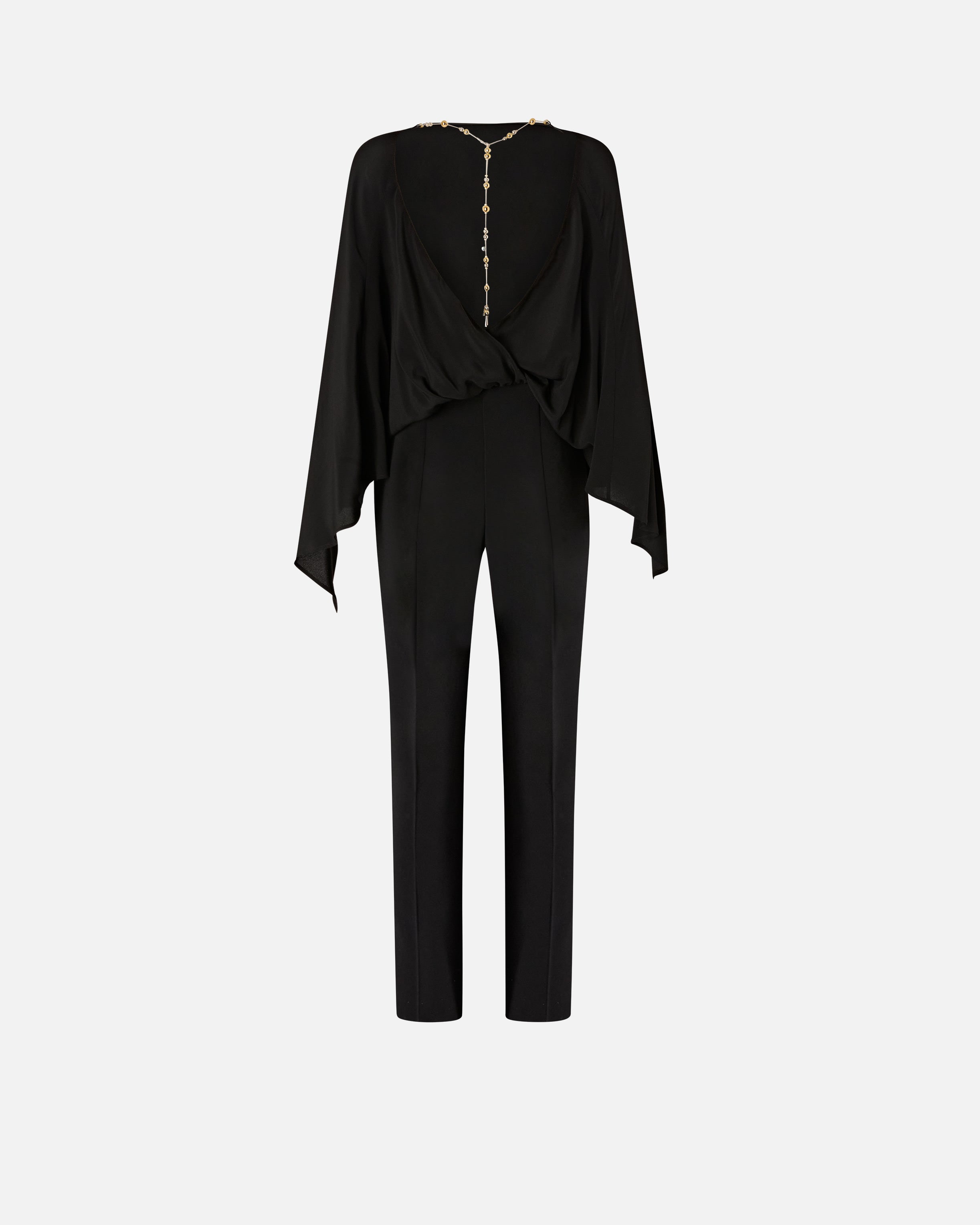 Combinaison-pantalon dos nu avec collier bijou