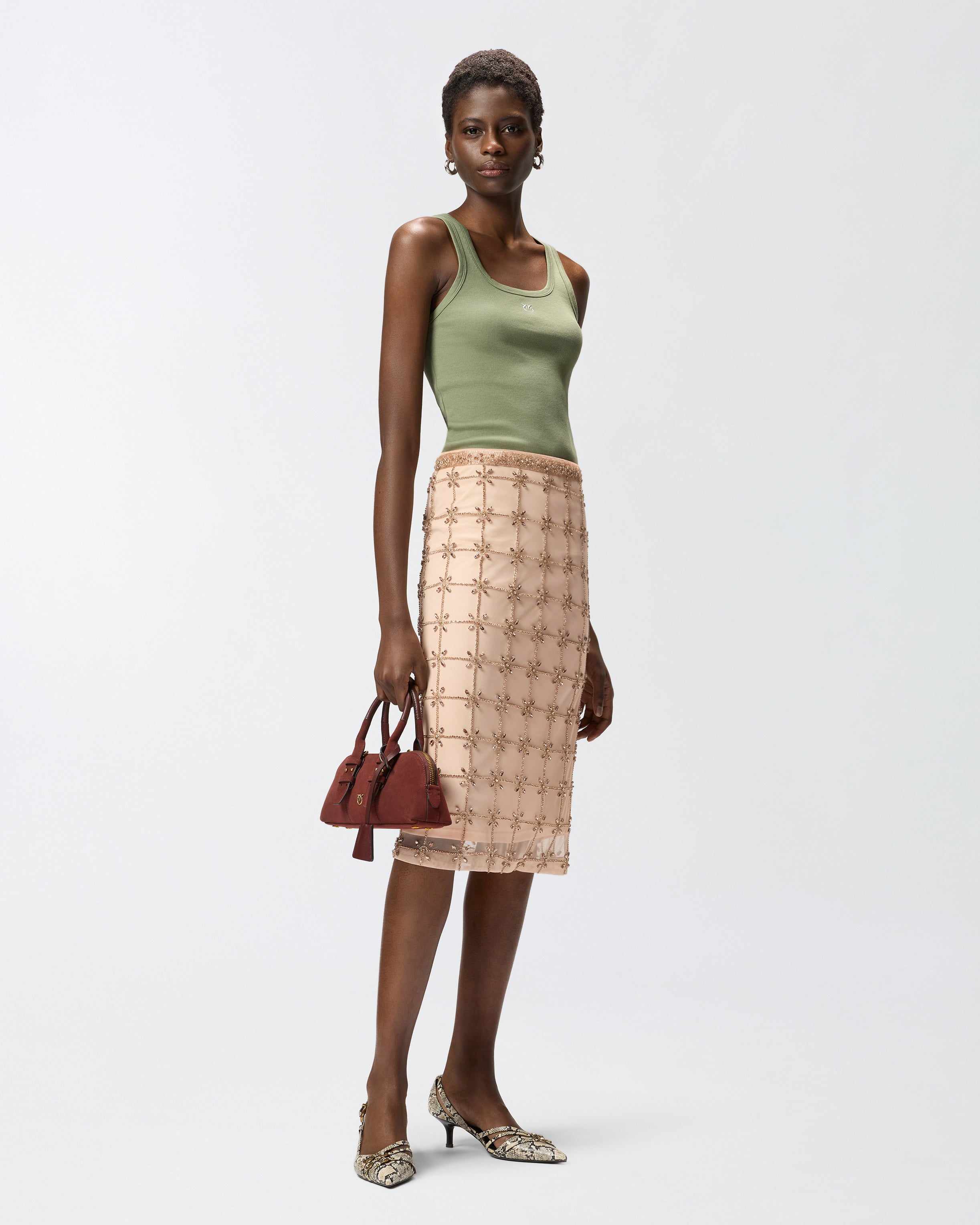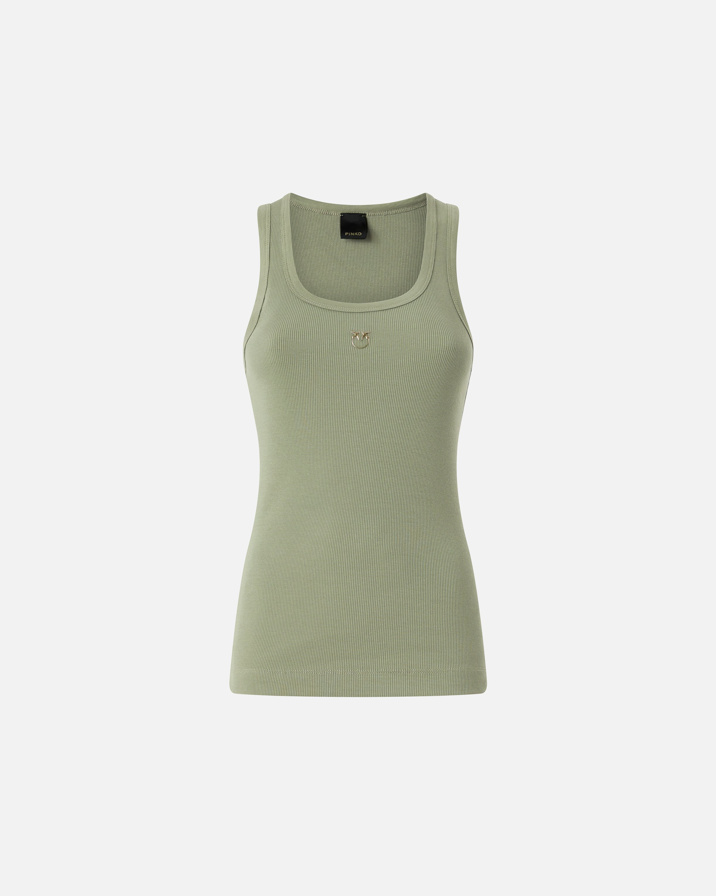 Débardeur en doux jersey de coton stretch à fines côtes, rehaussé d’une application dorée avec le logo Love Birds sur la poitrine, pour une touche étincelante dans le plus pur style PINKO. Ultra-polyvalent, ce modèle se marie facilement avec une jupe raffinée ou un jean pour les occasions plus décontractées. - CALCOLATORE TANK TOP