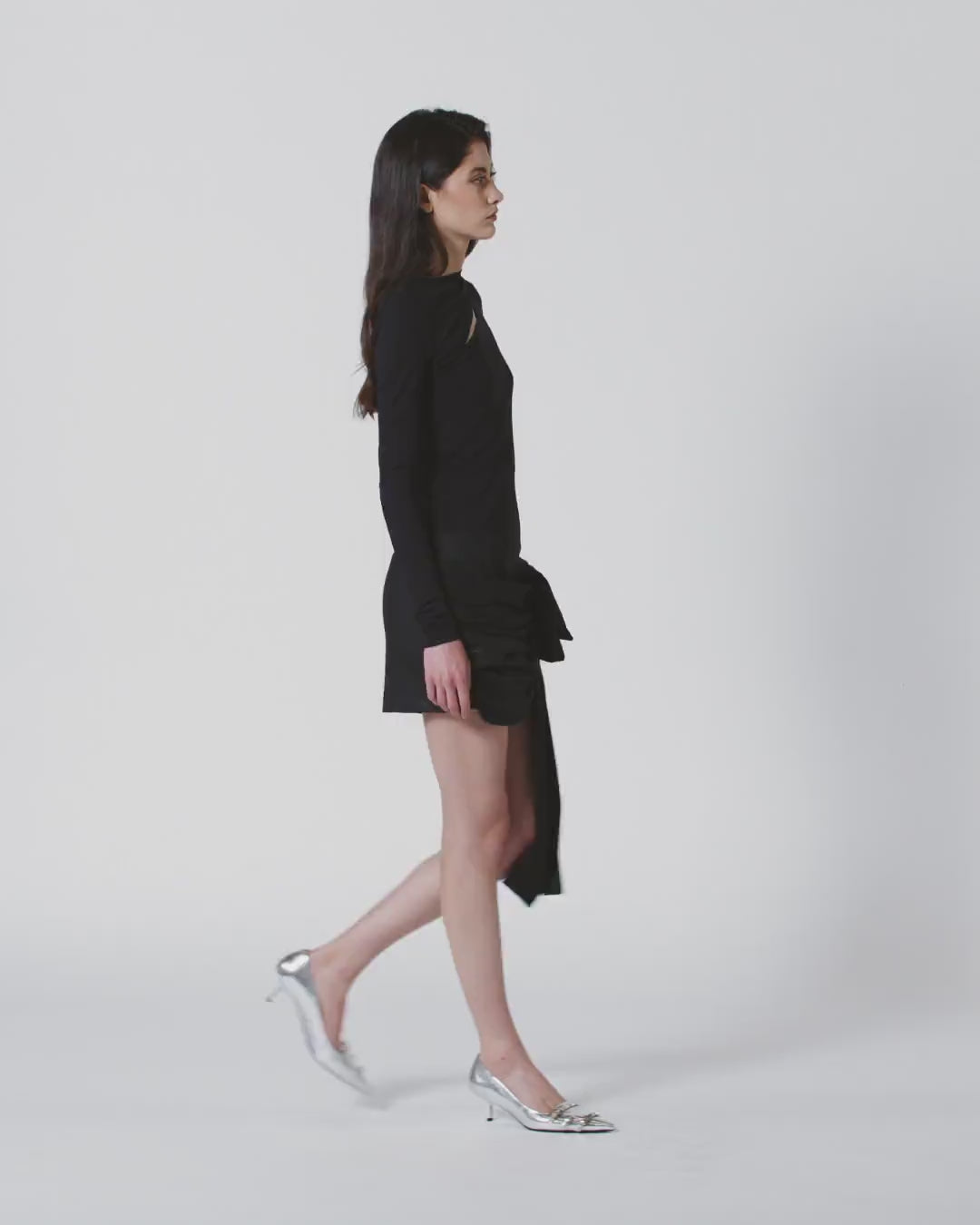 Mini-jupe en tissu de laine mélangée classique orné d’un fil fin métallisé créant un effet rayé très délicat et légèrement chatoyant sous la lumière. Modèle drapé sur le devant avec fermeture zippée au milieu du dos, rehaussé d’une bande décorative nouée sur le côté. À porter avec la veste assortie pour un total look glamour qui fera de vous l’objet de tous les regards.