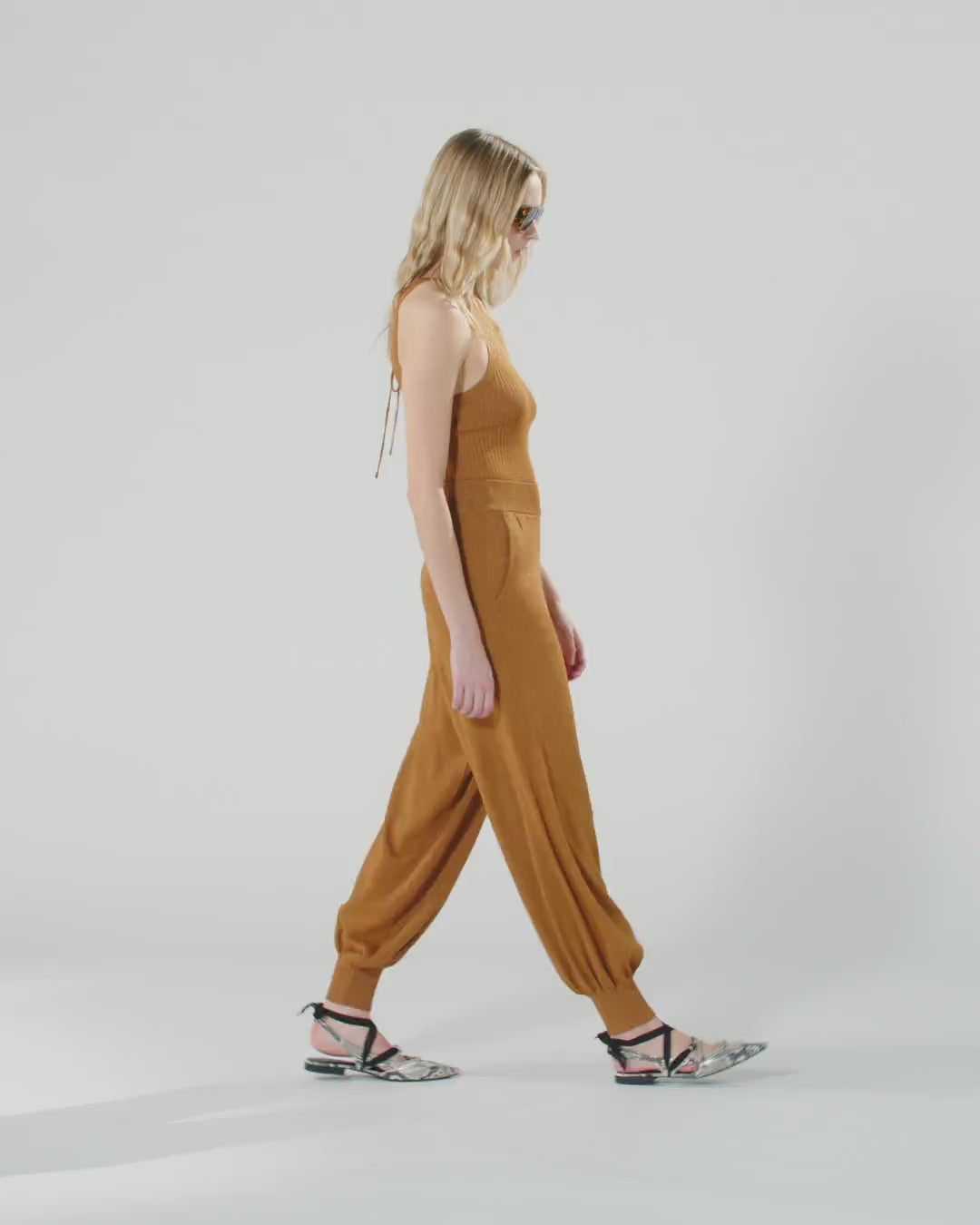 Pantalon large et fluide en maille de viscose mélangée, légère et transparente, rehaussée par la présence d'un fil fin métallisé pour une touche d’éclat raffinée. Modèle doté de poches pratiques, de bords-côtes élastiqués à la taille et en bas de jambe et d’une étiquette à logo PINKO en jacquard au dos. Idéal pour un look confortable sans compromis sur l'élégance.