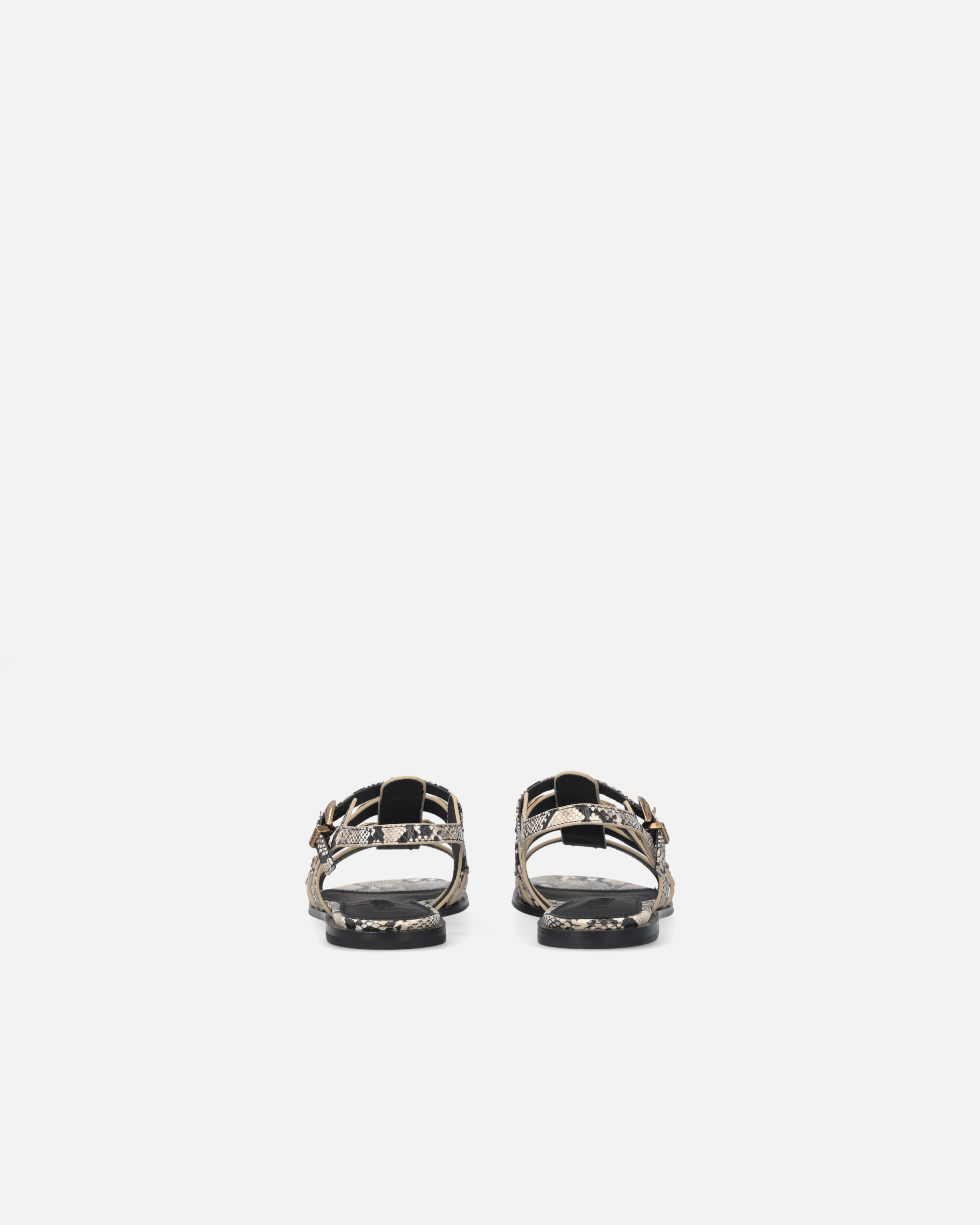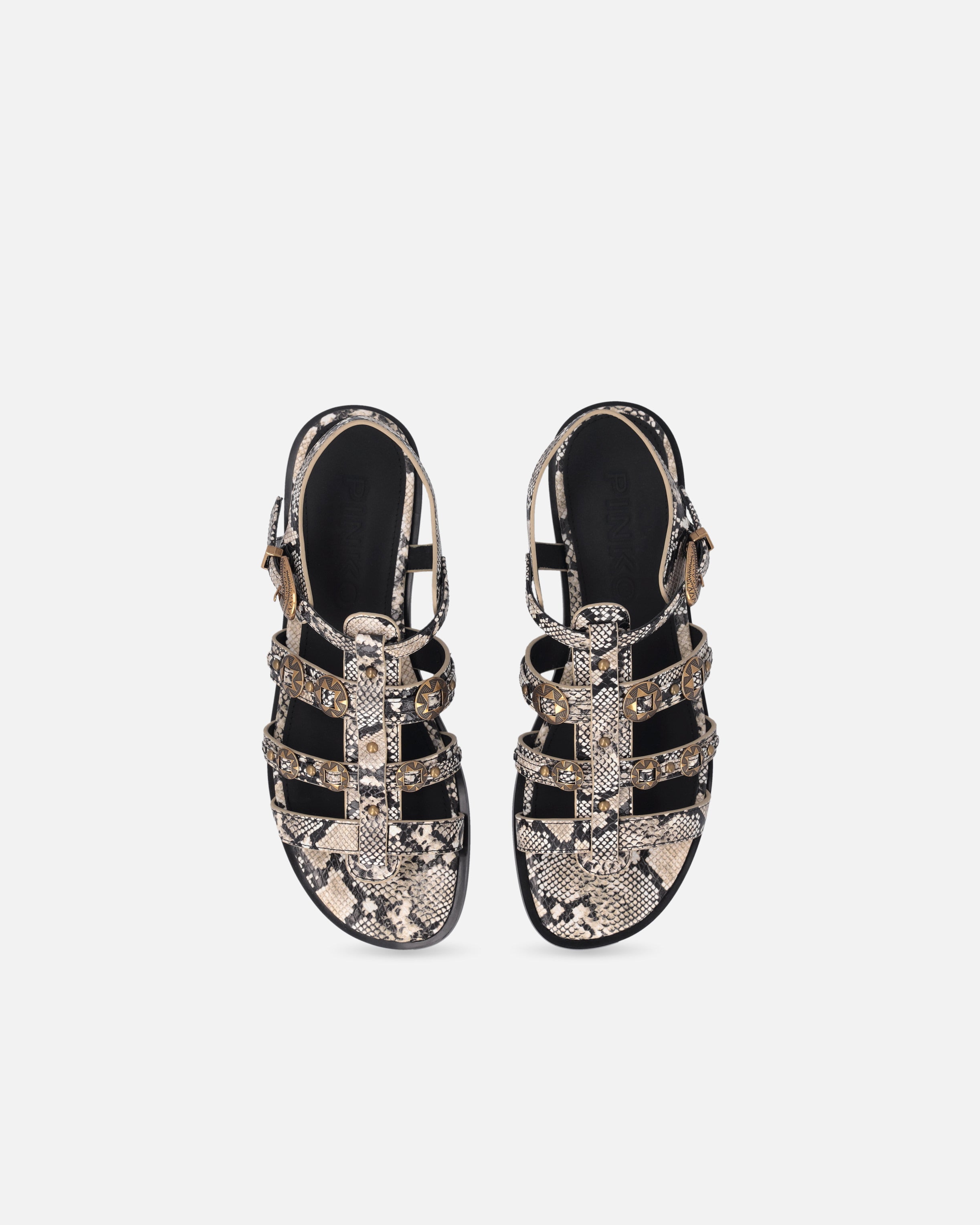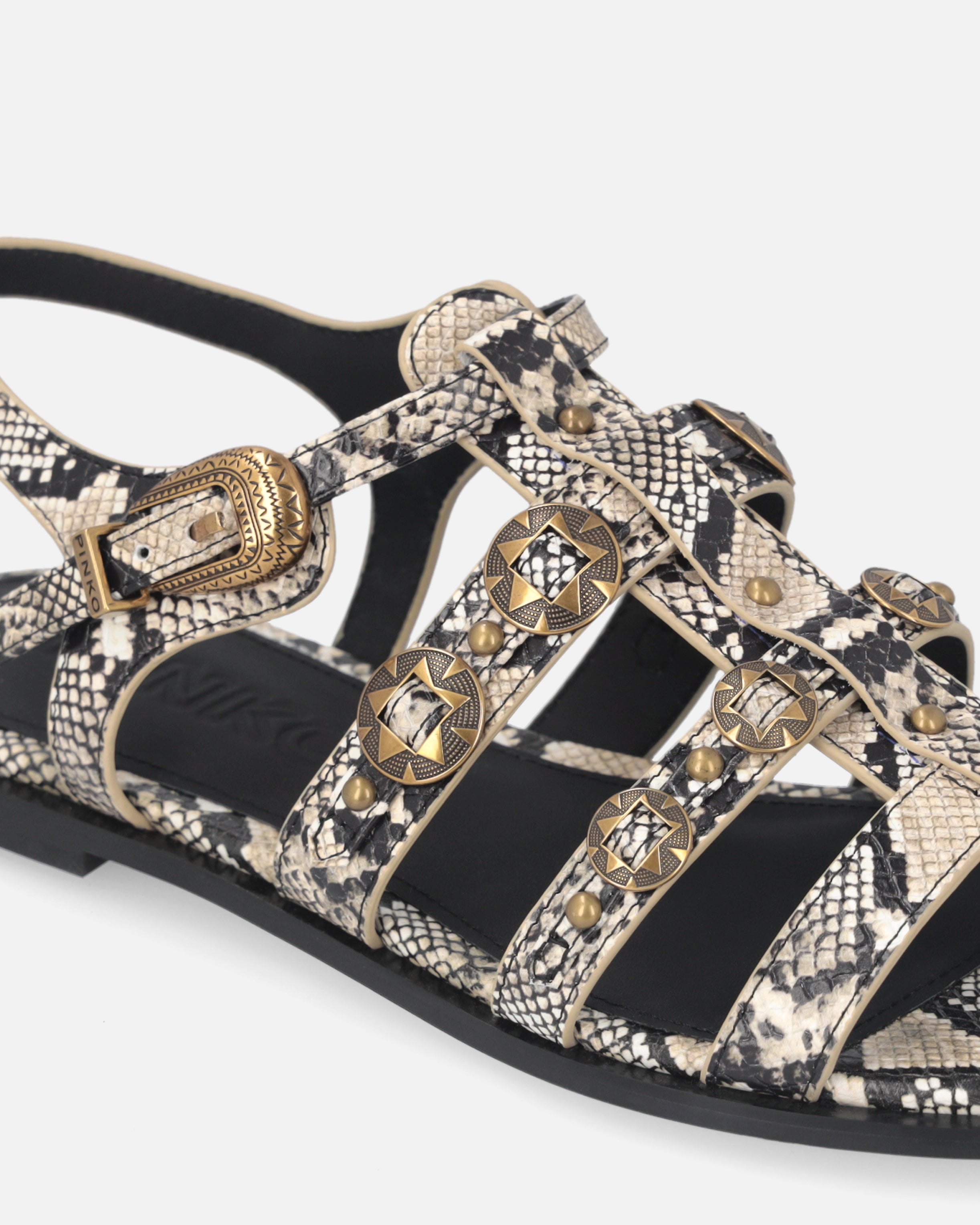 Sandales basses en cuir souple caractérisées par une esthétique sauvage et contemporaine, exaltée par l’audacieux embossage python qui orne les trois bandes horizontales, la lanière verticale, la bride de cheville et le profil de la semelle intérieure. Ce modèle se distingue par l’attention portée aux détails, typique des créations PINKO : les clous appliqués sur les bandes, qui confèrent une allure rock et sophistiquée, et la boucle bijou en métal finement ouvragé, qui ajoute un autre élément précieux. Dotées d’une semelle intérieure en cuir pour un port encore plus confortable et d’une semelle en caoutchouc qui sécurise chaque pas, ces sandales vous accompagneront avec grâce et élégance lors des événements de la belle saison, des occasions les plus décontractées à celles légèrement plus habillées. - MILLY 07