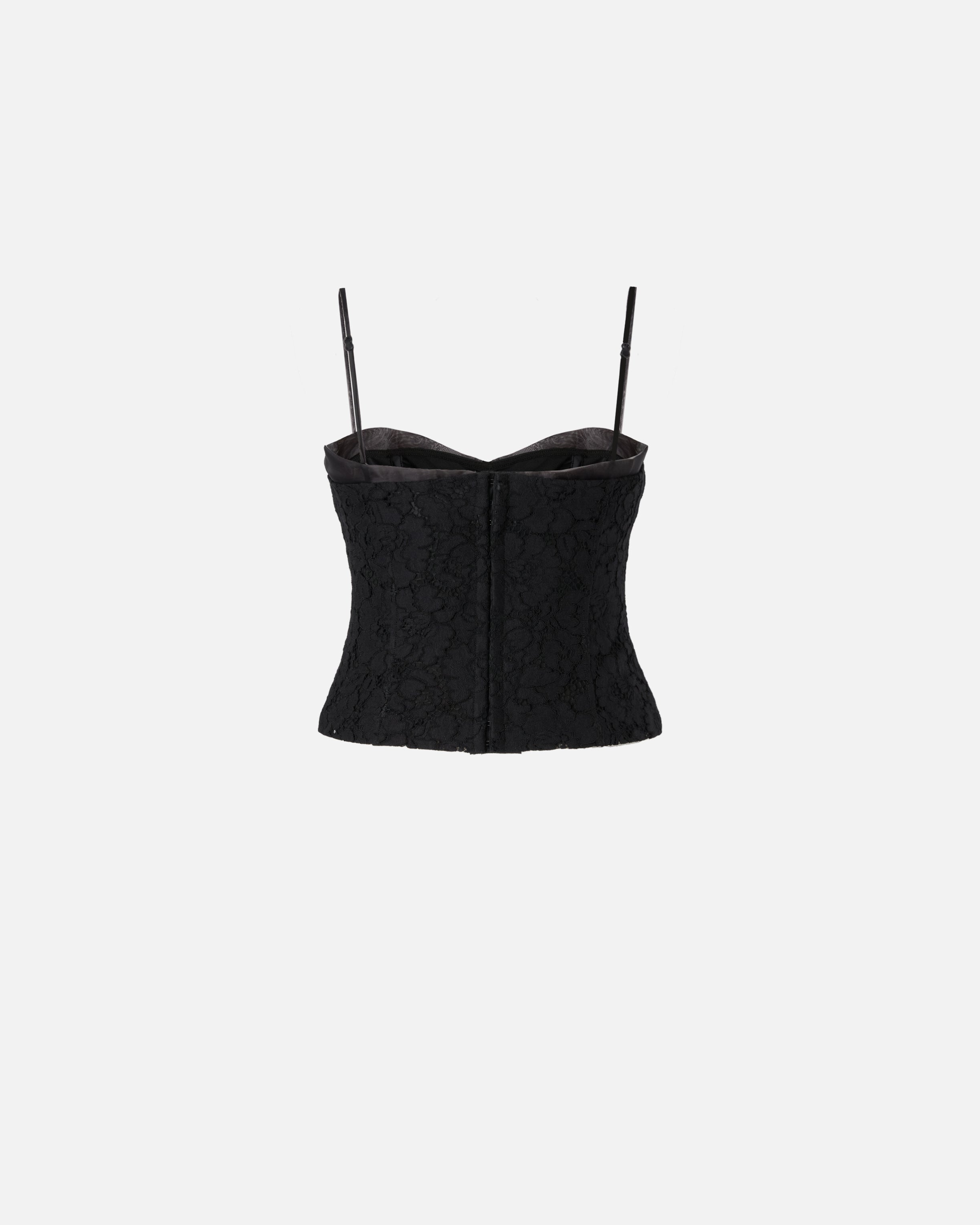 Top bustier ajusté à fines bretelles réglables, encolure cœur raffinée et fermeture par agrafes au dos. Toute l’originalité de ce modèle tient cependant à la dentelle rebrodée raffinée à riches motifs floraux tridimensionnels pour un résultat spectaculaire et séduisant. Ce modèle, idéal pour un vrai look de star en soirée, est doublé pour plus de confort. - ATEMOYA BUSTIER