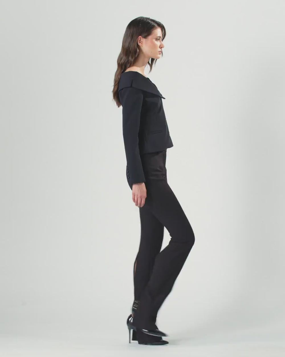 Veste ajustée à manches longues en crêpe stretch. La patte de boutonnage décalée, les poignets boutonnés et les poches latérales passepoilées s’inspirent du blazer classique, tandis que la large encolure qui laisse les épaules dénudées rend ce modèle résolument féminin : à la clé, un look structuré et chic, comme seul PINKO sait le faire.