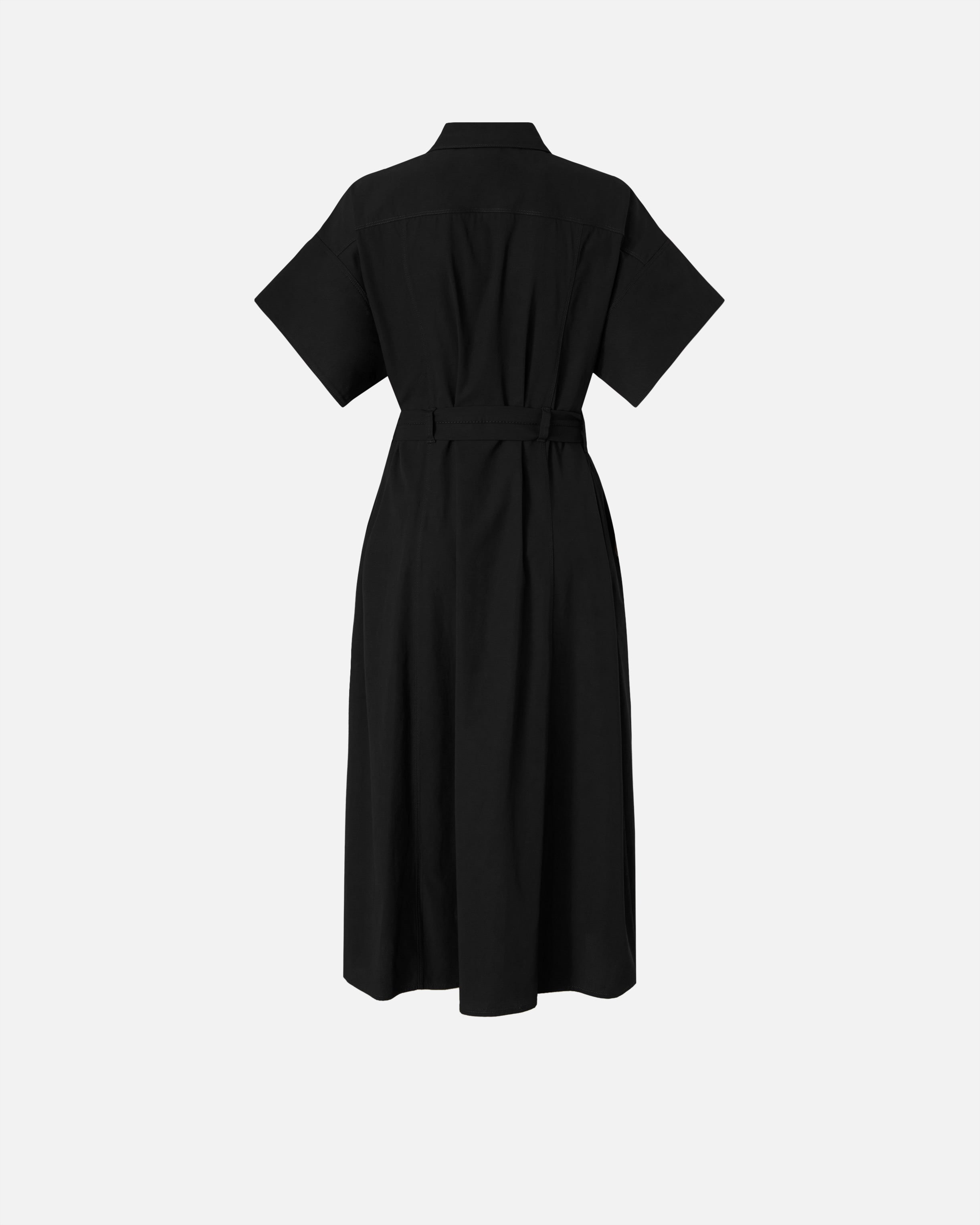 Abito chemisier midi con colletto stile camicia, ampie mezze maniche, comode tasche sui fianchi e gonna dritta con un accenno di svasatura verso il fondo. Il modello, dotato di una chiusura frontale con eleganti bottoni e di una cintura abbinata e rimovibile in vita da annodare a proprio piacimento, è realizzato in un particolare cotone dalla mano fluida ma compatta, un tessuto leggero e contemporaneo pronto ad accompagnarti nei tuoi look da giorno. Il vestito è foderato per rendere l'indosso ancora più confortevole. - ALESHA ABITO