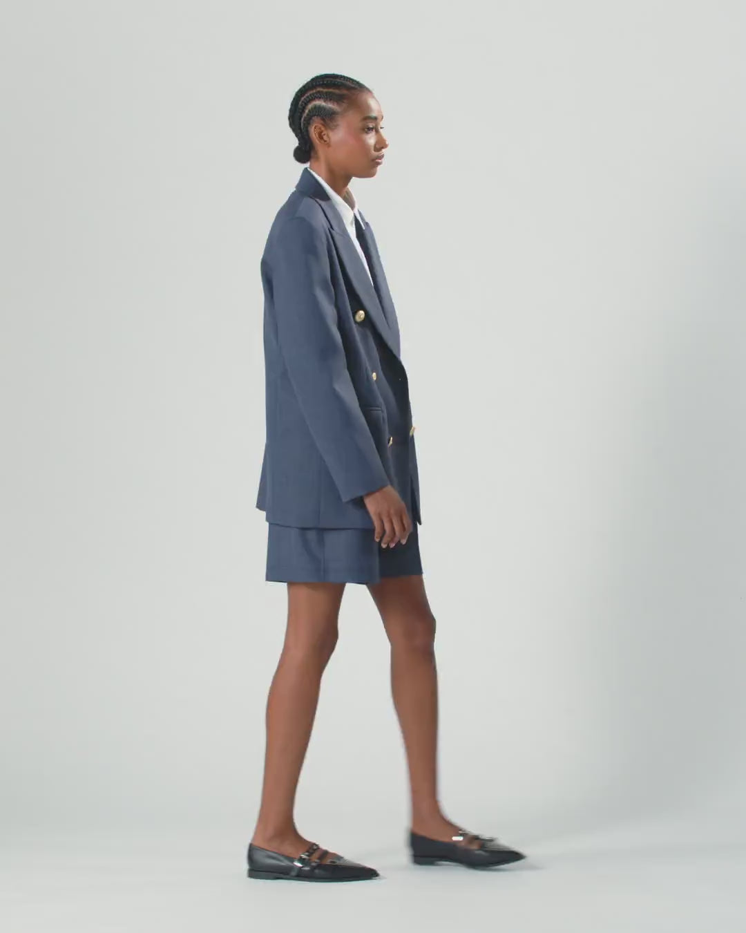 Blazer doppiopetto dalla linea dritta con collo a revers, tasche anteriori con pattina e taschino a filetto sul petto. Il capo è realizzato in lana armaturata, particolarmente strutturata e resistente anche per la stagione fredda. L'interno della giacca è foderato in tessuto, per garantire una vestibilità perfetta. Chiusura davanti con bottoni in metallo decorati da stella. Abbina il blazer con il pantalone nello stesso tessuto per un effetto tailleur, oppure indossa una camicia per un look formale, ma non troppo.