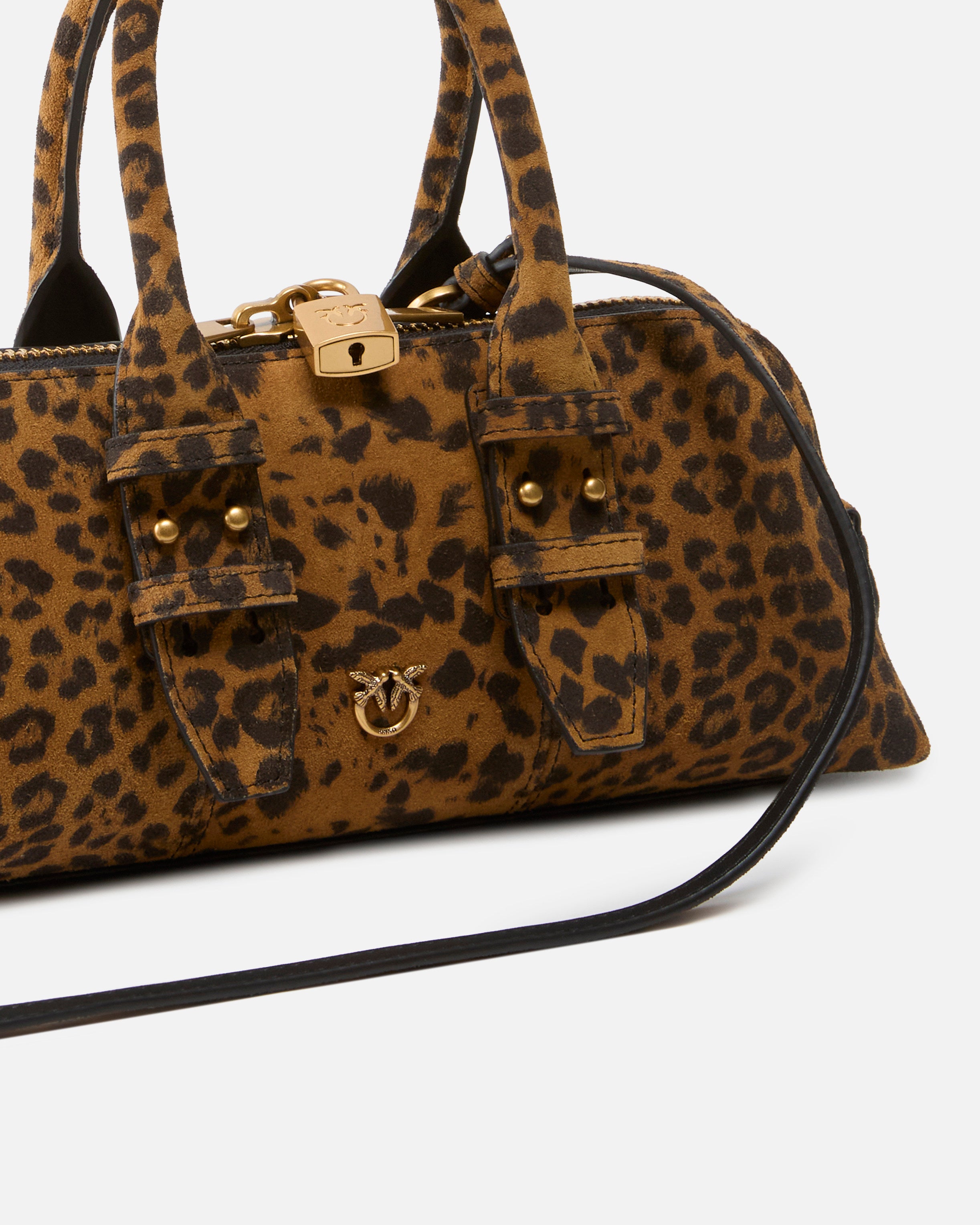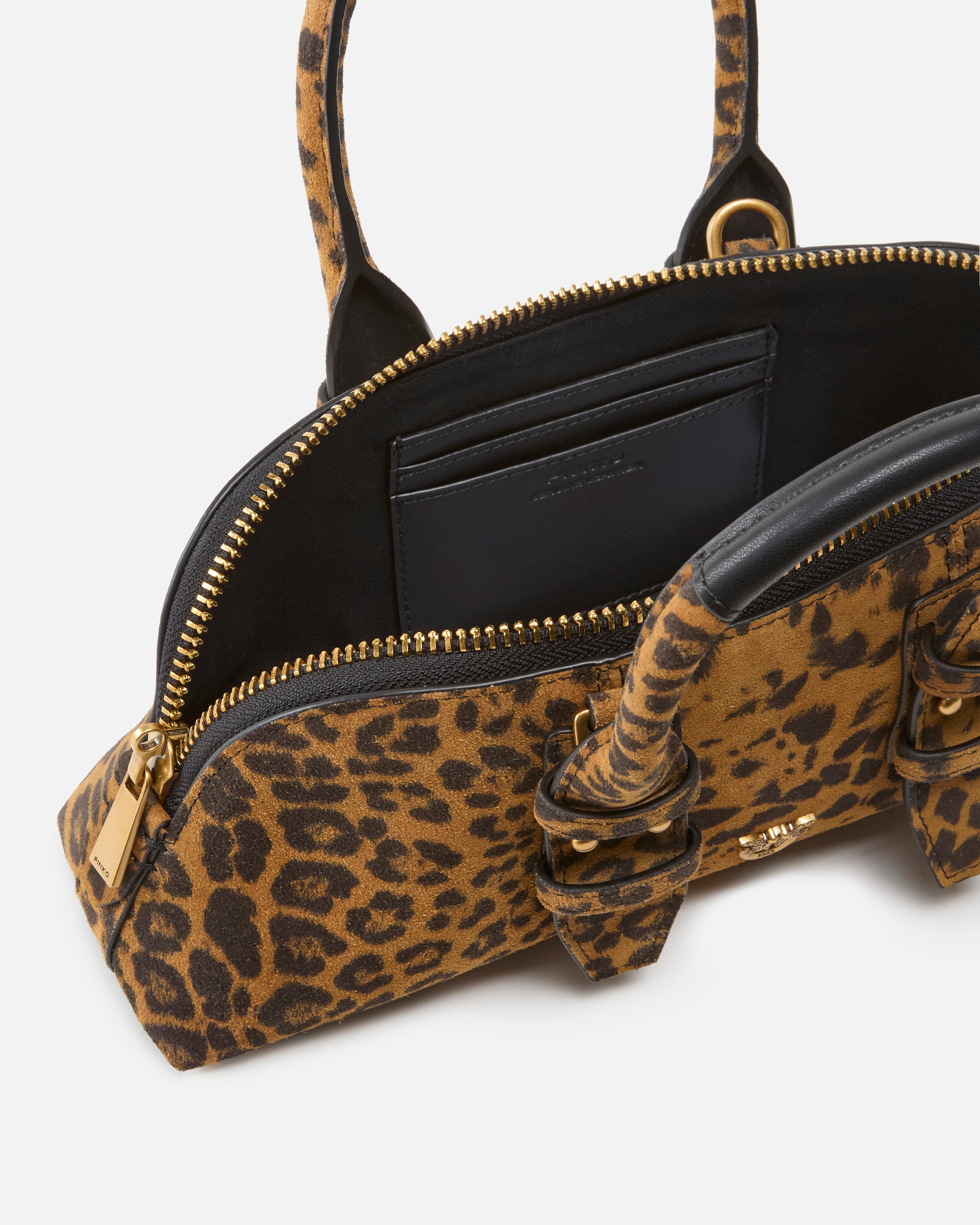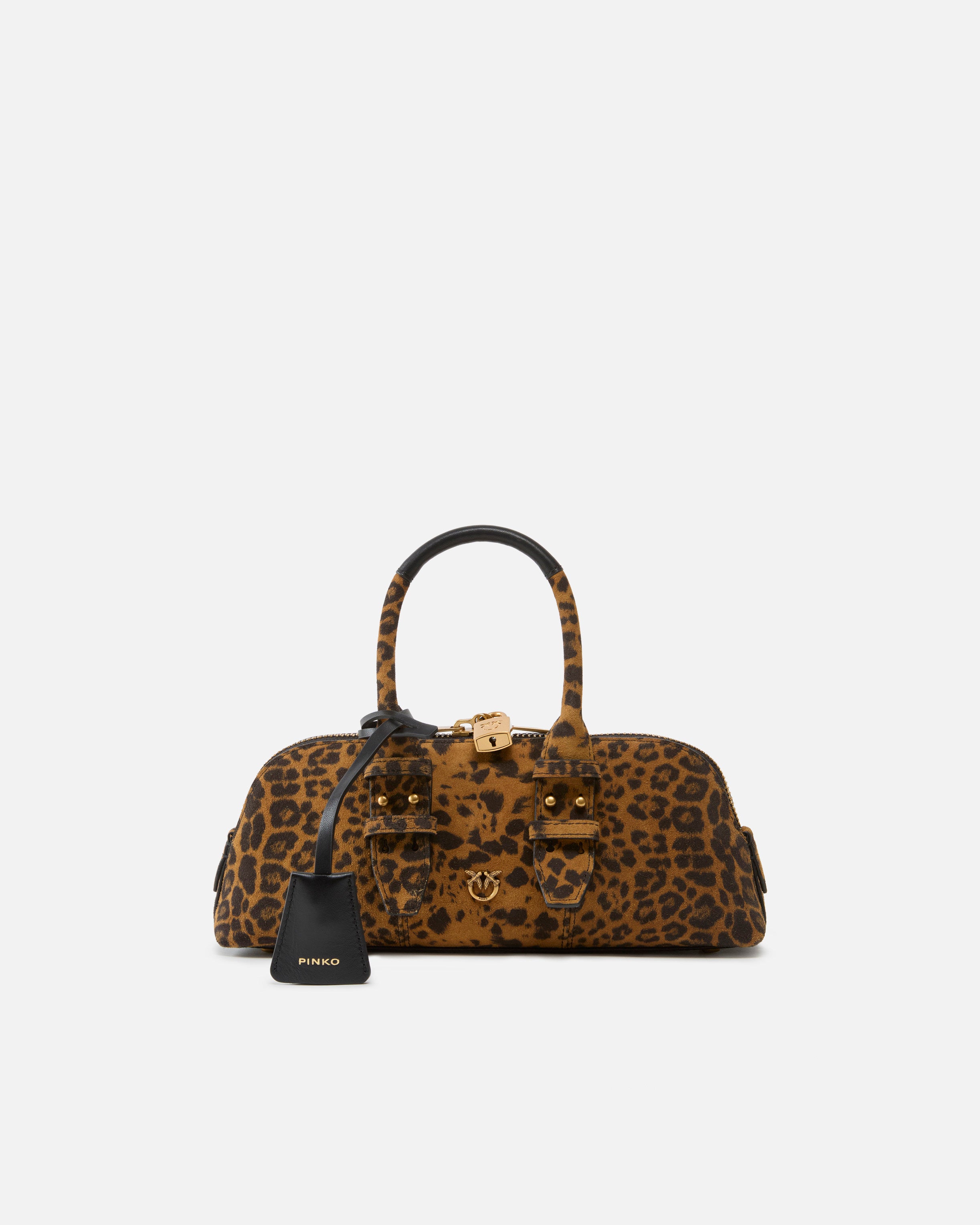 Borsa a mano dal design strutturato e compatto, realizzata in morbido suede con stampa maculata dall’attitudine audace e sofisticata. La silhouette allungata è valorizzata da doppi manici superiori e da dettagli metallici gold che illuminano il design con un tocco ricercato. Perfetta per completare look urbani o outfit più ricercati, è l’accessorio ideale per chi ama distinguersi con eleganza e personalità.
