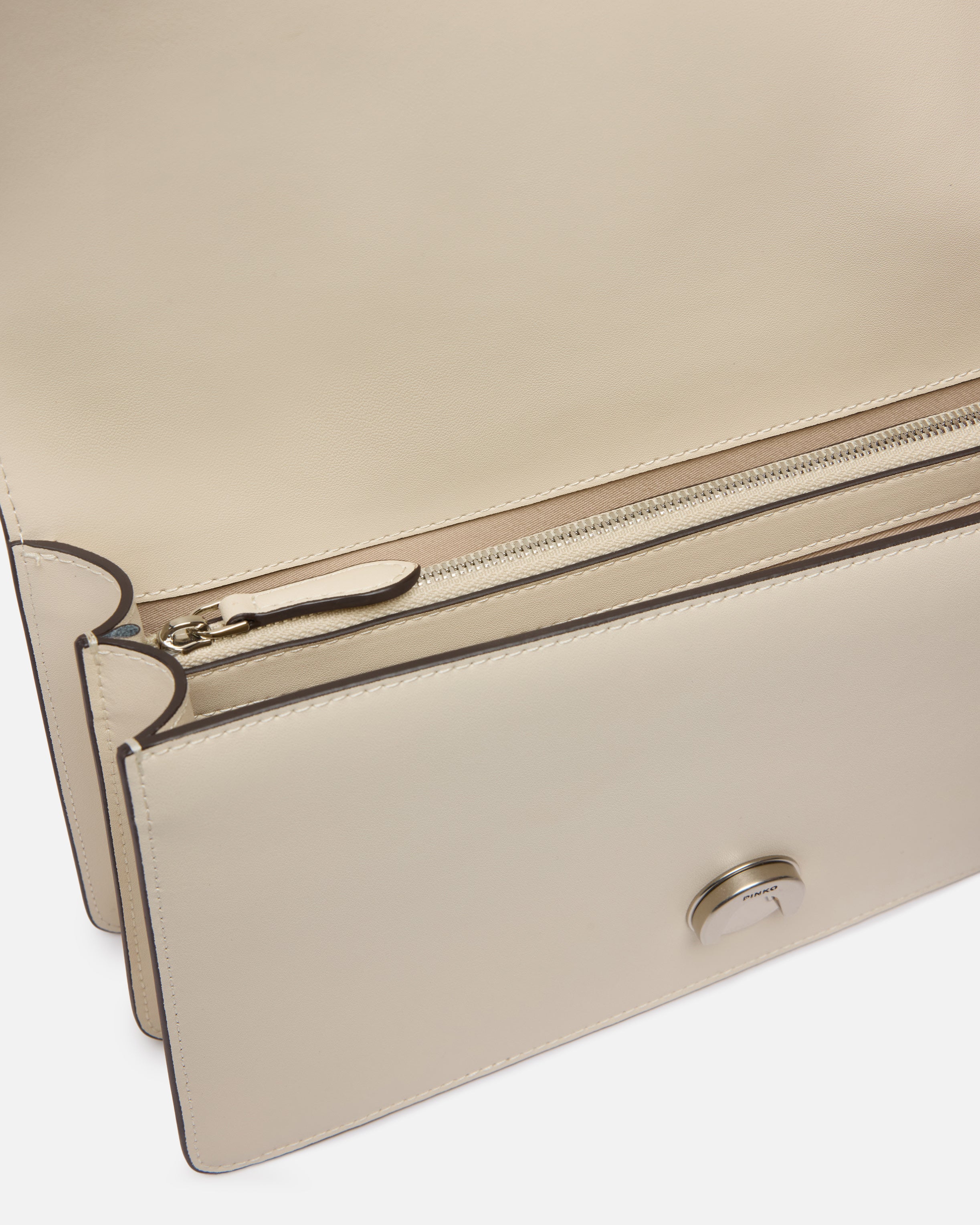 Borsa a mano media Love Bag One realizzata in pelle dalla mano seta. Caratterizzato dalla tracolla regolabile e rimovibile in pelle e catena, il modello risulta estremamente versatile e pratico. La chiusura a baccello con bottone magnetico è completata da fibbia con logo uccellini Love Birds Diamond Cut e piccole borchie in metallo. L'interno è foderato in cotone e presenta una tasca con zip per tenere al sicuro i tuoi essenziali. Attiva la tua borsa PINKO: verifica l'autenticità del tuo prodotto e accedi all'esperienza personalizzata avvicinando il tuo smartphone al ricamo Love Birds che trovi sul retro della borsa!