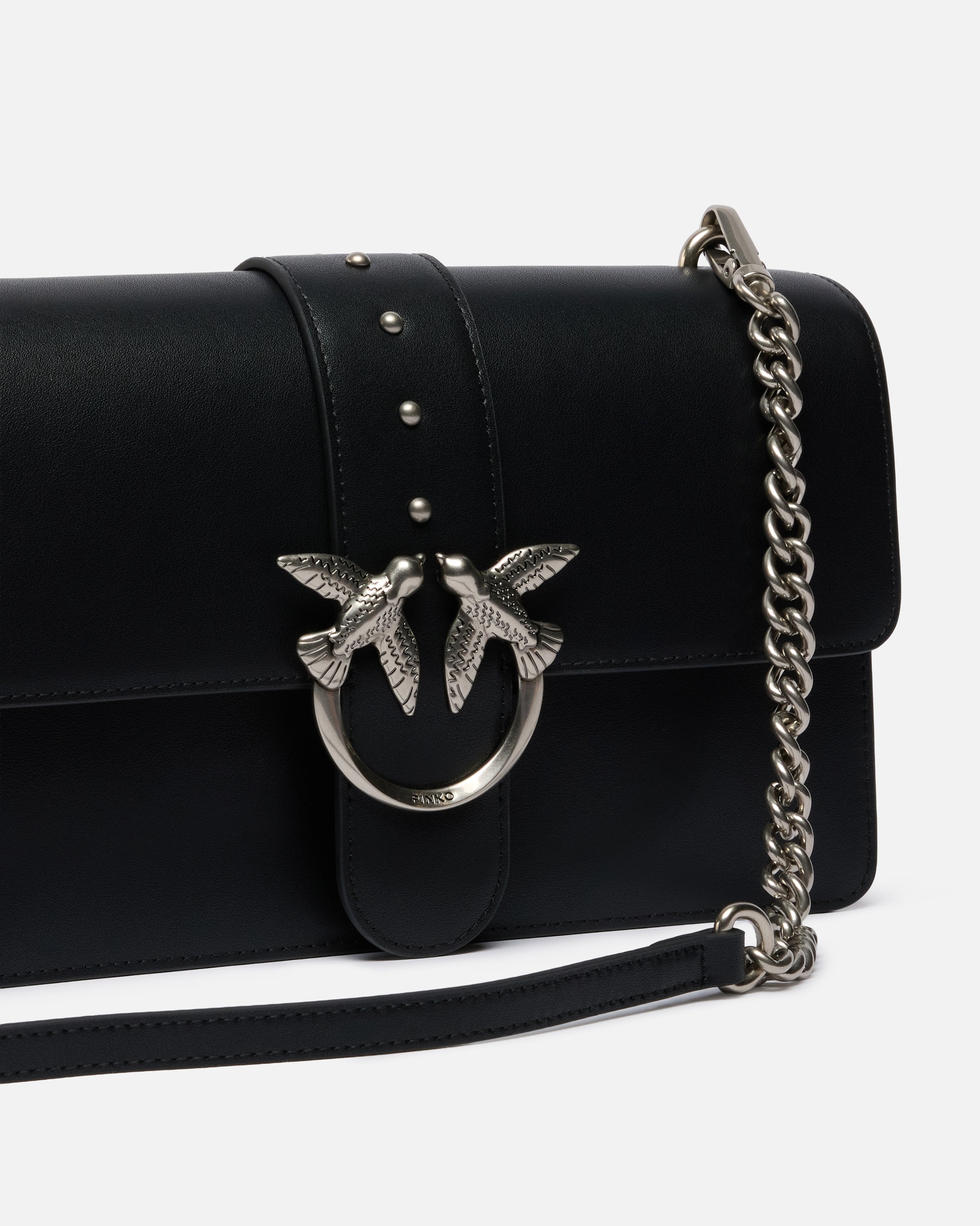 Borsa a mano media Love Bag One realizzata in pelle dalla mano seta. Caratterizzato dalla tracolla regolabile e rimovibile in pelle e catena, il modello risulta estremamente versatile e pratico. La chiusura a baccello con bottone magnetico è completata da fibbia con logo uccellini Love Birds Diamond Cut e piccole borchie in metallo. L'interno è foderato in cotone e presenta una tasca con zip per tenere al sicuro i tuoi essenziali. Attiva la tua borsa PINKO: verifica l'autenticità del tuo prodotto e accedi all'esperienza personalizzata avvicinando il tuo smartphone al ricamo Love Birds che trovi sul retro della borsa!