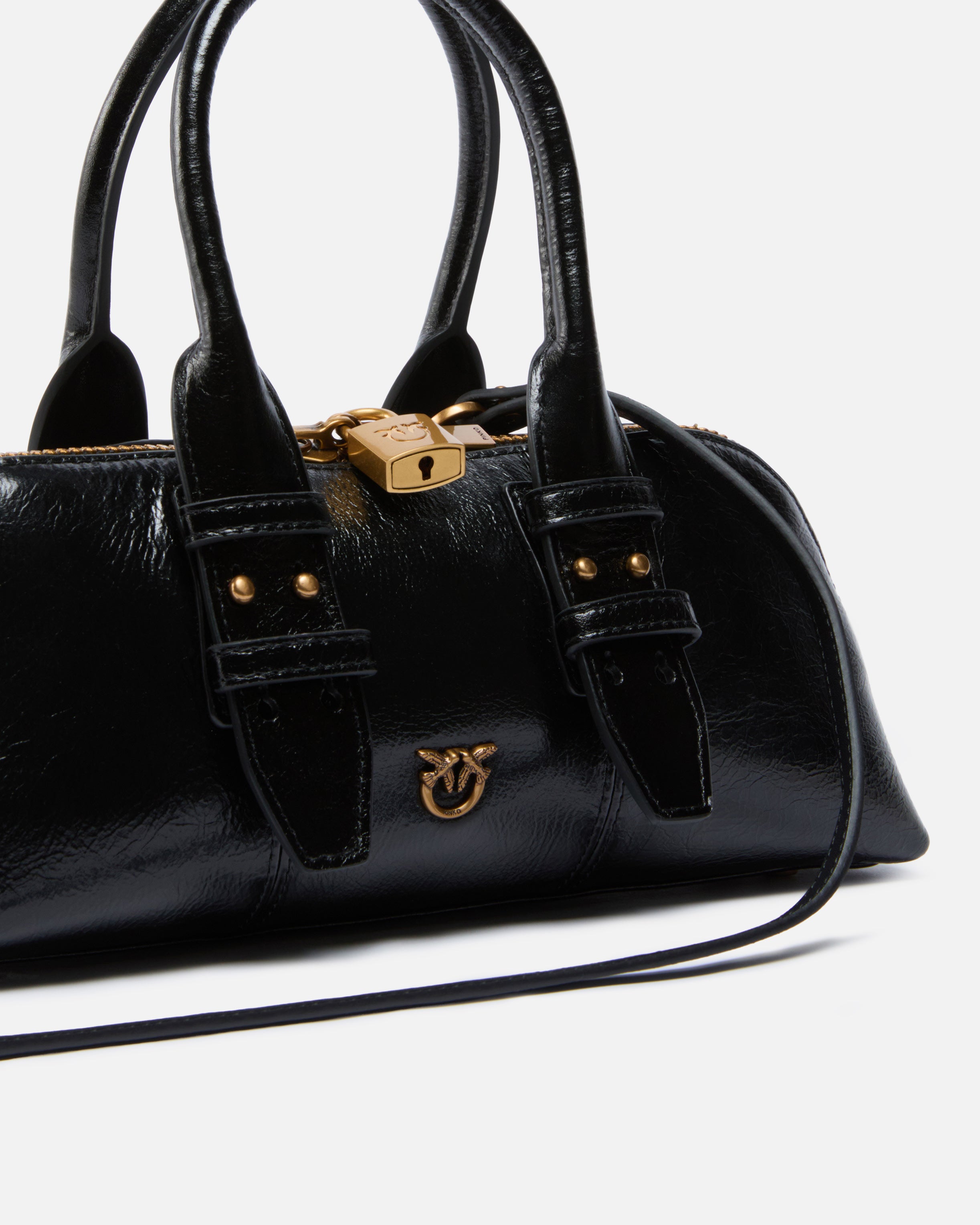 Borsa a mano piccola Escape Bag, dalla forma rettangolare e allungata, realizzata interamente in pelle con effetto verniciato. Caratterizzata dalla tracolla regolabile e rimovibile in pelle e da un doppio manico per la portata a mano o a spalla, la borsa risulta estremamente versatile e pratica. Il modello presenta un lucchetto funzionale che si apre e chiude grazie a una chiave contenuta nel charm abbinato, mentre il tocco finale è dato dalla piccola placca con logo Love Birds, portavoce dell'inimitabile stile del brand. La chiusura superiore con zip rivela un interno foderato in cotone e dotato di una multitasca a parete. Attiva la tua borsa PINKO: verifica l'autenticità del tuo prodotto e accedi all'esperienza personalizzata avvicinando il tuo smartphone al ricamo Love Birds che trovi sul retro della borsa!