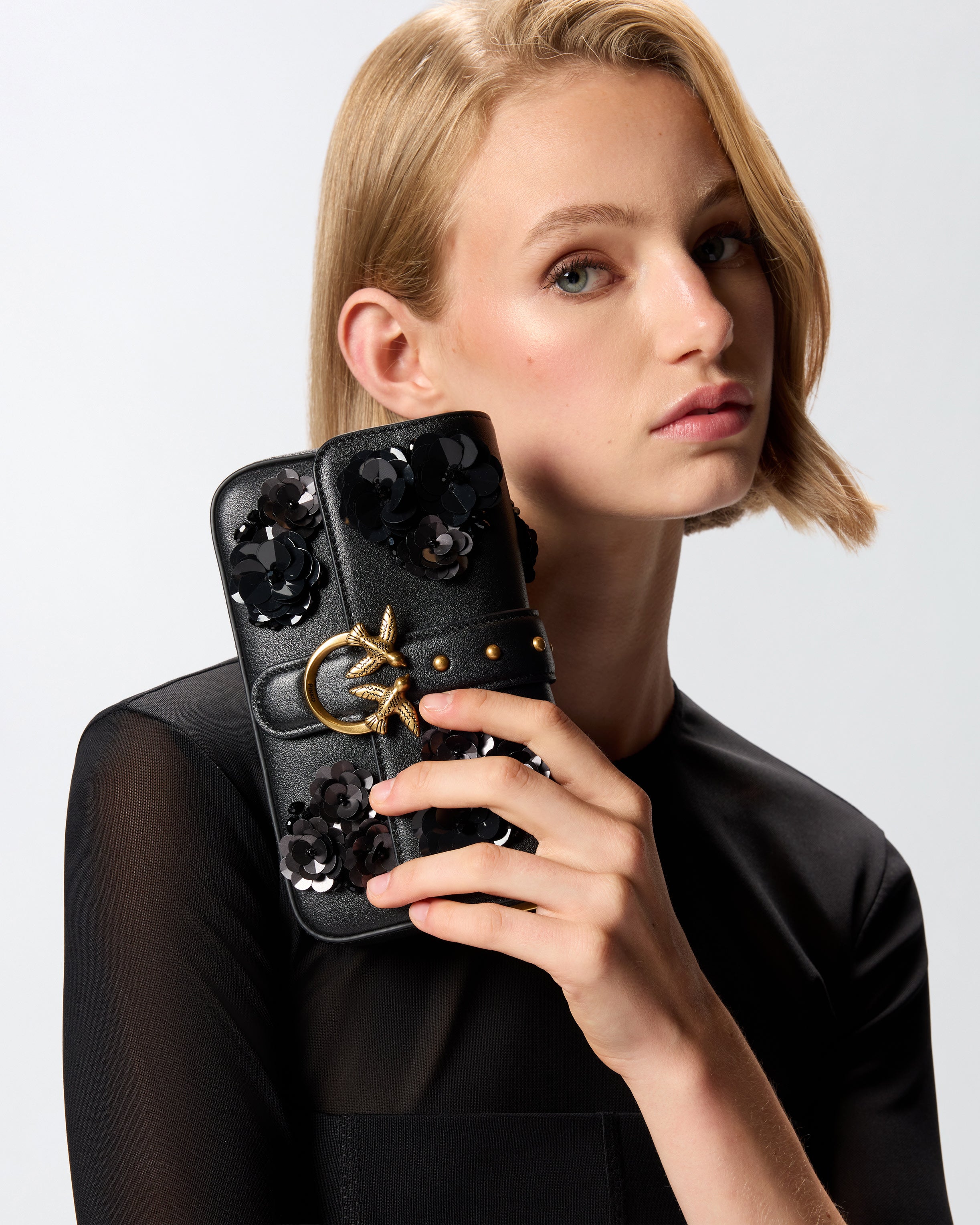 Borsa a spalla piccola Baby Love Bag Slouchy realizzata in pelle. Caratterizzata dalla tracolla regolabile in pelle e catena per la portata a spalla oppure crossbody, la borsa risulta estremamente raffinata e pratica. Su questo modello da sera spiccano diversi ricami a forma di fiore in paillettes, per regalarti un look scintillante, mentre il tocco finale è dato dalla fibbia Love Birds Diamond Cut, portavoce dell'inimitabile stile del brand. L'interno è foderato in tessuto drill di cotone e include una tasca a parete chiusa con zip. Attiva il tuo accessorio PINKO: verifica l'autenticità del tuo prodotto e accedi all'esperienza personalizzata avvicinando il tuo smartphone al ricamo Love Birds che trovi sul retro!