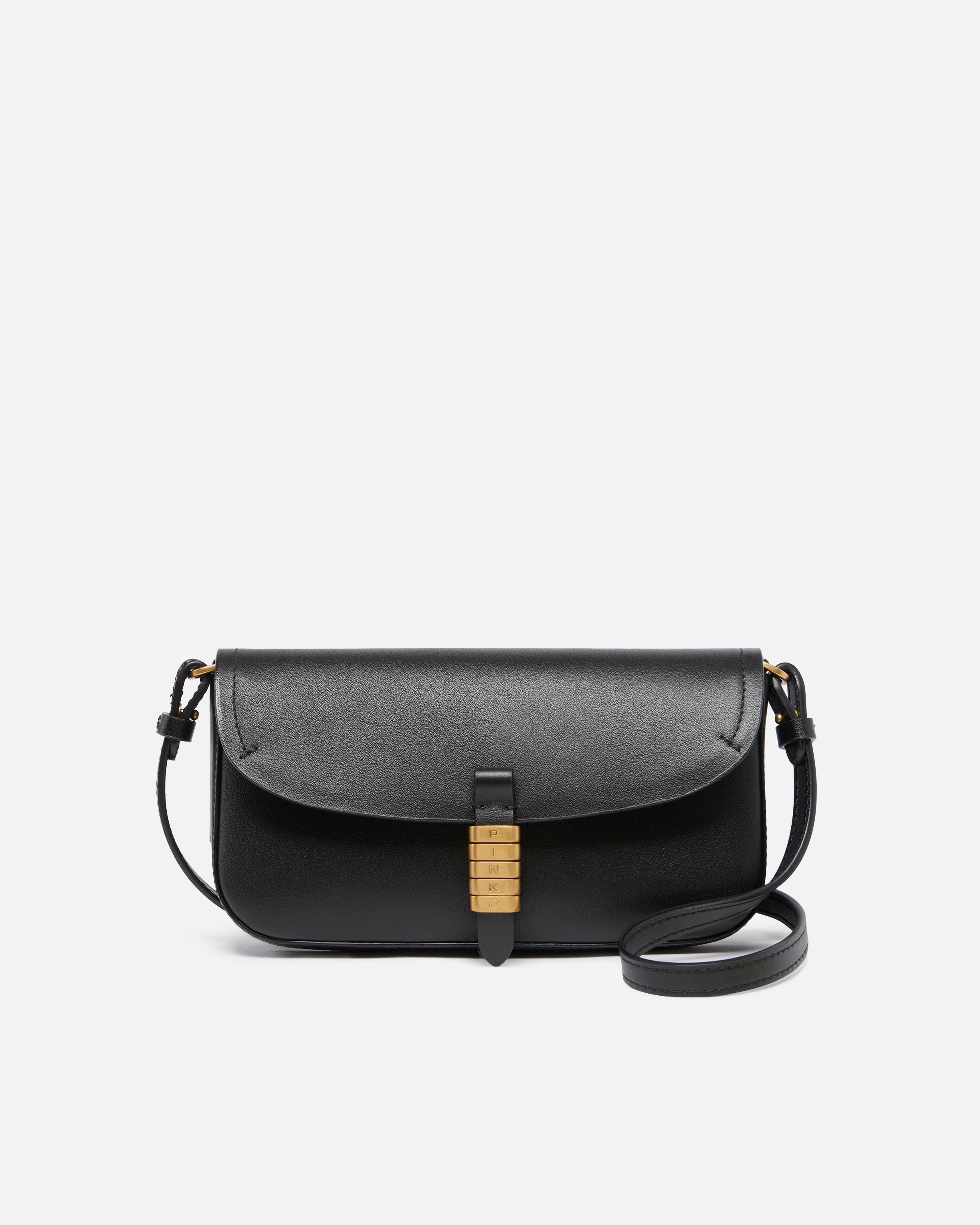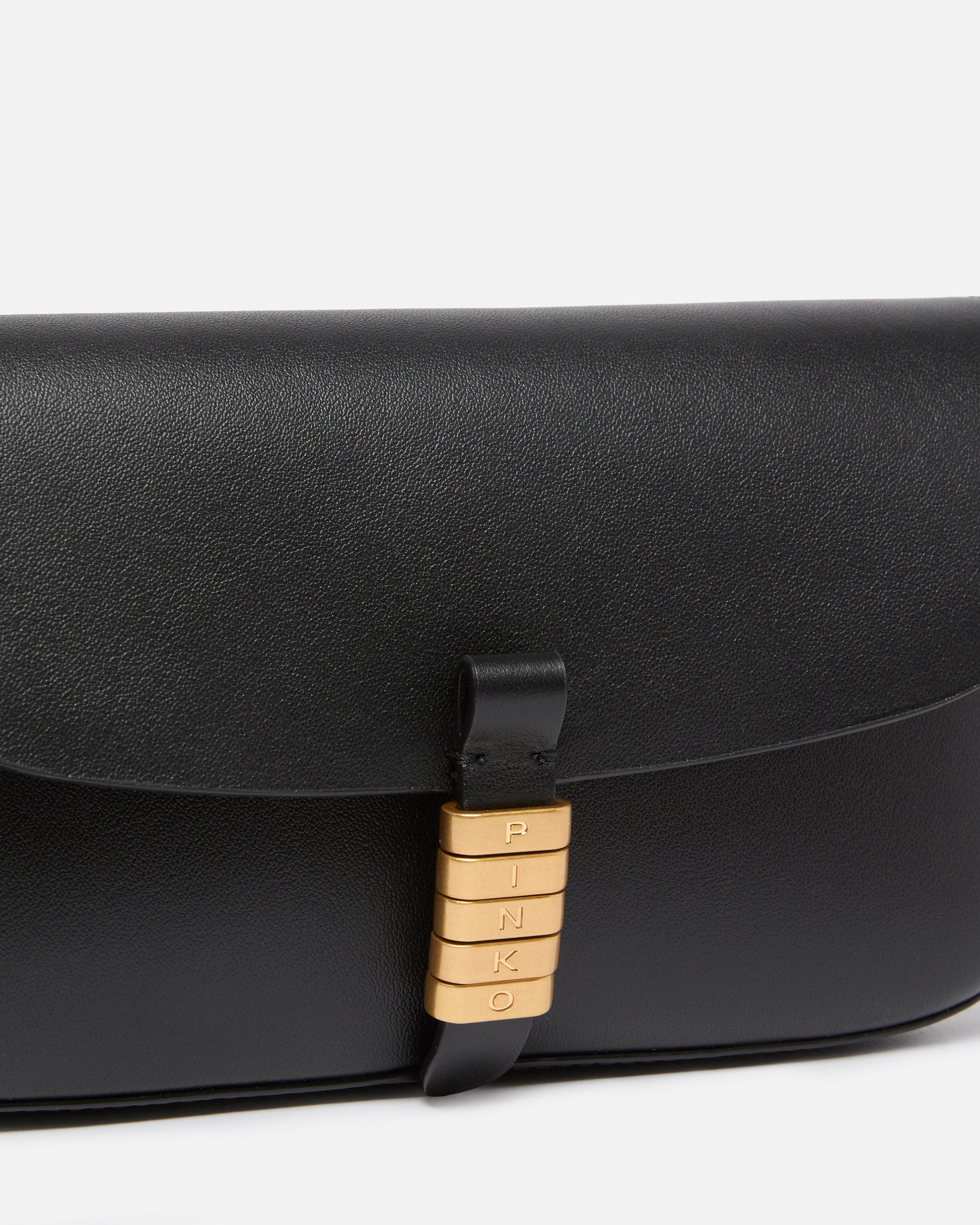 Borsa a spalla Saddle Flat di medie dimensioni e dalla forma rettangolare e allungata, realizzata in morbida pelle. Grazie alla tracolla in pelle rimovibile, l'accessorio può essere indossato a mano, a spalla oppure crossbody, risultando estremamente versatile e pratico, mentre l'interno è foderato in tessuto drill di cotone e include una serie di tasche a parete per contenere carte e documenti. La chiusura con piccola patta e cinturino con bottone magnetico è completata da anelli decorativi in metallo che formano l'iconico logo lettering PINKO, per un tocco prezioso. Attiva la tua borsa PINKO: verifica l'autenticità del tuo prodotto e accedi all'esperienza personalizzata avvicinando il tuo smartphone al ricamo Love Birds che trovi sul retro della borsa! - SADDLE FLAT