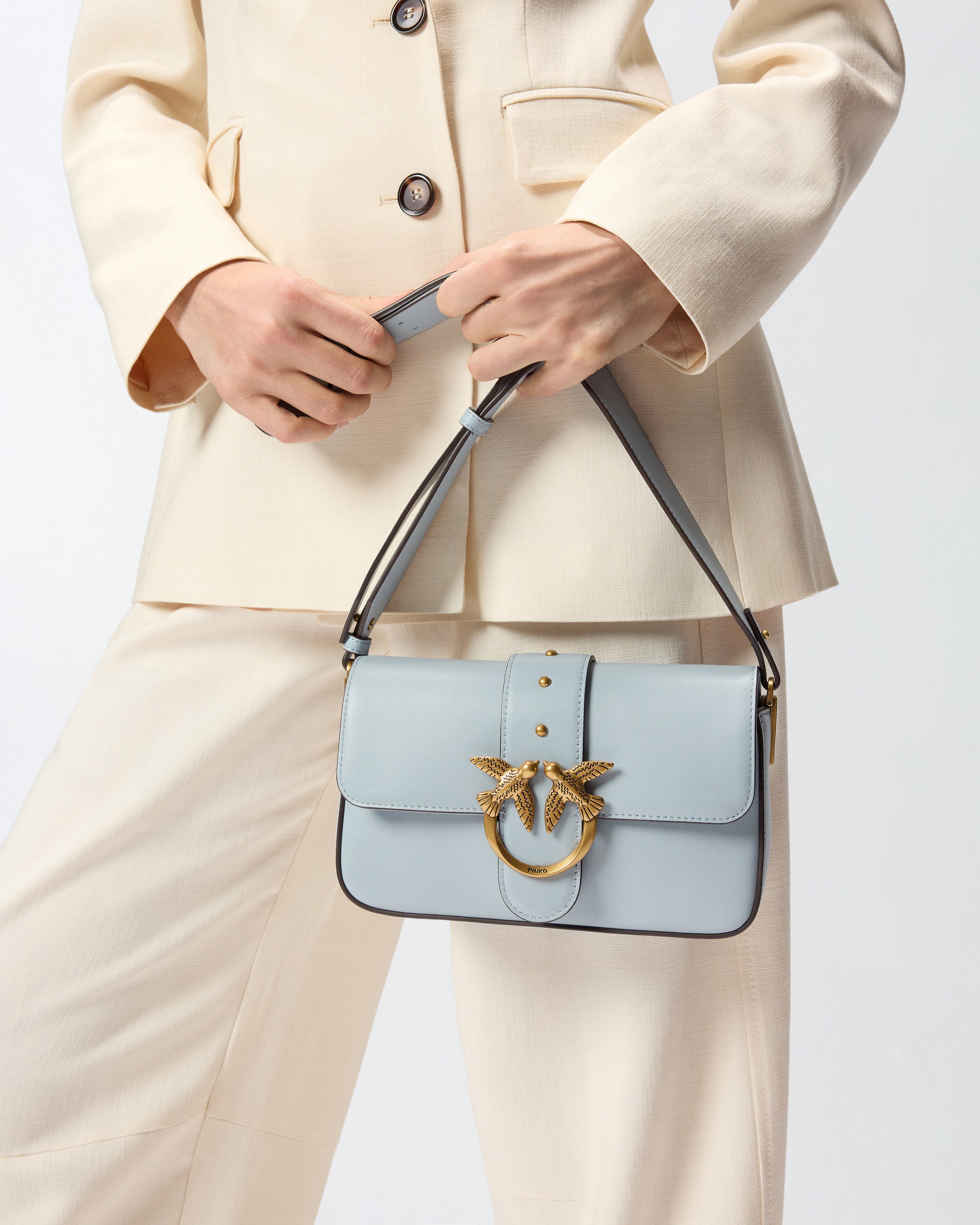 Piccola borsa a spalla in pelle Mini Love Bag Slouchy, che si caratterizza per una forma morbida, destrutturata, quasi come fosse una piccola sacca da viaggio. La borsetta è completa di spallaccio in pelle, regolabile con fibbia, per portare la borsa a spalla e di tracolla a catena con spallaccio in pelle, per personalizzare la borsa a seconda delle necessità. Per un tocco di stile in più, soprattutto nelle occasioni speciali, puoi portare la Mini borsa anche a mano. La chiusura con patta è completata da baccello e fibbia con l'iconico logo uccellini Love Birds Diamond Cut, in metallo galvanica antique gold. L'interno della borsetta è foderato in tessuto drill di cotone e include anche una tasca a parete in pelle. La Mini Love Bag dalla forma morbida è l'update più contemporaneo dell'iconica borsa di PINKO, e completa con un tocco di stile qualsiasi look con il quale la indosserai. Attiva la tua borsa PINKO: verifica l'autenticità del tuo prodotto e accedi all'esperienza personalizzata avvicinando il tuo smartphone al ricamo Love Birds che trovi sul retro della borsa! - LOVE ONE MINI SLOUCHY FL