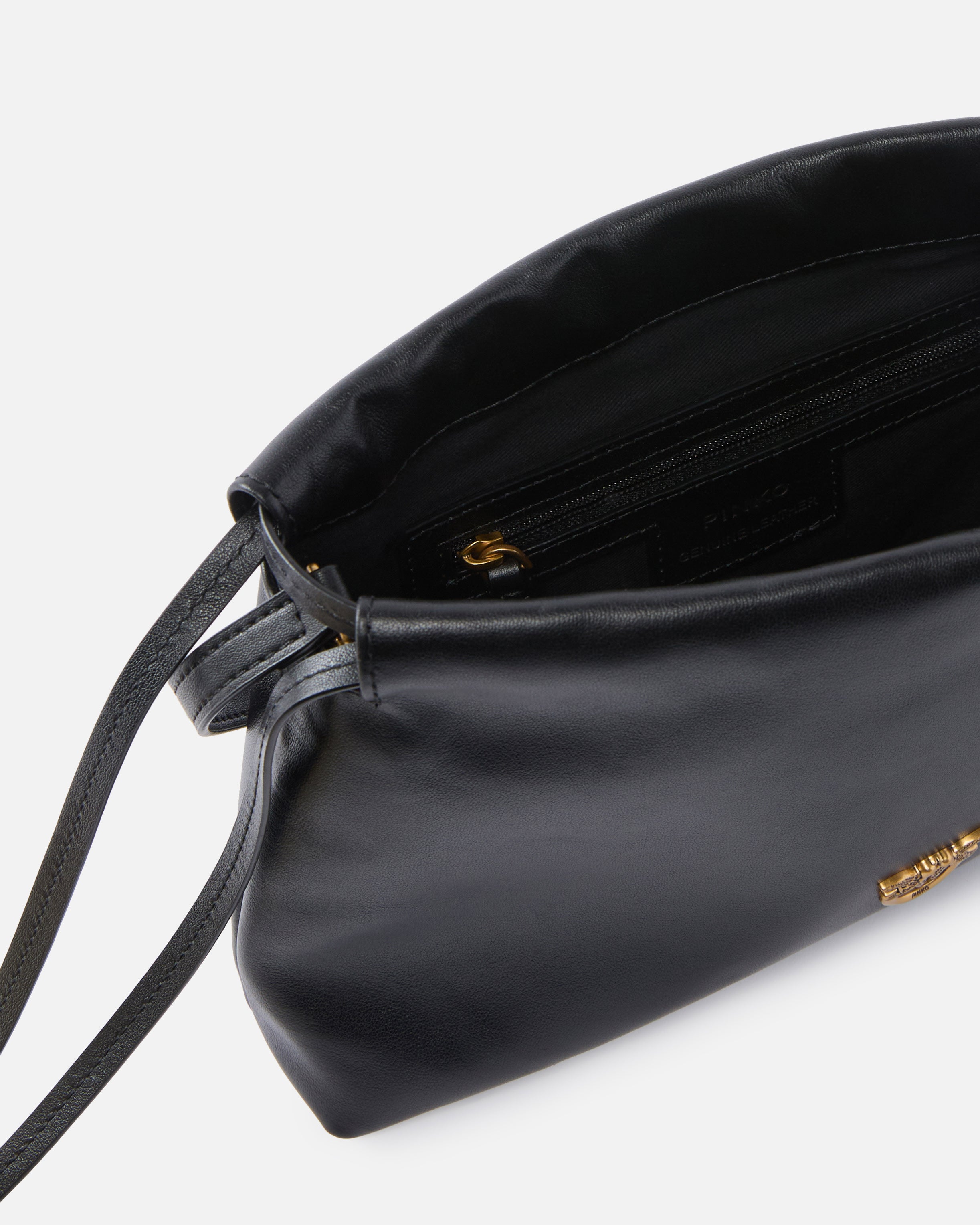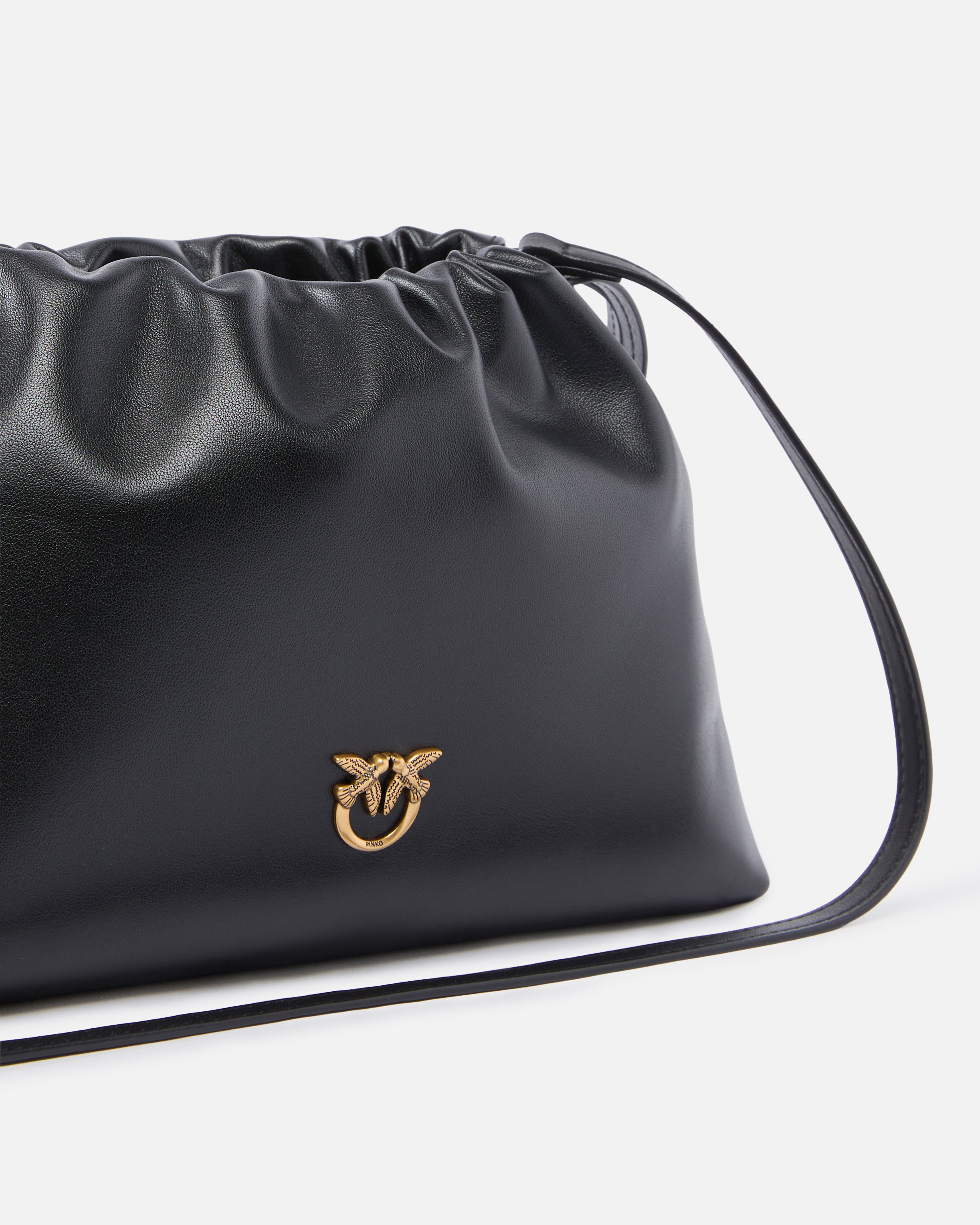 Borsetta a spalla piccola dal design morbido e destrutturato, realizzata in pelle e dotata di una pratica coulisse per la chiusura. Caratterizzato dalla tracolla regolabile in pelle per la portata a spalla o crossbody, l'accessorio risulta estremamente versatile e pratico per la vita di tutti i giorni. Il tocco finale è dato dalla piccola placca con logo Love Birds, portavoce dell'inimitabile stile del brand. L'interno della borsa è foderato in cotone e include una tasca a parete chiusa con zip. Attiva la tua borsa PINKO: verifica l'autenticità del tuo prodotto e accedi all'esperienza personalizzata avvicinando il tuo smartphone al ricamo Love Birds che trovi sul retro della borsa!