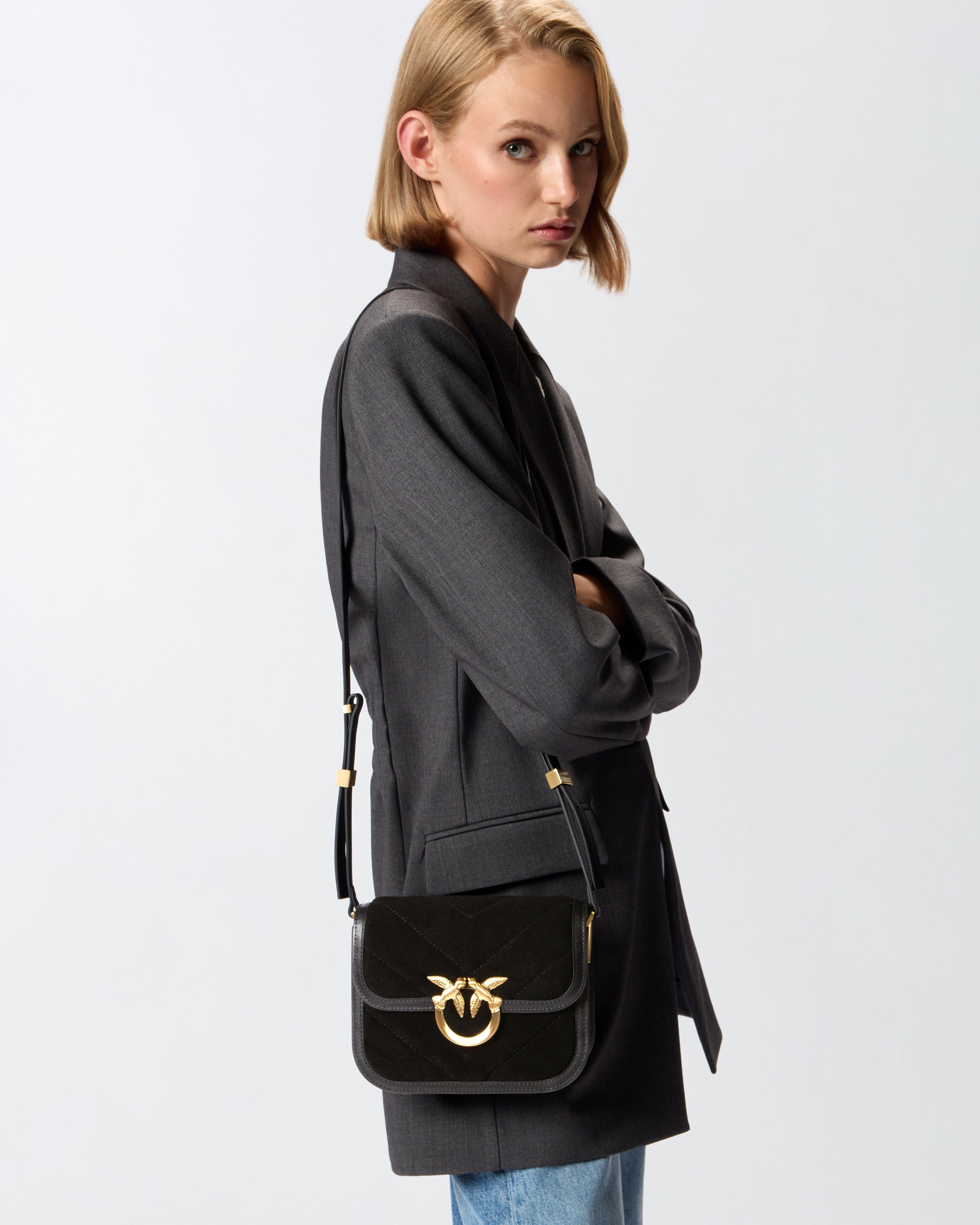 Borsa a spalla Mini Love Bag Box dalle piccole dimensioni in soffice pelle scamosciata con impunture, dotata di fodera in cotone e tasca interna con zip. Caratterizzata dalla tracolla regolabile in pelle e dalla catena rimovibile per la portabilità a mano o a spalla, la borsa risulta estremamente versatile e pratica. Il modello presenta uno stile contemporaneo e raffinato, mentre la fibbia Love Birds Diamond Cut si fa portavoce dell'inimitabile stile PINKO. Attiva la tua borsa PINKO: verifica l'autenticità del tuo prodotto e accedi all'esperienza personalizzata avvicinando il tuo smartphone al ricamo Love Birds che trovi sul retro della borsa!
