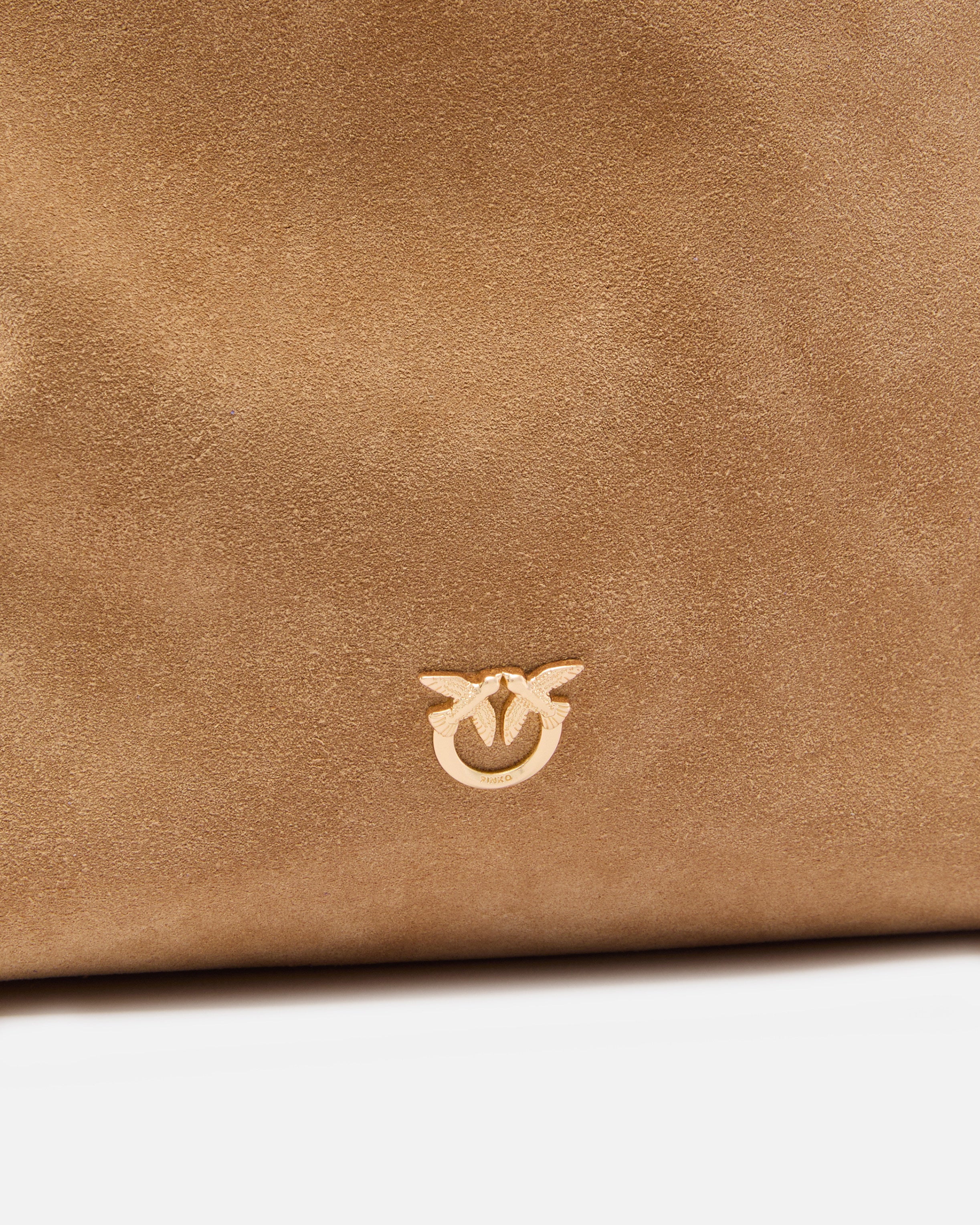 Borsa capiente a secchiello Bucket Big in morbida pelle scamosciata, dotata di una leggera imbottitura interna e personalizzata dall'inconfondibile logo metallico Love Birds Diamond Cut sul davanti. La tracolla regolabile in suede, pensata per offrire un indosso a spalla oppure crossbody, rappresenta un chiaro omaggio allo stile texano: l'estremità, la fibbia e il passante sono arricchiti infatti da una minuziosa lavorazione ispirata alle decorazioni tipiche dell'abbigliamento country. L'interno è foderato in tessuto drill di cotone e include una tasca a parete con targhetta logata. Attiva la tua borsa PINKO: verifica l'autenticità del tuo prodotto e accedi all'esperienza personalizzata avvicinando il tuo smartphone al ricamo Love Birds che trovi sul retro della borsa!