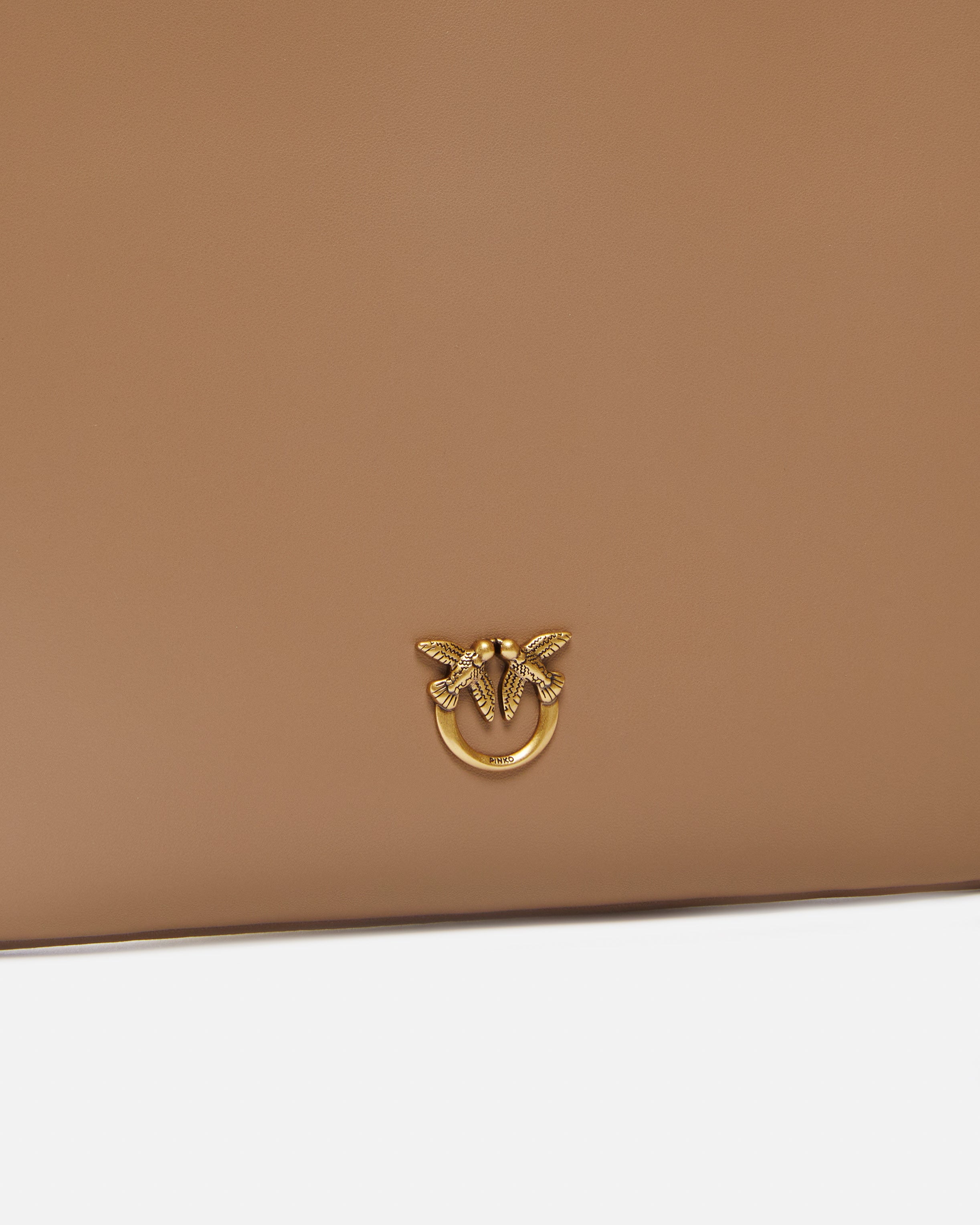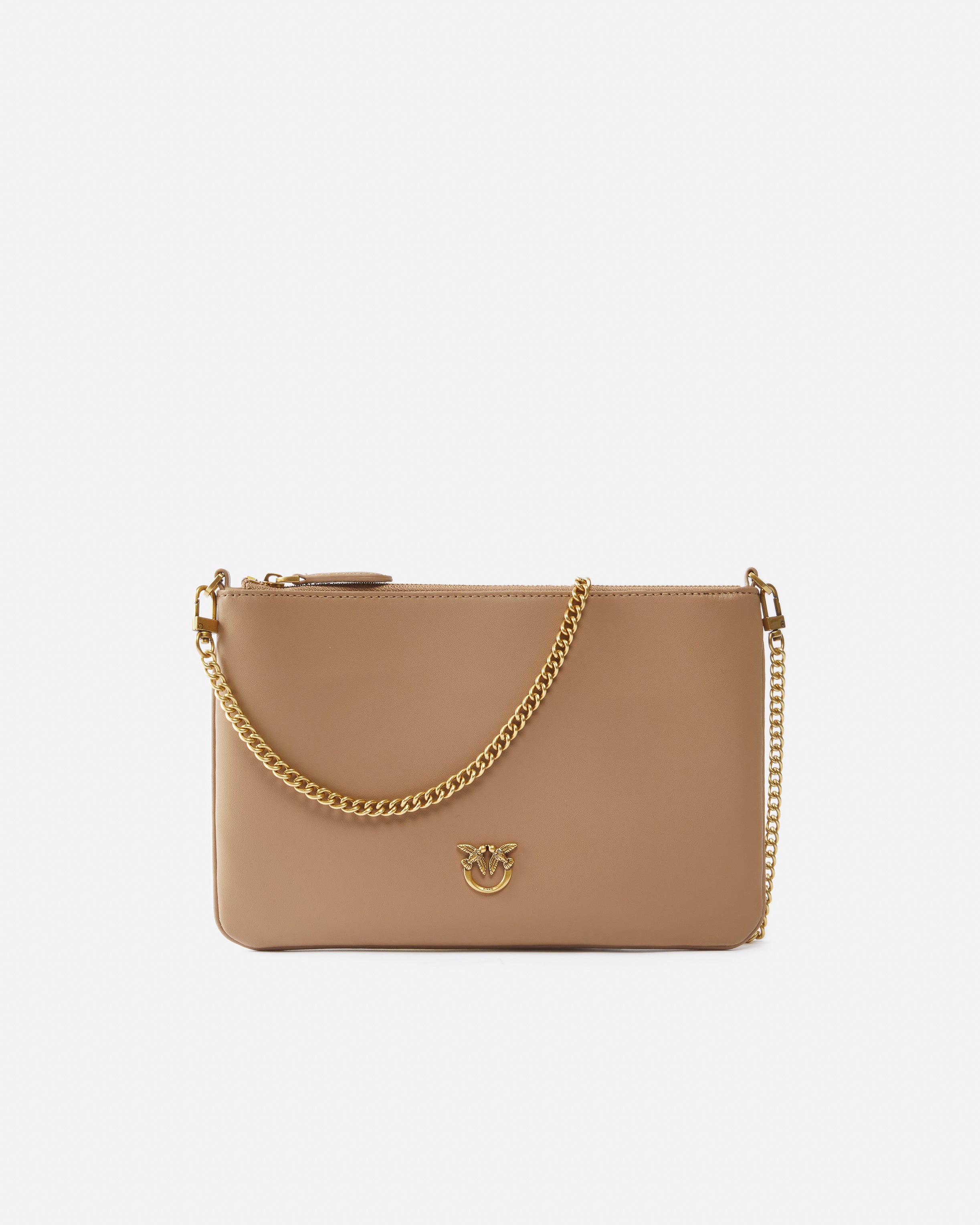 Borsa a tracolla flat in morbida pelle mano seta. Personalizzazione con placchetta Love Birds Diamond Cut. Interno foderato in polycotton e tracolla rimovibile a catena sottile. Chiusura con zip.