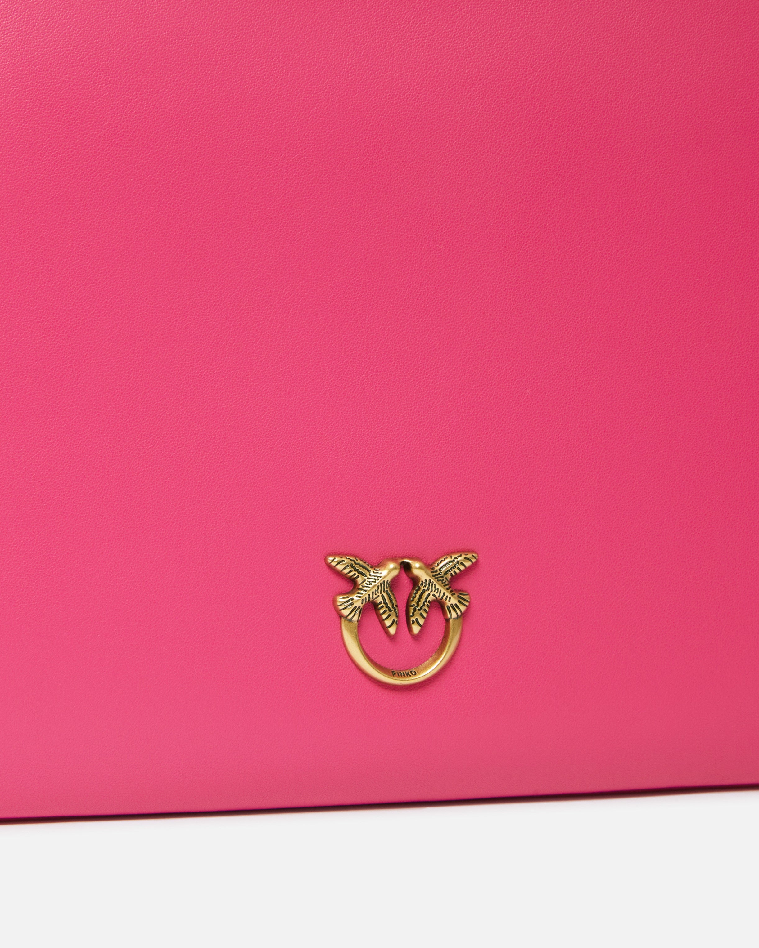 Borsa a tracolla flat in morbida pelle mano seta. Personalizzazione con placchetta Love Birds Diamond Cut. Interno foderato in polycotton e tracolla rimovibile a catena sottile. Chiusura con zip.