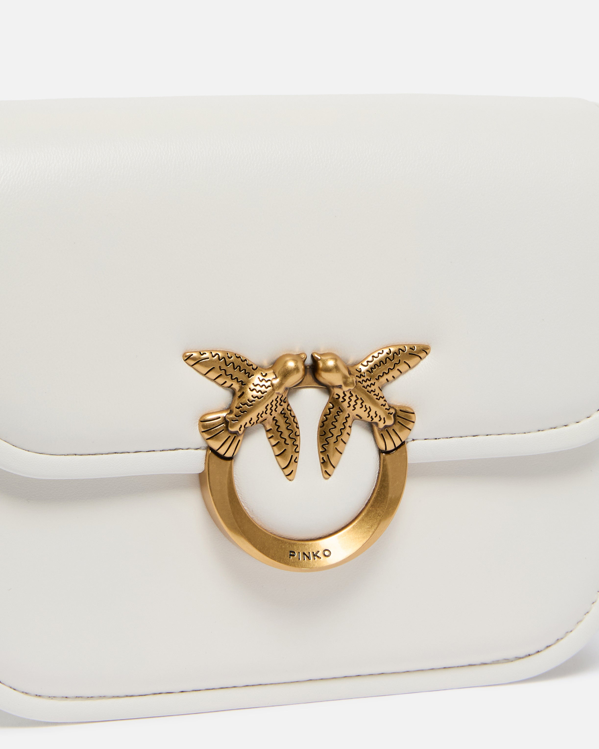 Borsa a spalla dalle piccole dimensioni e caratterizzata da una forma squadrata Love Bag Box realizzata in nappa leggermente trapuntata, che conferisce alla struttura rigida una linea più arrotondata. La chiusura della borsa è completata da fibbia in metallo dorato con logo uccellini Love Birds Diamond Cut sulla patta. L'interno della mini bag è foderato in tessuto drill di cotone e include una pratica tasca a parete chiusa con zip. La tracolla fissa in pelle è regolabile per personalizzarne la portata a spalla o a mano. Attiva la tua borsa PINKO: verifica l'autenticità del tuo prodotto e accedi all'esperienza personalizzata avvicinando il tuo smartphone al ricamo Love Birds che trovi sul retro della borsa! - LOVE BOX BAG FL