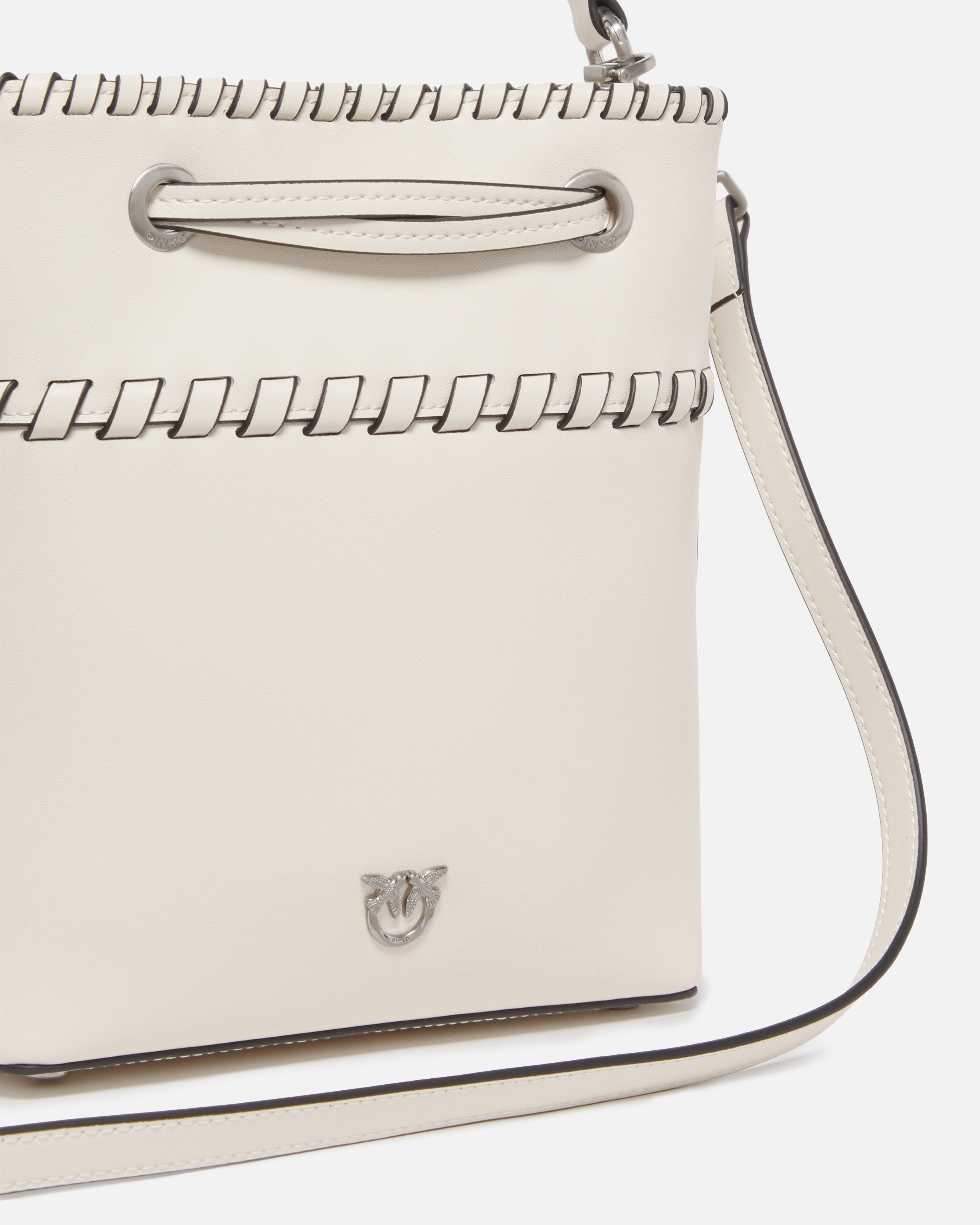 Borsa piccola a secchiello realizzata in morbida pelle mano seta e dotata di fodera in cotone. Caratterizzata dalla tracolla regolabile e rimovibile in pelle e dal manico superiore per la portabilità a mano o a spalla, la borsa risulta estremamente versatile e pratica. Accessorio distintivo di infiniti look, questa borsetta è dotata di coulisse per regolarne la chiusura in stile sacchetto. Il design, impreziosito da raffinate infilature, viene completato dal logo Love Birds che si fa portavoce dell'inimitabile stile del brand. Attiva la tua borsa PINKO: verifica l'autenticità del tuo prodotto e accedi all'esperienza personalizzata avvicinando il tuo smartphone al ricamo Love Birds che trovi sul retro della borsa!