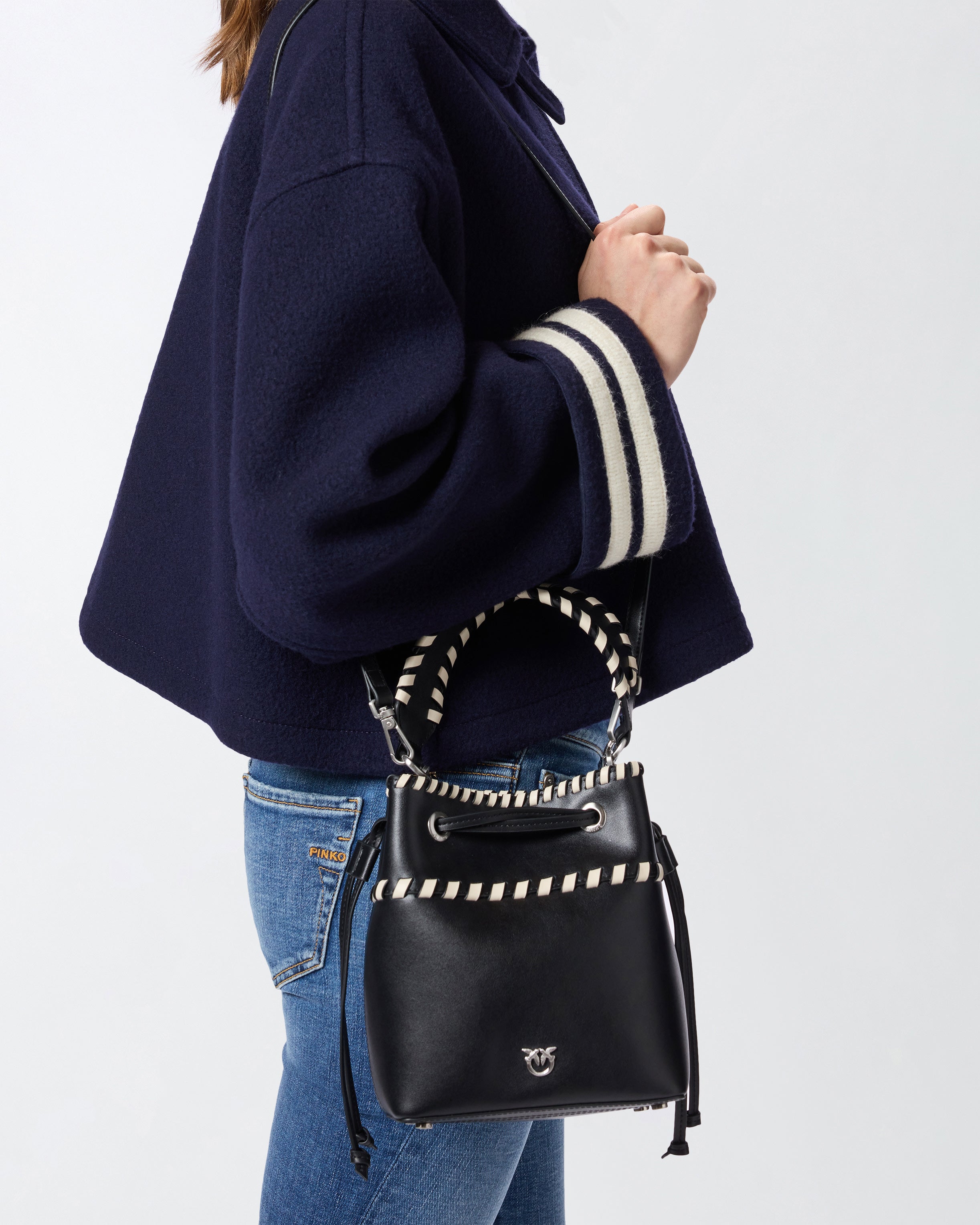 Borsa piccola a secchiello realizzata in morbida pelle mano seta e dotata di fodera in cotone. Caratterizzata dalla tracolla regolabile e rimovibile in pelle e dal manico superiore per la portabilità a mano o a spalla, la borsa risulta estremamente versatile e pratica. Accessorio distintivo di infiniti look, questa borsetta è dotata di coulisse per regolarne la chiusura in stile sacchetto. Il design, impreziosito da raffinate infilature, viene completato dal logo Love Birds che si fa portavoce dell'inimitabile stile del brand. Attiva la tua borsa PINKO: verifica l'autenticità del tuo prodotto e accedi all'esperienza personalizzata avvicinando il tuo smartphone al ricamo Love Birds che trovi sul retro della borsa!