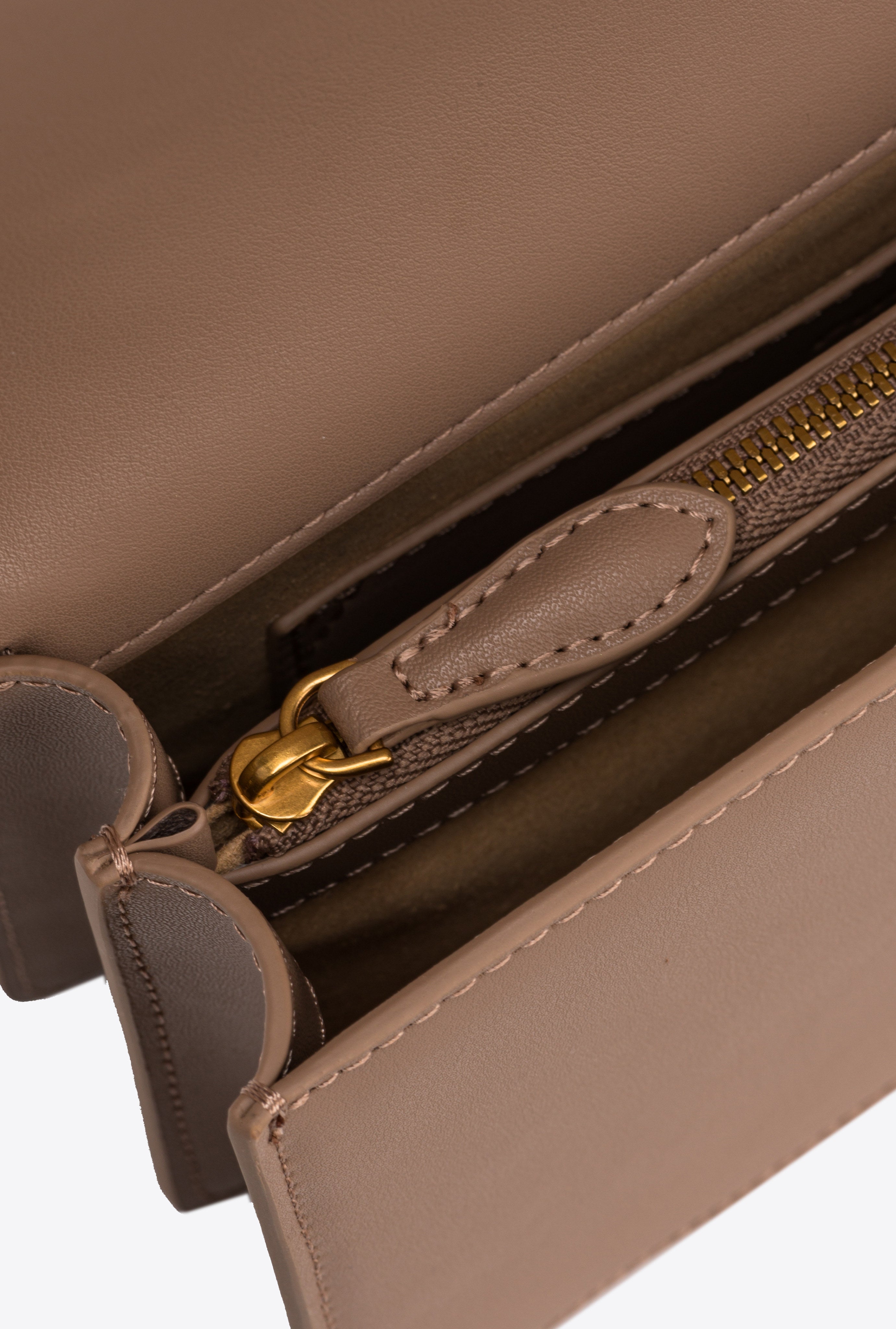 Mini Love Bag One in morbida pelle mano seta. La chiusura è completata dall'iconica fibbia in metallo Love Birds Diamond Cut in metallo. L'interno è foderato in microfibra scamosciata e comprende tramezza chiusa con zip e tasca a parete in pelle. La tracolla combina la classica catena rotonda al pratico spallaccio in pelle regolabile.
