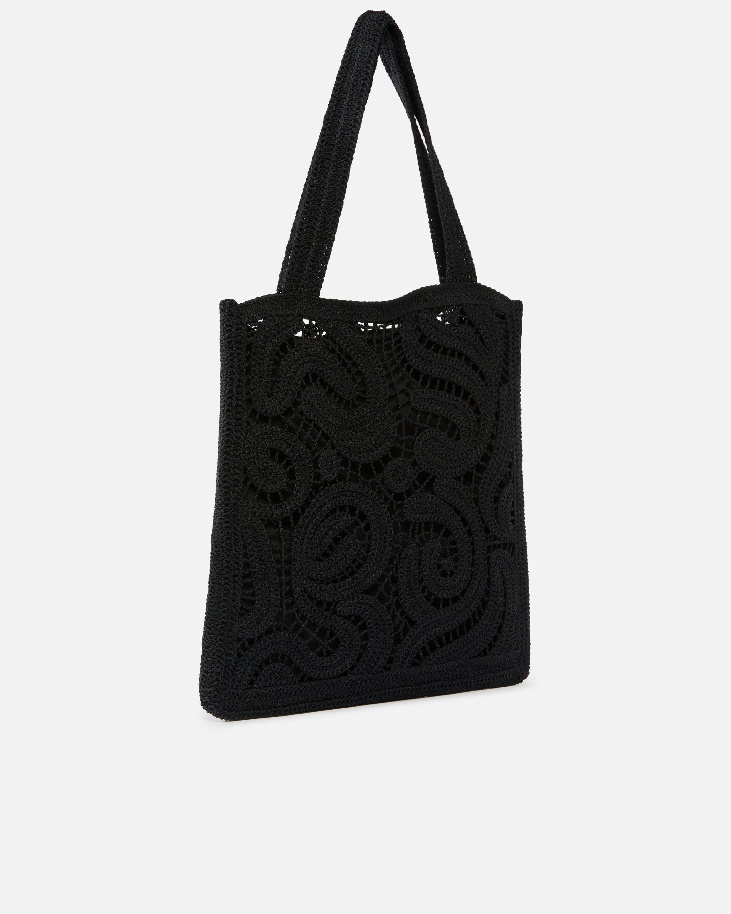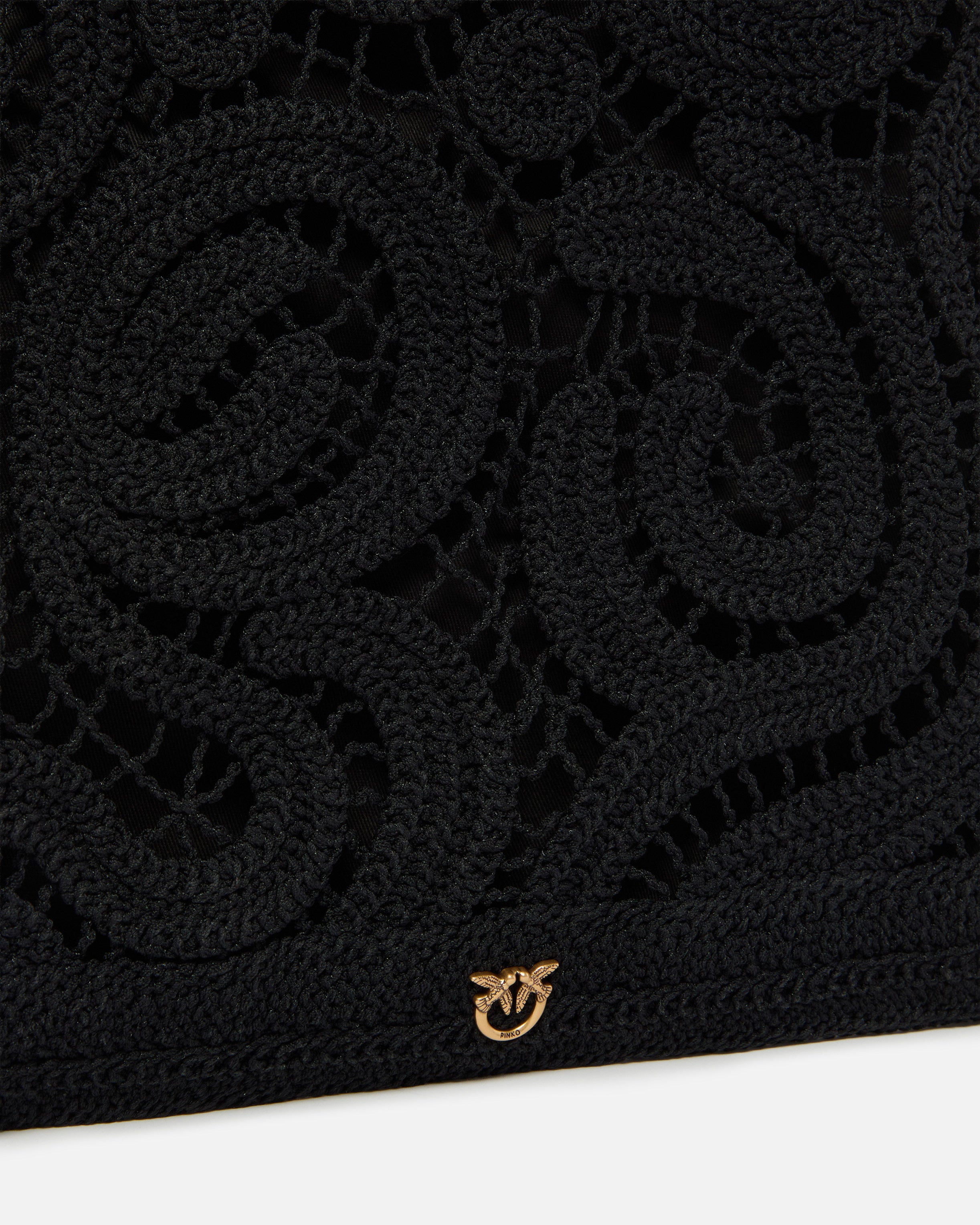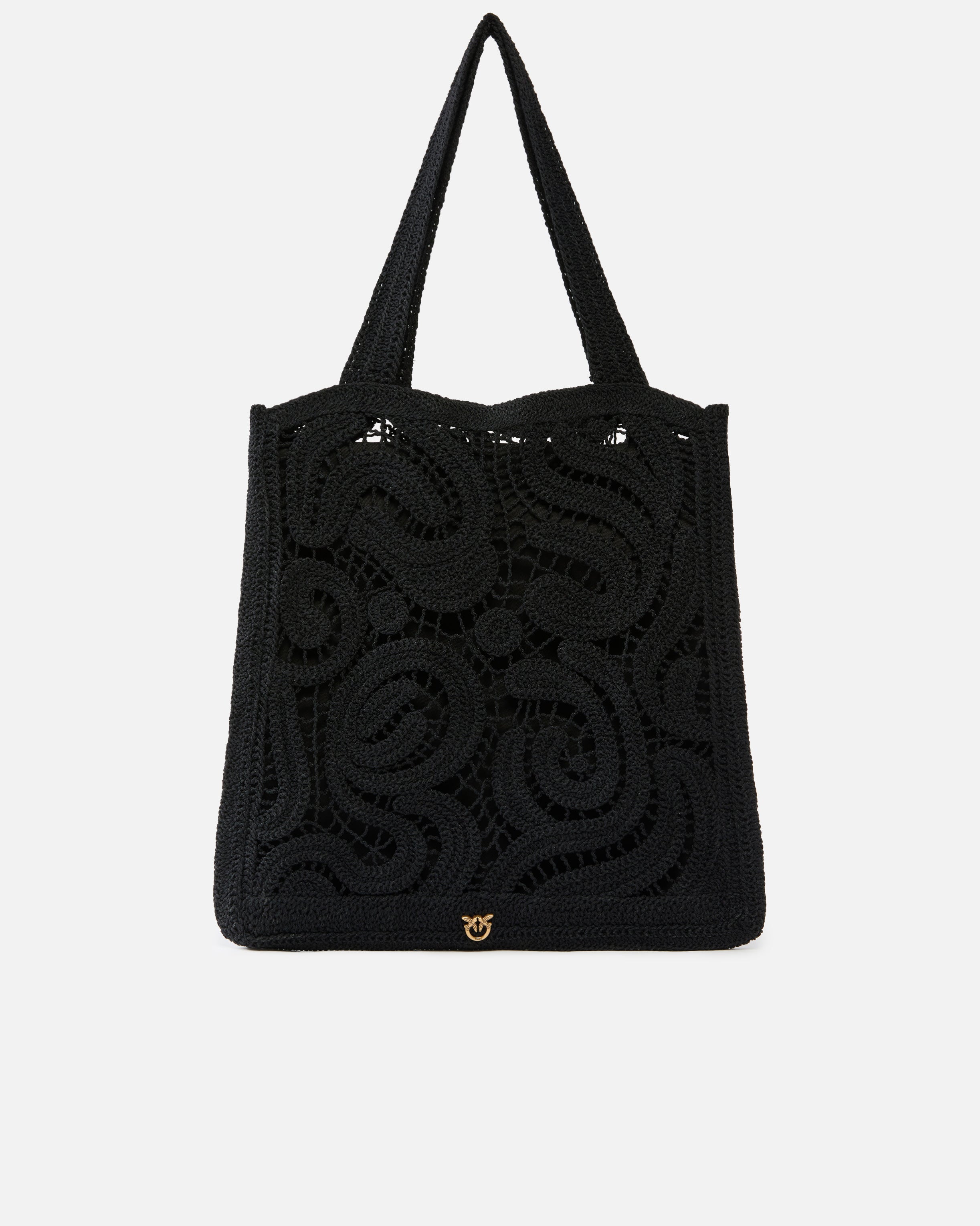Borsa shopper di medie dimensioni dalla forma squadrata e dal design piatto, caratterizzata da una raffinata lavorazione crochet con un innovativo motivo geometrico che, insieme alla fodera interna tinta unita, dona dinamismo al design e crea un effetto vedo non vedo. Dotato di due pratici manici superiori per una portabilità a spalla, il modello presenta una comoda chiusura con coulisse ed è rifinito da un piccolo ricamo in tono con gli uccellini Love Birds sul davanti. Questo accessorio, perfetto per portare i tuoi oggetti essenziali sempre con te durante la giornata, è la soluzione che stavi cercando per dare un tocco di colore ai tuoi outfit senza rinunciare alla funzionalità.